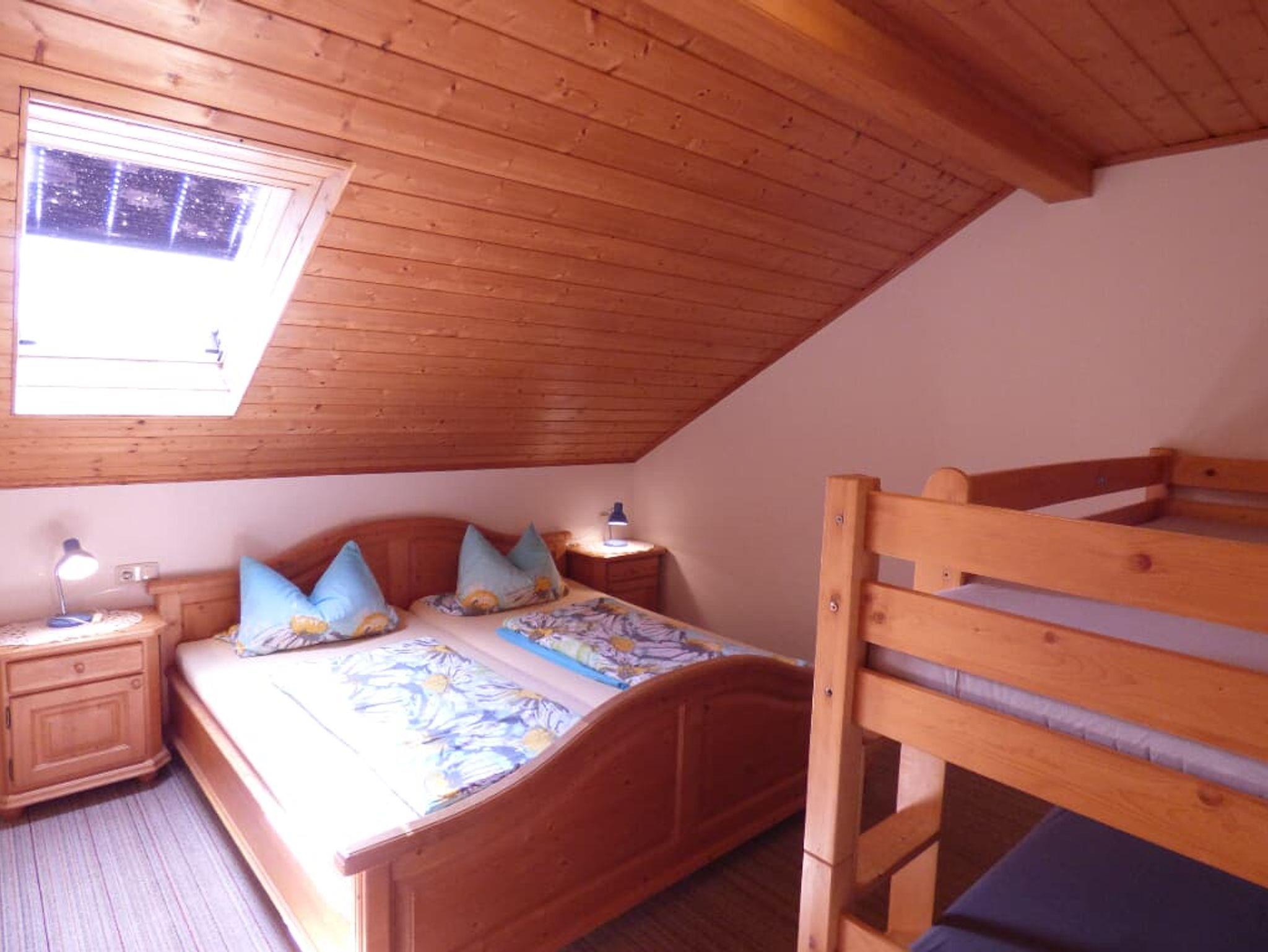 Die gemütliche Ferienwohnung Waldblick befindet sich im Dachgeschoss, ist für 4 Personen ausgelegt und bietet 70 qm Wohnfläche. In beiden Schlafzimmern befindet sich jeweils ein gemütliches Doppelbett und ein Kleiderschrank. Die moderne Küchenzeile der Wohnküche ist voll ausgestattet mit Backofen, Geschirrspüler, Kaffeemaschine, Kühlschrank, Mikrowelle, Toaster sowie Tisch- und Küchenwäsche. Der Wohnbereich verfügt über eine gemütliche Sitzecke, Sofa, Sat-TV und Radio. Badezimmer mit Dusche, WC und Föhn. Bettwäsche, Handtücher, Endreinigung, Parkplatz und WLAN sind im Preis inbegriffen.