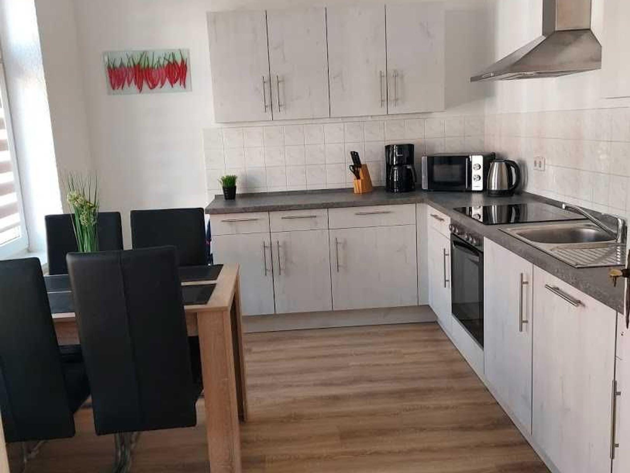 Unsere Ferienwohnungen wurden Anfang 2021 komplett neu ausgestattet. Neben neuen Möbeln befindet sich in jeder Wohnung ein Flachbild-TV mit SAT-Anschluss. Ein kostenloser WLAN-Zugang steht zur Verfügung. Die Küchen sind ebenfalls komplett einschl. E-Herd, Cerankochfeld, Spülmaschine, Mikrowelle, Kaffeemaschine, Toaster, Wasserkocher sowie entsprechendem Esstisch eingerichtet. Die Zimmer bieten zusätzlich die Möglichkeit für eine Aufbettung. Im Hof stehen unseren Gästen kostenfreie Parkplätze zur Verfügung.