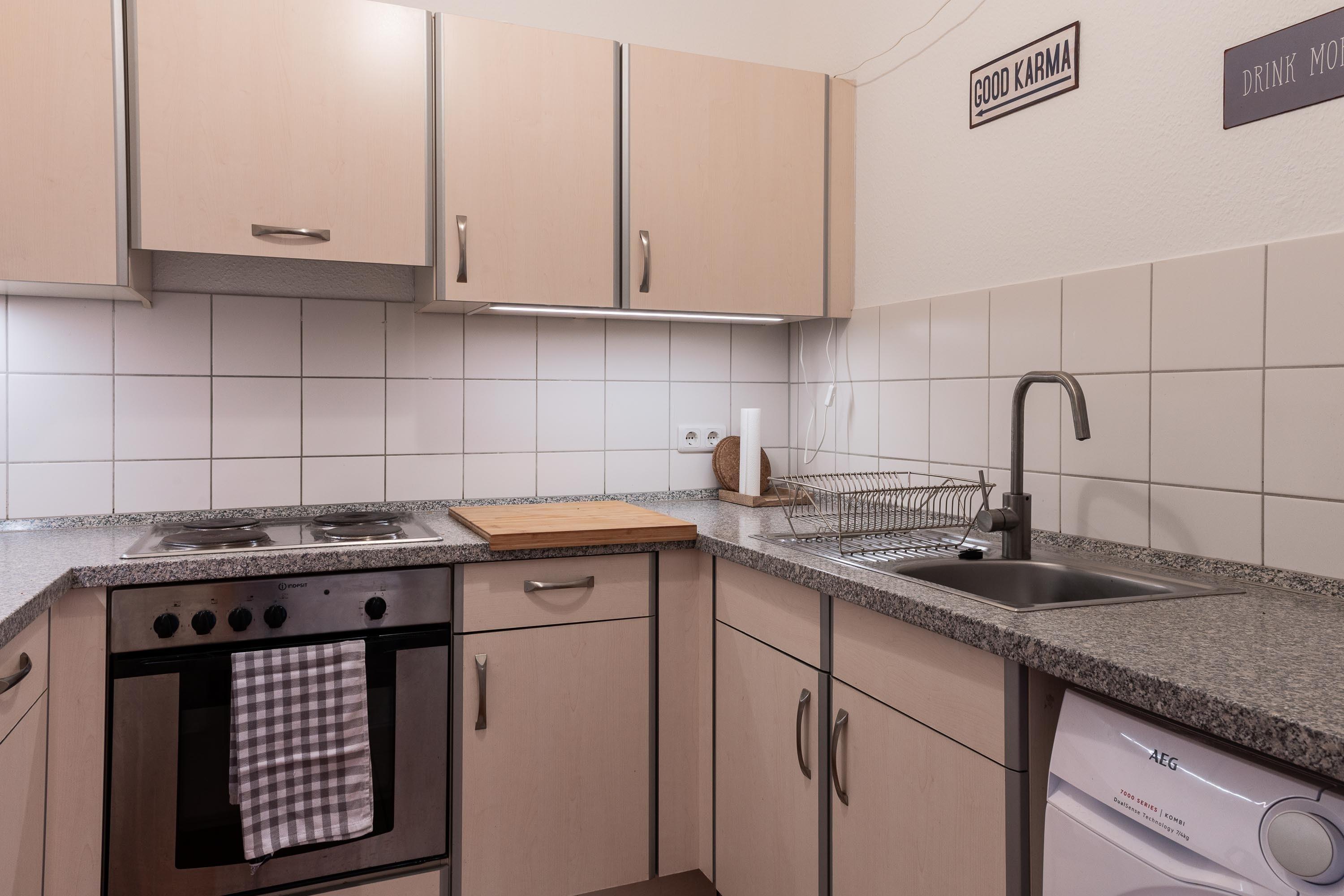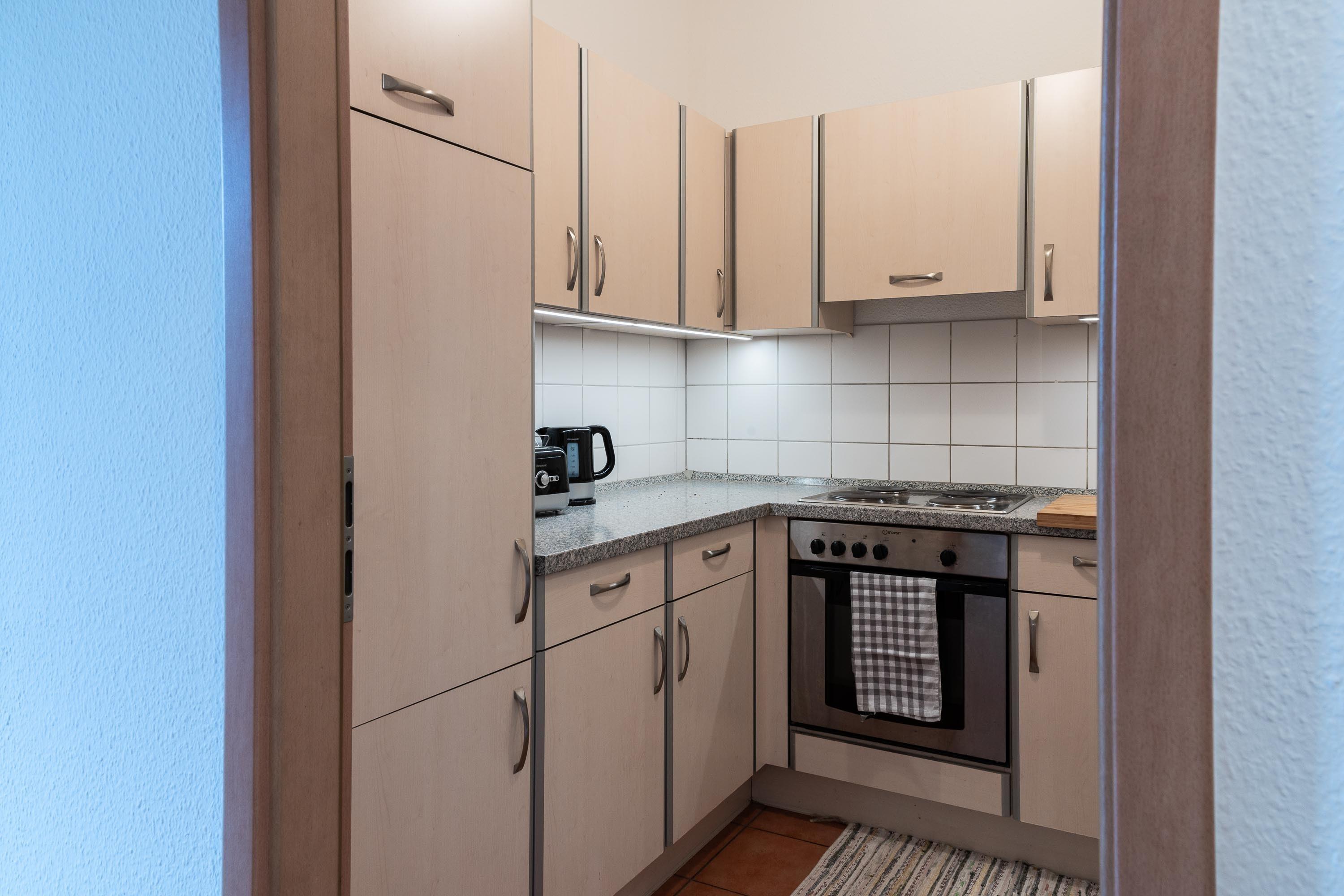 Die Ausstattung des Apartments umfasst ein gemütlichen Wohnzimmer mit einem großen Esstisch für gemütliche Abende, einen Flachbild-TV, sowie einen Internetzugang via WLAN. Die Küche ist mit einer Kaffeemaschine (Filter), einem Toaster, einem Wasserkocher und einer Spülmaschine ausgestattet. Für längere Aufenthalte befinden sich auch ein Trockner und eine Waschmaschine in der Ferienunterkunft.
