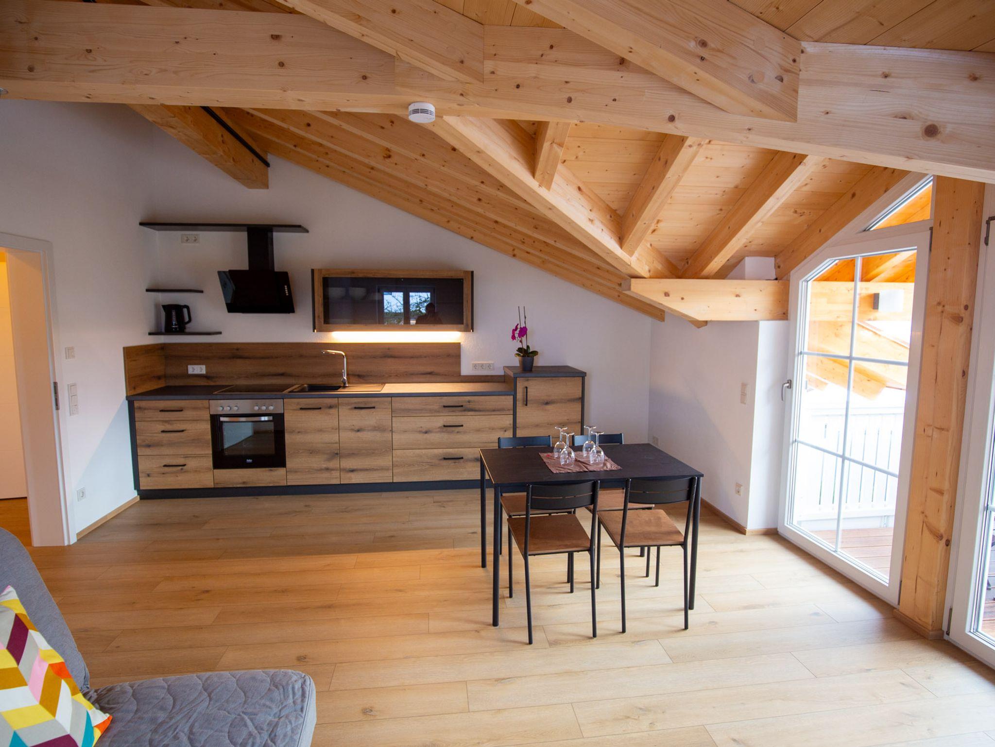 Die stilvoll eingerichtete Ferienwohnung liegt in einem im Jahr 2023 errichteten Neubau. Sie verfügt über ein Schlafzimmer mit Doppelbett, ein helles Tageslichtbad mit bodengleicher Dusche sowie einer großräumigen Wohnküche mit Ausziehcouch*, Flachbild-TV und gut ausgestatteter Küchenzeile inkl. Geschirrspüler, Backofen, Filterkaffeemaschine und Wasserkocher. Die Wohnküche bietet Zugang zu einem privaten möblierten Südbalkon.