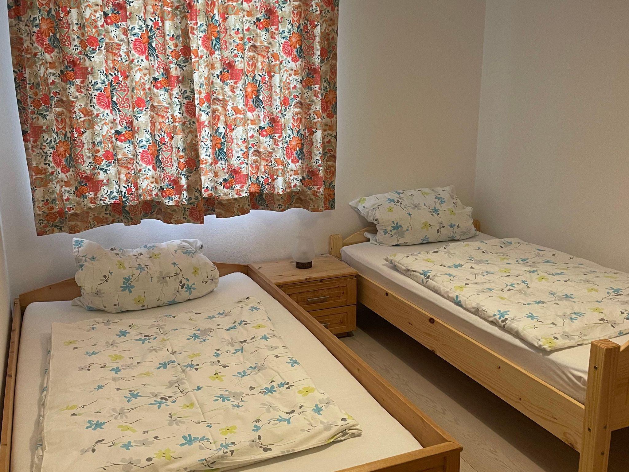 Großes geräumiges alleinstehendes Ferienhaus in ruhiger Lage, Balkon mit Bergblick, kleiner Terrasse und kleinem Garten für sich. Parkplatz und Unterstellmöglichkeit für Fahrräder direkt am Haus. Das Haus verfügt über ein großzügiges Wohnzimmer das mit dem Esszimmer verbunden ist. Die Küche befindet sich in einem separaten Zimmer daneben. Zwei Schlafzimmer, einmal mit Doppelbett und einmal mit zwei Einzelbetten. Bettwäsche sowie Handtücher werden gestellt. Das Bad verfügt über eine Dusche, Waschbecken und WC. Ein zweites WC ist im Erdgeschoß. Im Moment wird das Ferienhaus renoviert, dabei werden neue Böden, Türen und das Bad bzw. WC erneuert.