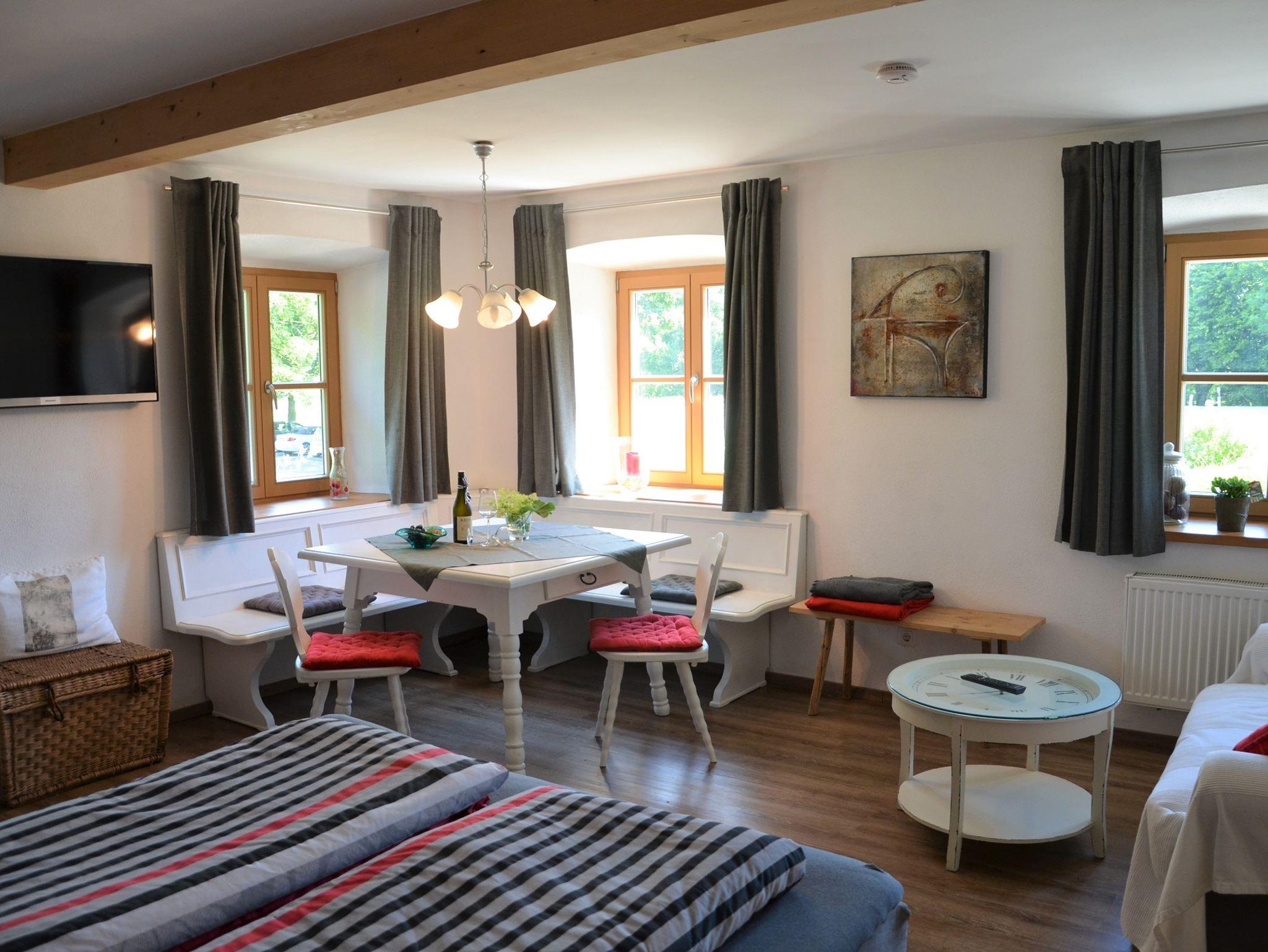 Das ehemalige bäuerliche Anwesen wurde 2016 komplett renoviert und inzwischen zu vier separaten Ferienwohnungen umgebaut. Die ruhige Lage inmitten des Golfplatzes Chieming, umgeben von Wäldern, Biotopen und mehreren Teichen, gewährleistet einen erholsamen Aufenthalt.Direkt vor den Appartements ermöglicht ein separat angelegter Garten mit überdachten Freisitz Entspannung auch direkt vor Ort.Wer sich aktiv betätigen möchte, der kann neben Wandern und Radfahren, auch den imposanten 18-Loch-Golf-Meisterschaftsplatz genießen.Ganz neu auf unserer Anlage befindet sich die Golfakademie GmbH, die laufend Golfkurse für Anfänger und Fortgeschrittene anbieten.Unsere Hausgäste können auch gerne das Clublokal des Golfclubs nützen, das sich auf der Rückseite des Anwesens befindet. Ob im Gewölbe-Restaurant oder bei schönem Wetter auf der sonnigen Terrasse, unsere Gastronomie freut sich über alle Gäste.