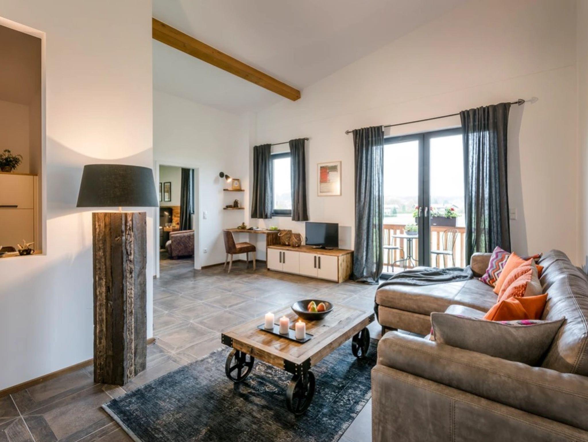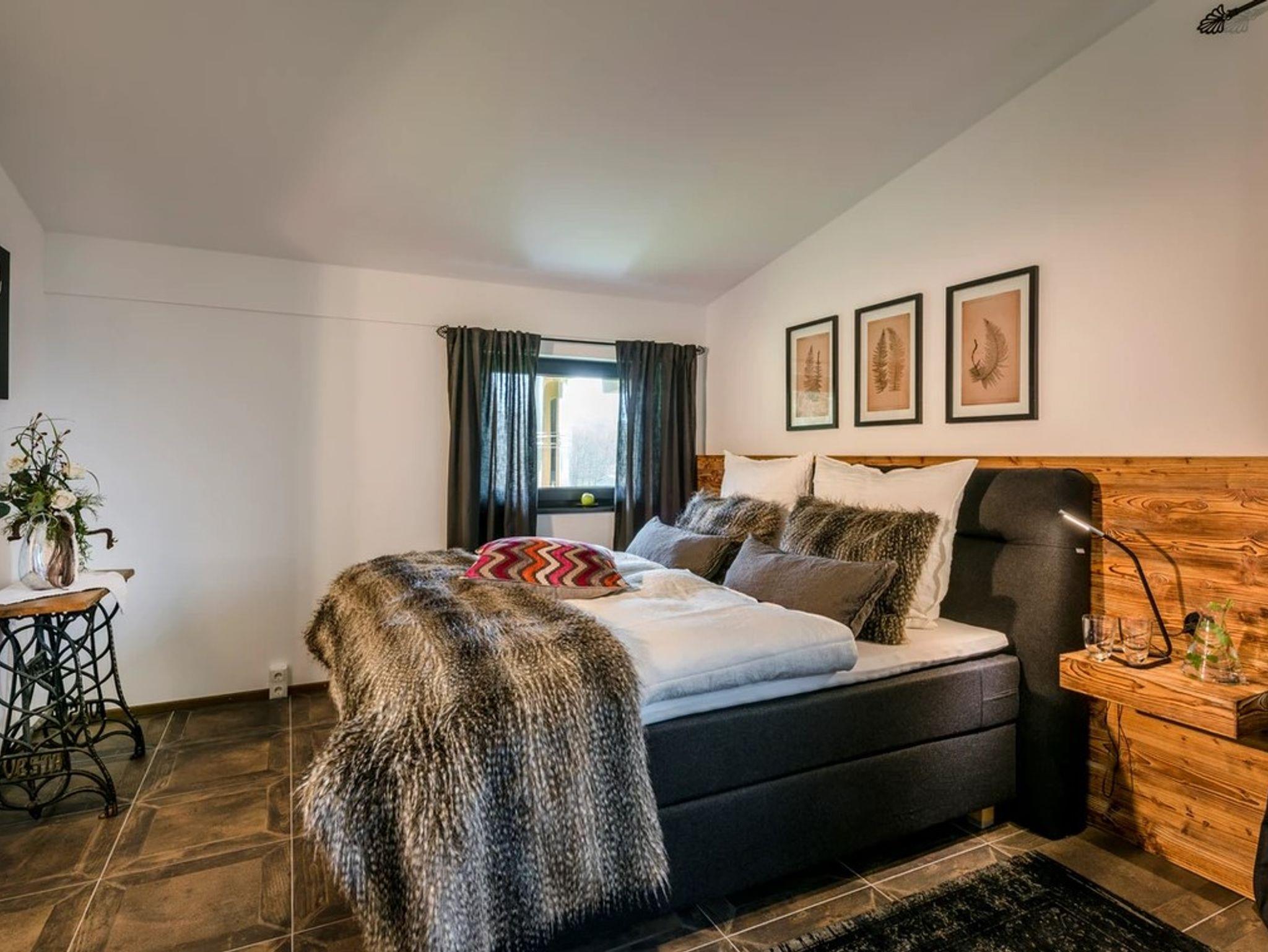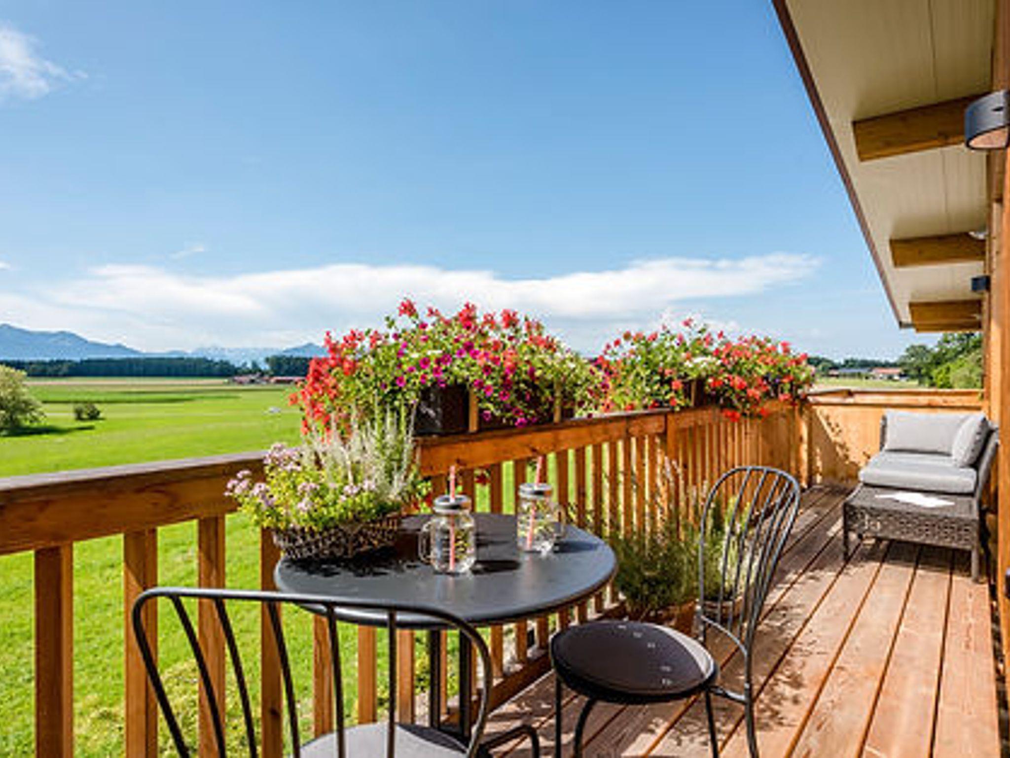 Die Ferienwohnung Sonntagshorn bietet mit einer Größe von etwa 70 qm reichlich Platz für bis zu 4 Personen. Die gemütlich eingerichtete Ferienwohnung befindet sich im 1. Stock und verfügt über ein separates Schlafzimmer mit Doppelbett und ein ausklappbares Schrankbett. Über den nach Süden ausgerichteten Wohnbereich geht es direkt auf den eigenen Sonnenbalkon mit freiem Blick in die Natur und auf unsere imposanten Chiemgauer Berge. Die Küche wie auch die übrige Ausstattung wurde durch ausgewählte Details, Stoffe und Farben liebevoll zum Wohlfühlen eingerichtet.