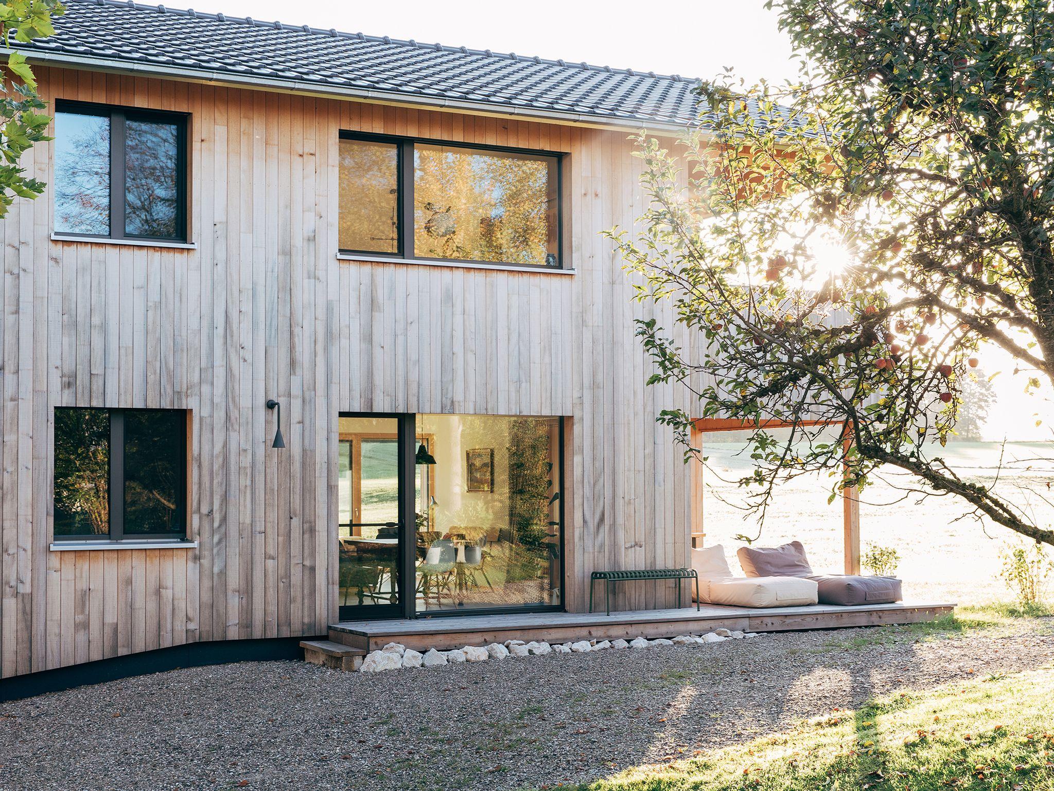 Das Ferienhaus Schmidhuber liegt neben dem historischen Schmidhuberhof in einem Obstanger am Ortsrand von Tabing. Das moderne Holz-Passivhaus wurde 2019 fertig gestellt und beherbergt zwei außergewöhnliche Ferienwohnungen. Jede Wohnung verfügt über einen offenen Wohnbereich mit großer Küche und Essplatz, zwei Schlafzimmer sowie ein Bad mit Regendusche und Badewanne. Die Wohnungen haben nach Süd/West ausgerichtete Loggien. In der EG-Wohnung MAX gibt es eine weitere nach Osten gelegene Frühstücksterrasse. Die Wohnung KATHI?im OG besticht durch ihre Raumhöhe und den traumhaften Blick. Alle Räume verfügen über Fußbodenheizung in Kombination mit kontrollierter Wohnraumlüftung, elektrischen Außenjalousien und Mückenschutz. Der weitläufige Garten mit Wiese zum Austoben, Riesentrampolin, Tischtennis, Grillplatz, Hängematte, Naturteich und Kräutergarten steht allen Gästen zur Verfügung. Ruhe, Natur, schöne Architektur und der Chiemsee um die Ecke machen diesen Ort zum idealen Urlaubsziel für Paare und Familien.Inklusive: W-Lan, Parkplatz mit E-Ladesäule, Bettwäsche, Handtücher, Endreinigung, Soundbox, Nutzung von Waschmaschine, Trockner uvm.