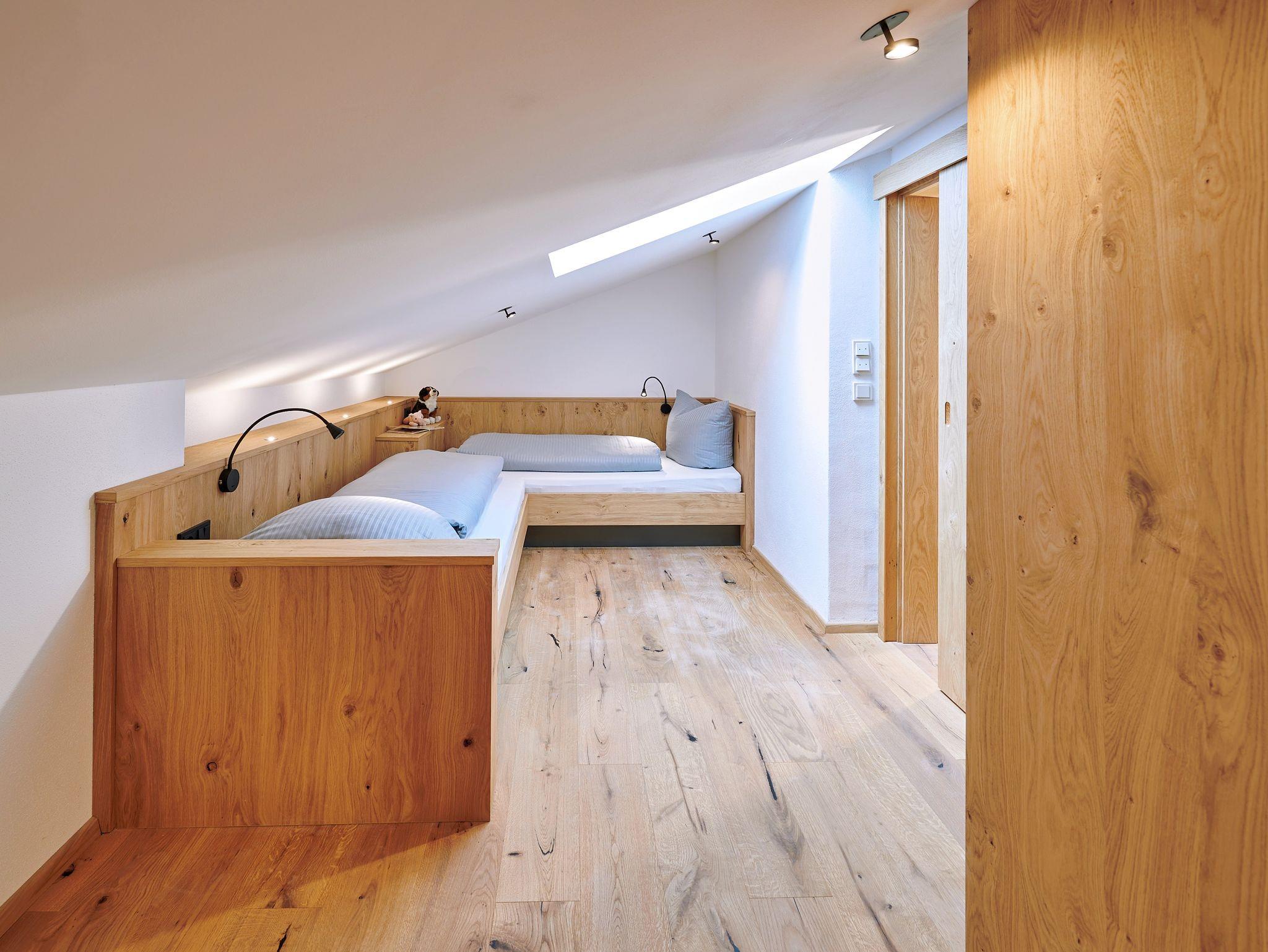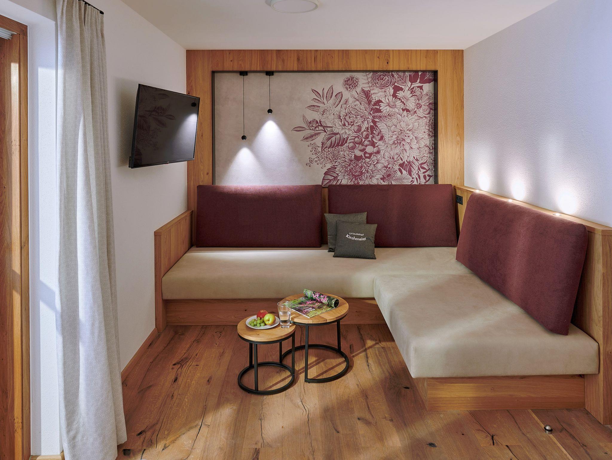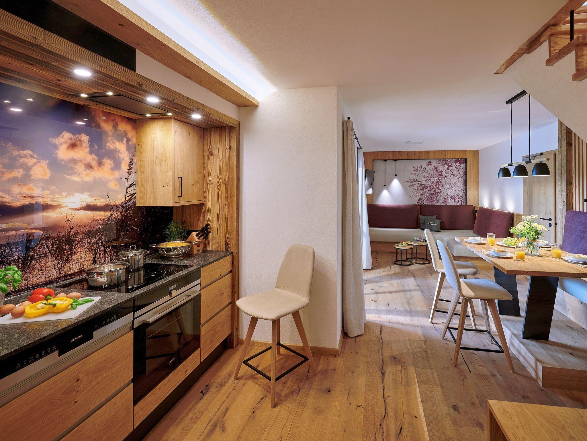 Ausreichend Platz finden Familien mit bis zu drei Kindern in der luxuriösen 5-Sterne-Ferienwohnung Hirschauer Bucht, die sich über zwei Etagen erstreckt. Harmonisch und liebevoll ausgestattet bis ins Detail besticht die Wohnung mit ihrem urig-rustikalen Flair. Zahlreiche durchdachte Lichtelemente und die Dachfenster im Obergeschoss sorgen für viel Licht und Wohlbefinden. Den luxuriösen Charakter rundet das aufwendig gestaltete Wellness-Badezimmer ab. Auf dem großen Ost-Balkon mit freiem Blick in die Landschaft stellt sich sofort echtes Urlaubsfeeling ein.