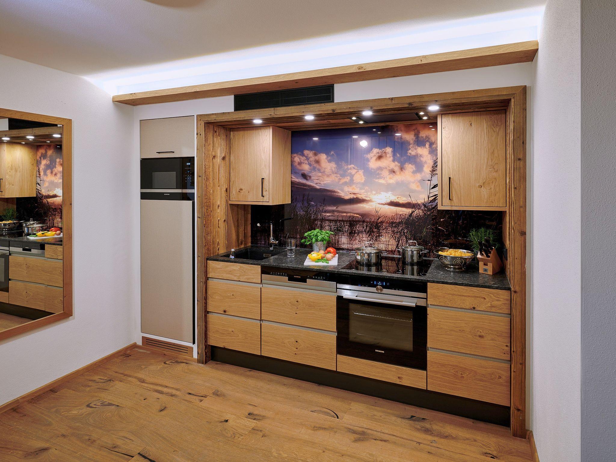 • Komplett ausgestattete Küchenzeile mit E-Herd, Backofen, Kühlschrank mit Gefrierfach, Mikrowelle, Geschirrspüler, Kaffeepadmaschine, Wasserkocher und Toaster