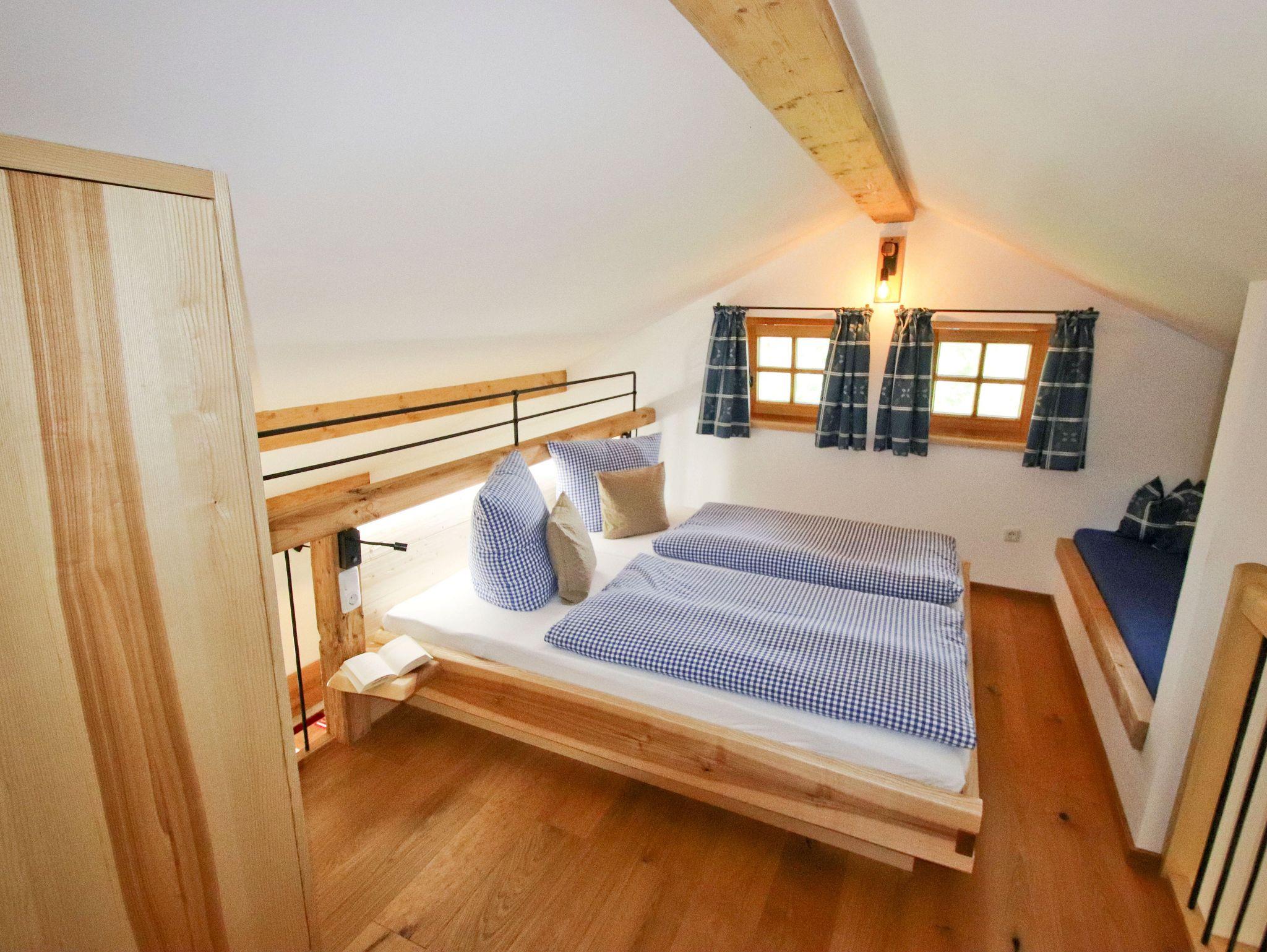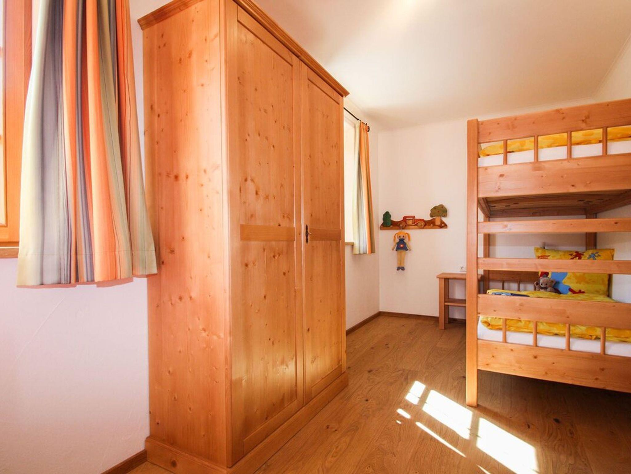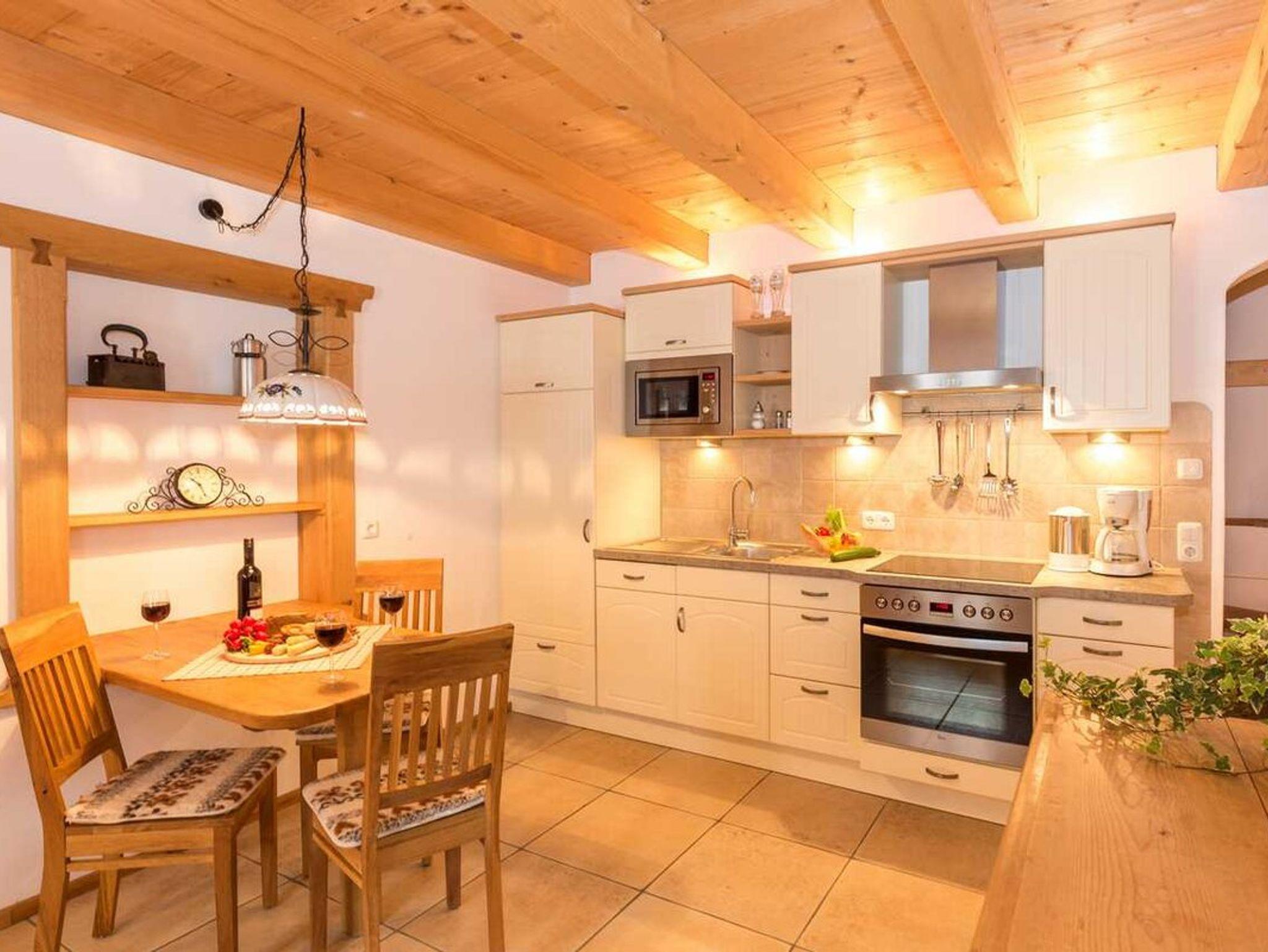 Kinderzimmer und Schlafzimmer sind mit exklusiven Massivholzmöbeln eingerichtet. Die Ländliche Wohnküche öffnet sich zum Südbalkon.