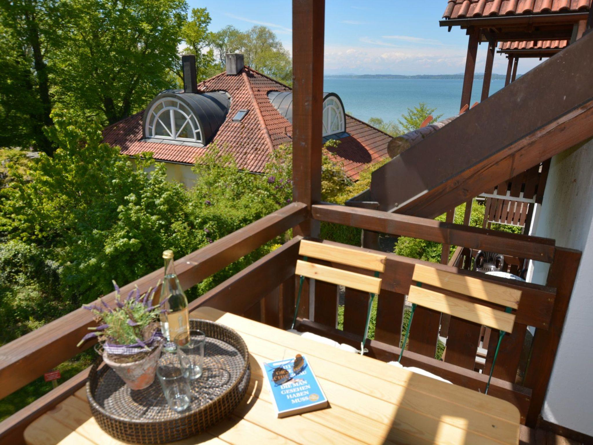 Stilvoll ist der Wohn- und Essbereich mit offener Küche gestaltet worden. Die moderne Küche ist mit Cerankochfeld, Backofen, Mikrowelle und Geschirrspülmaschine ausgestattet. Betreten Sie über den Wohn- und Essbereich den großzügigen Balkon mit einmaligem Ausblick auf den Chiemsee. Neben dem Schlafzimmer mit Doppelbett steht Ihnen im Wohnzimmer das neue Boxspring-Sofa mit einer Liegefläche von 90x200m zur Verfügung. Das Badezimmer mit Wellnessdusche rundet das Feriendomizil ab. Der sehr schön geschnittene Ferientraum befindet sich im Dachgeschoss der Ferienresidenz Chiemseestrand.