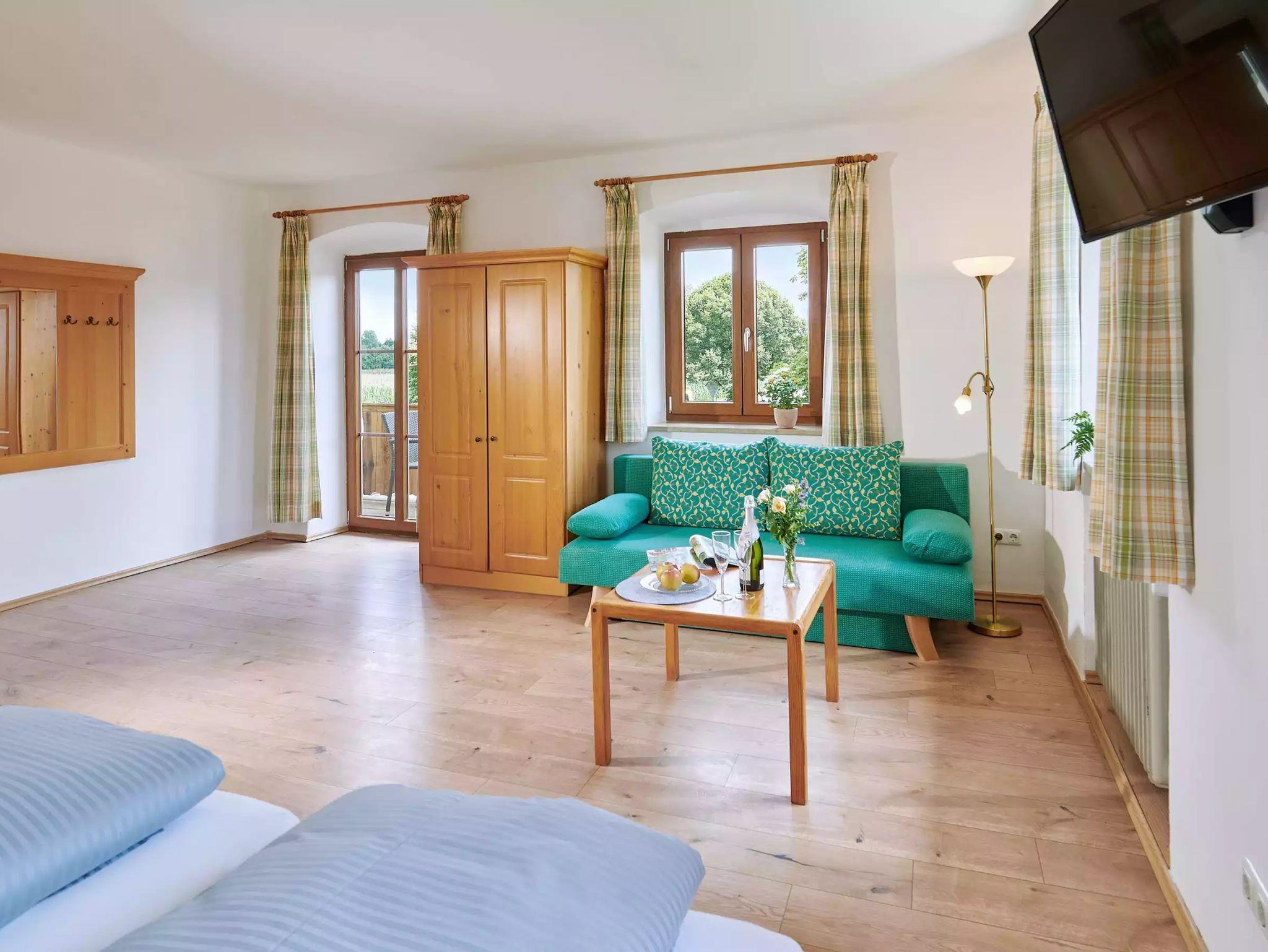 Urlaubshof Kirchmaier, Doppelzimmer Nr. 4 im 1. OG mit Balkon und Chiemseeblick
