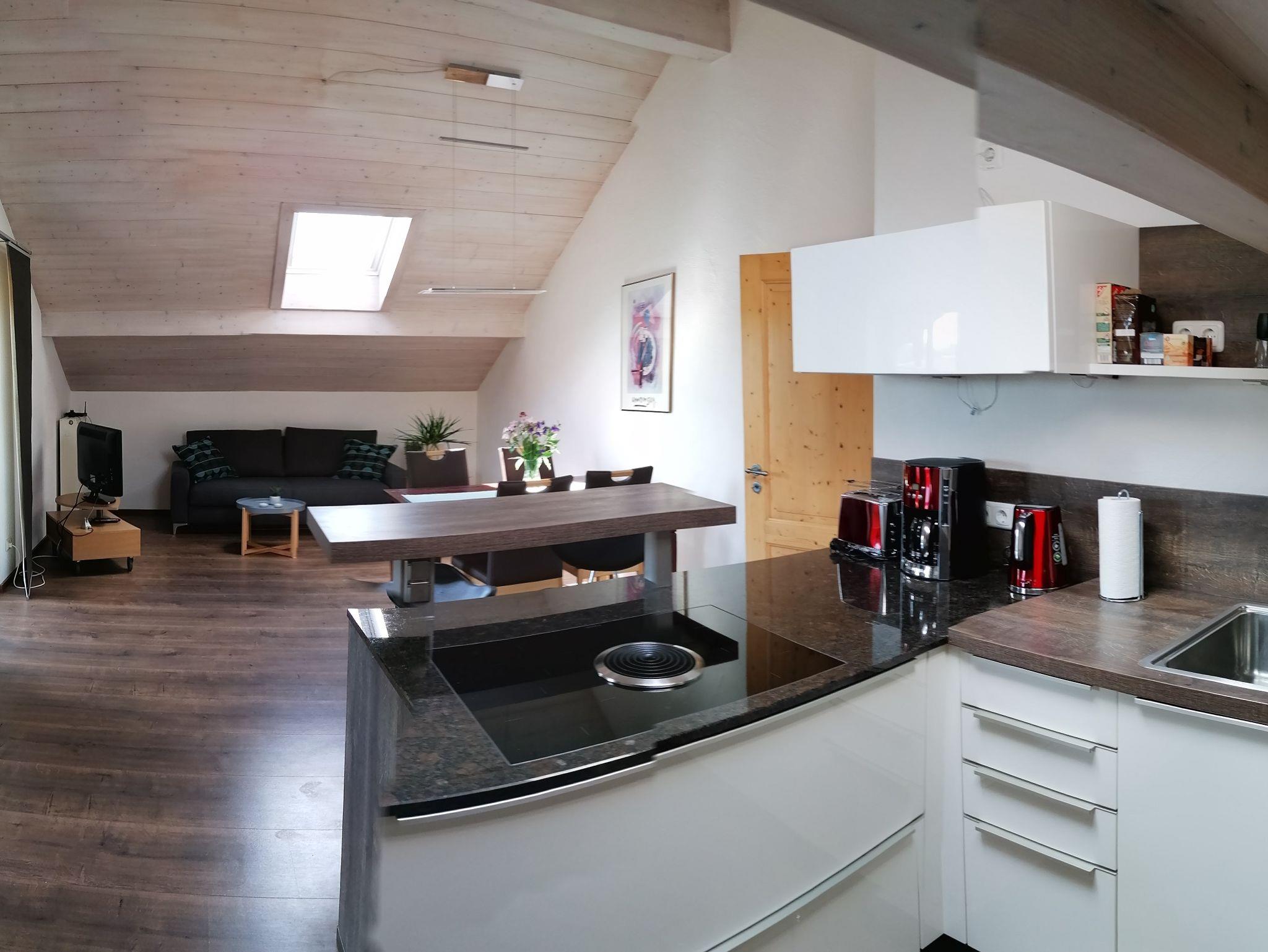 Gemütliche und gepflegte Ferienwohnung mit Balkon in freundlicher Atmosphäre. Die Wohnung befindet sich im Dachgeschoss eines ehemaligen Bauernhauses mit 500-jähriger Geschichte und wurde 2020 komplett neu gestaltet.