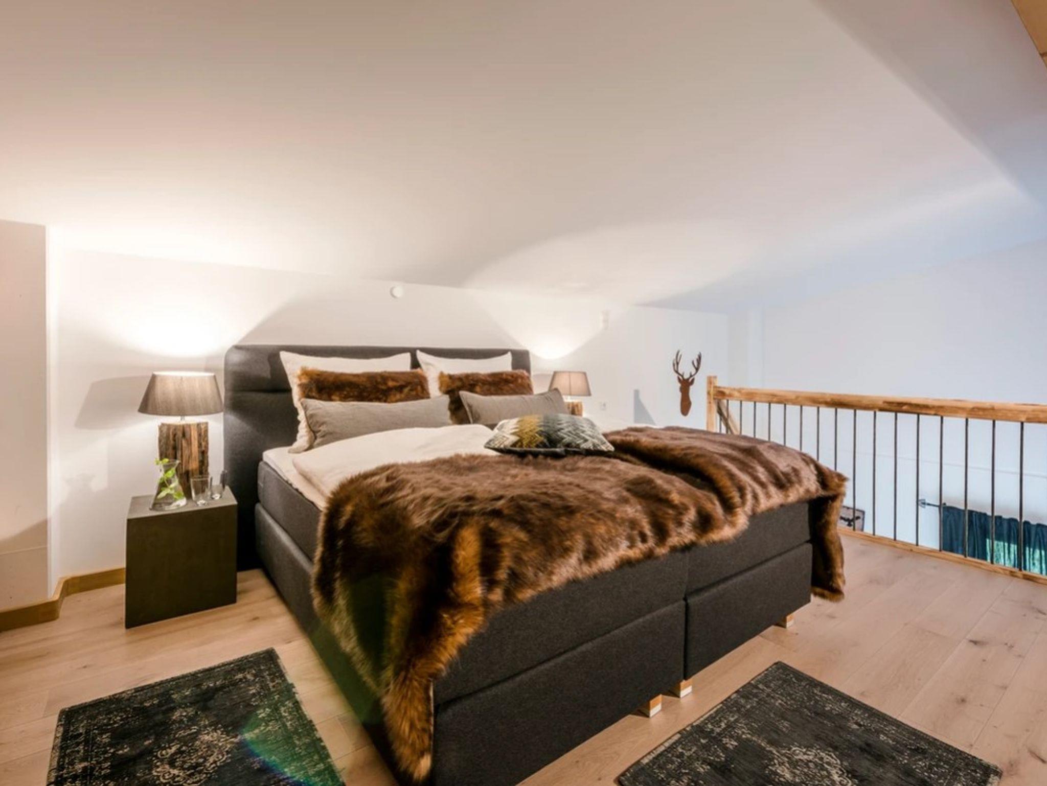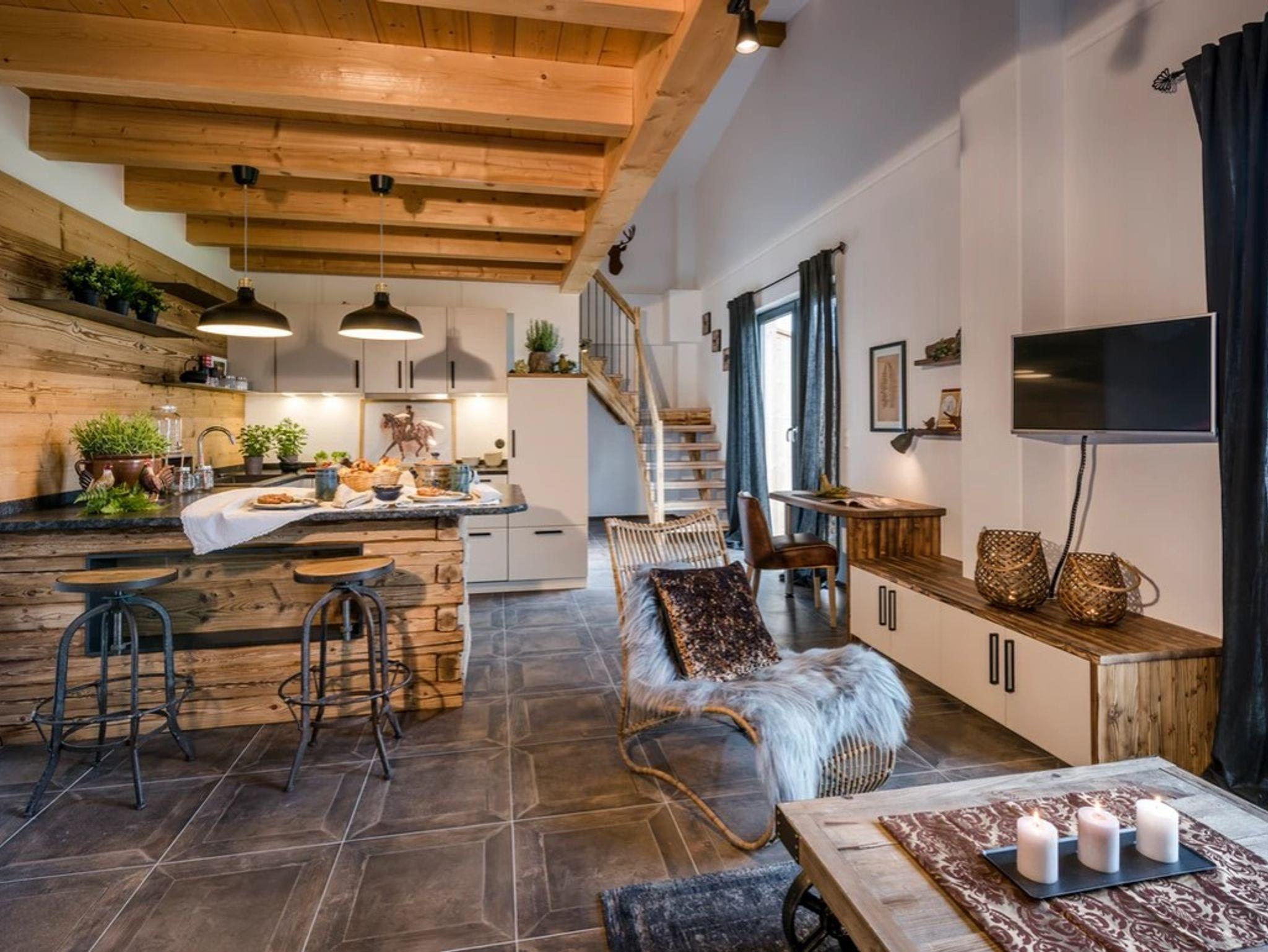 Die Ferienwohnung Hochgern bietet mit einer Größe von etwa 70 qm reichlich Platz für bis zu 4 Personen. Die gemütlich eingerichtete Ferienwohnung liegt im 1. Stock und ist mit einer Galerie ausgestattet. Dort oben befindet sich der Schlafbereich mit zwei Doppelbetten. Über den nach Süden ausgerichteten Wohnbereich geht es direkt auf den großzügigen eigenen Sonnenbalkon mit freiem Blick in die Natur und auf unsere imposanten Chiemgauer Berge. Der Kochbereich wie auch die übrige Ausstattung wurde durch ausgewählte Details, Stoffe und Farben liebevoll zum Wohlfühlen eingerichtet.