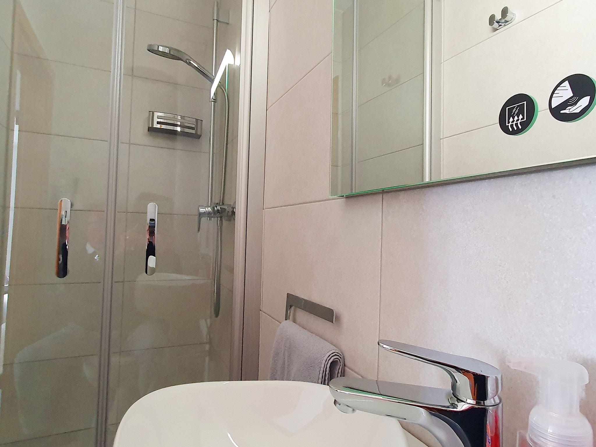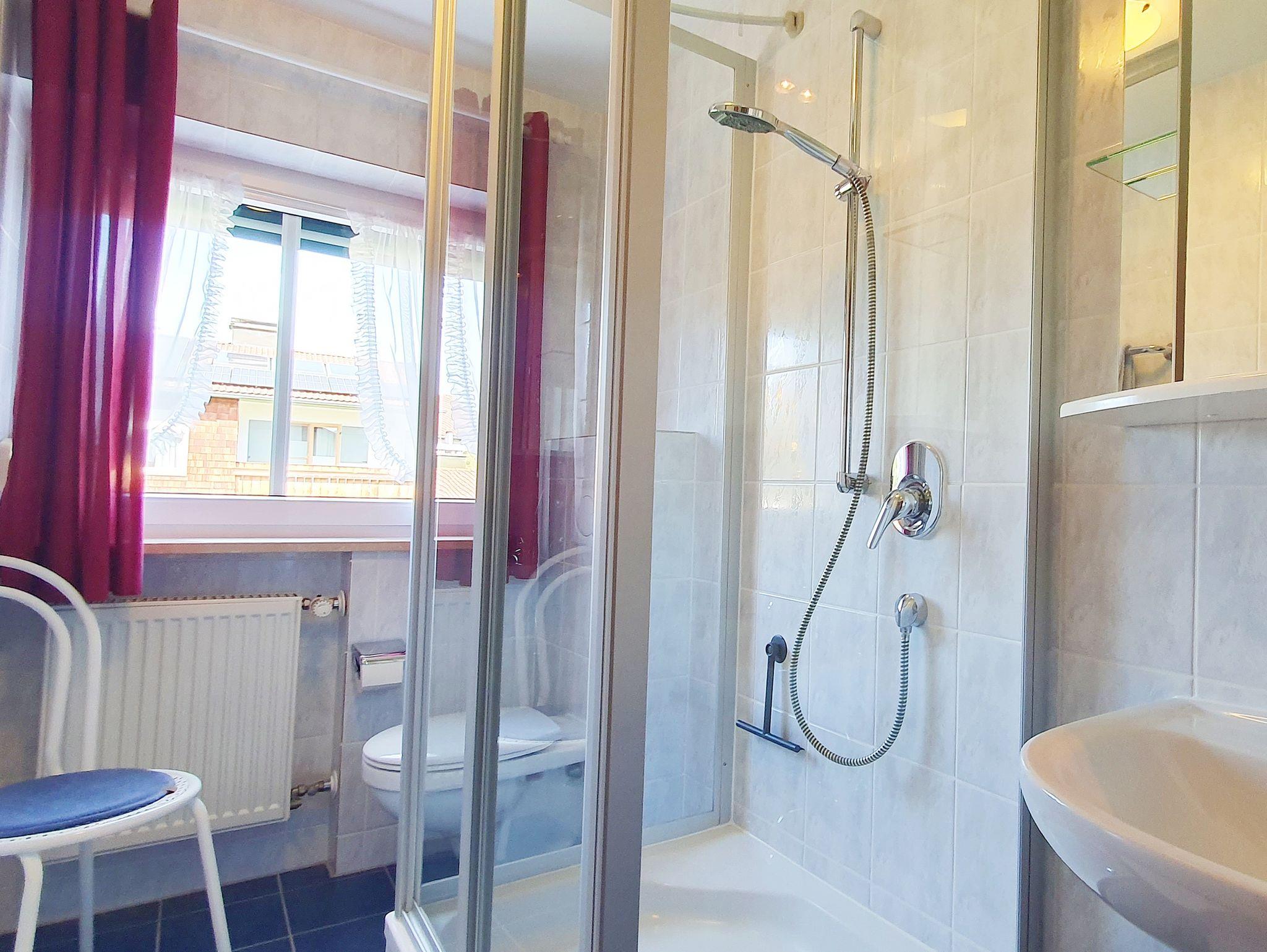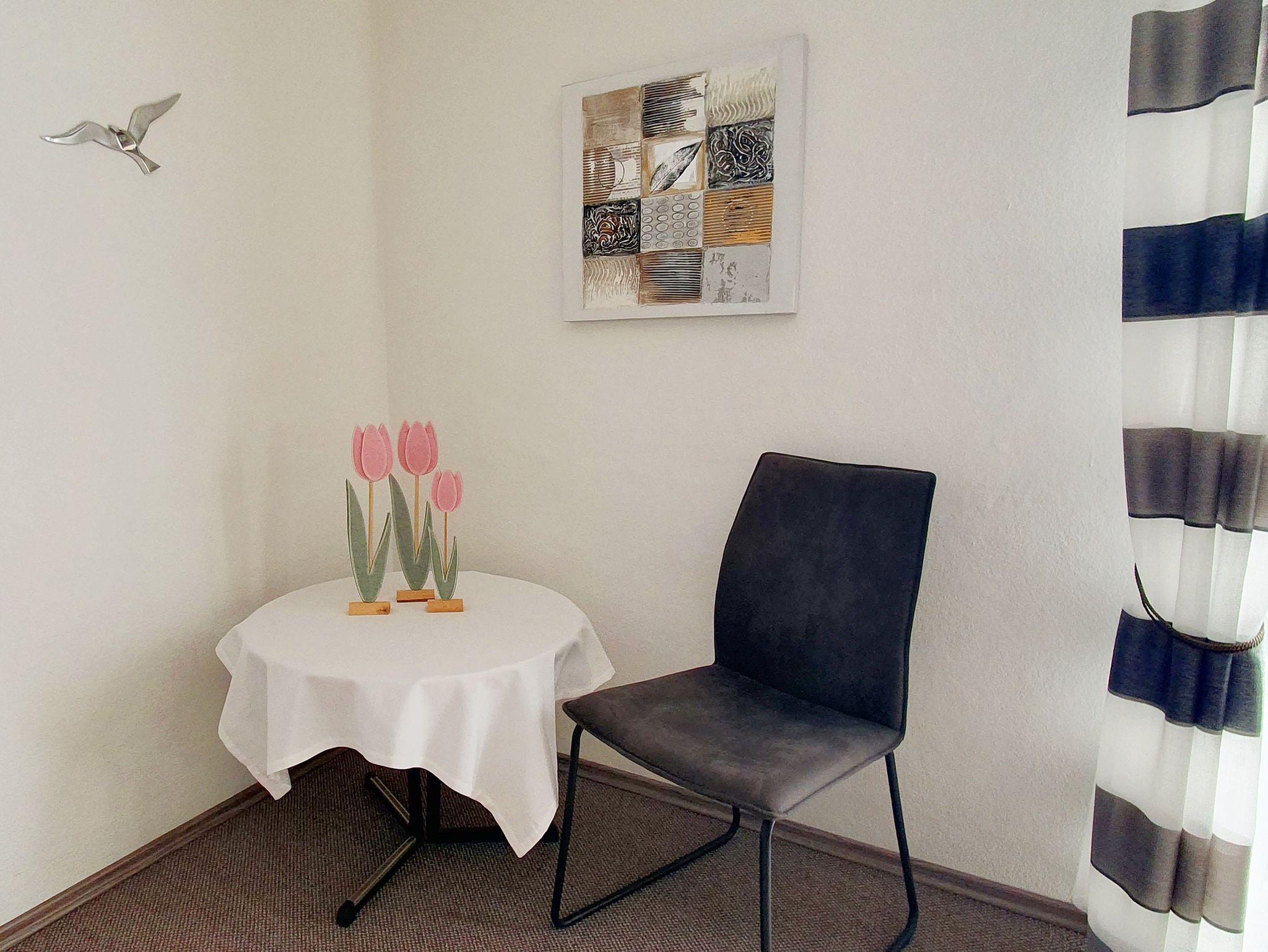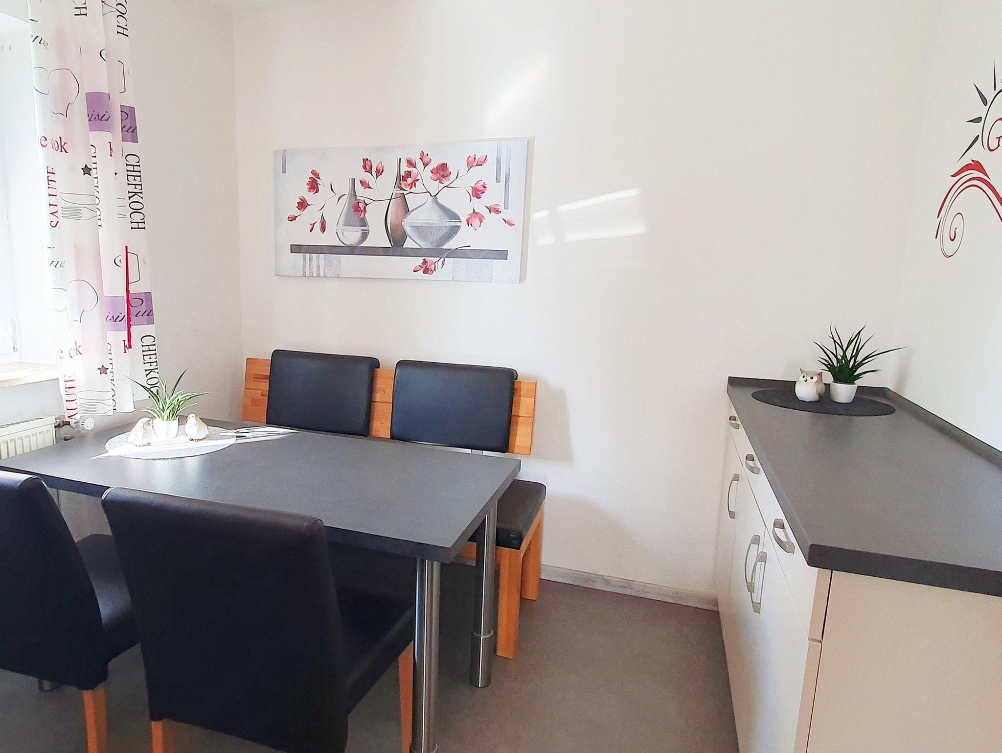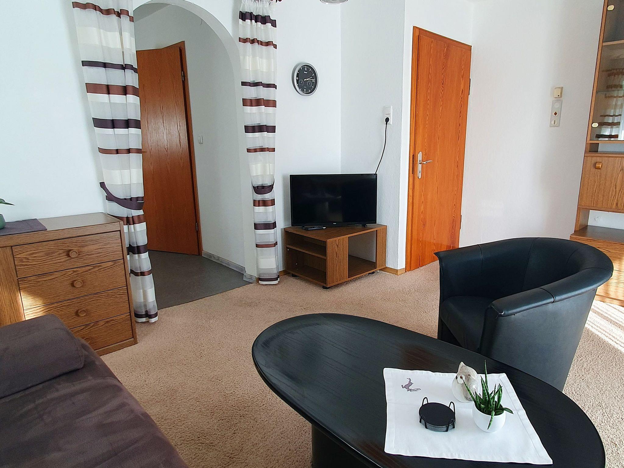 Gemütlich eingerichtete 50 m² große Ferienwohnung mit Südbalkon. Der Balkon mit Bergblick ist sowohl vom separaten Schlafzimmer mit Doppelbett, als auch vom Wohnzimmer erreichbar. Über das Wohnzimmer haben Sie Zugang zur Küche mit Essecke und das Bad.