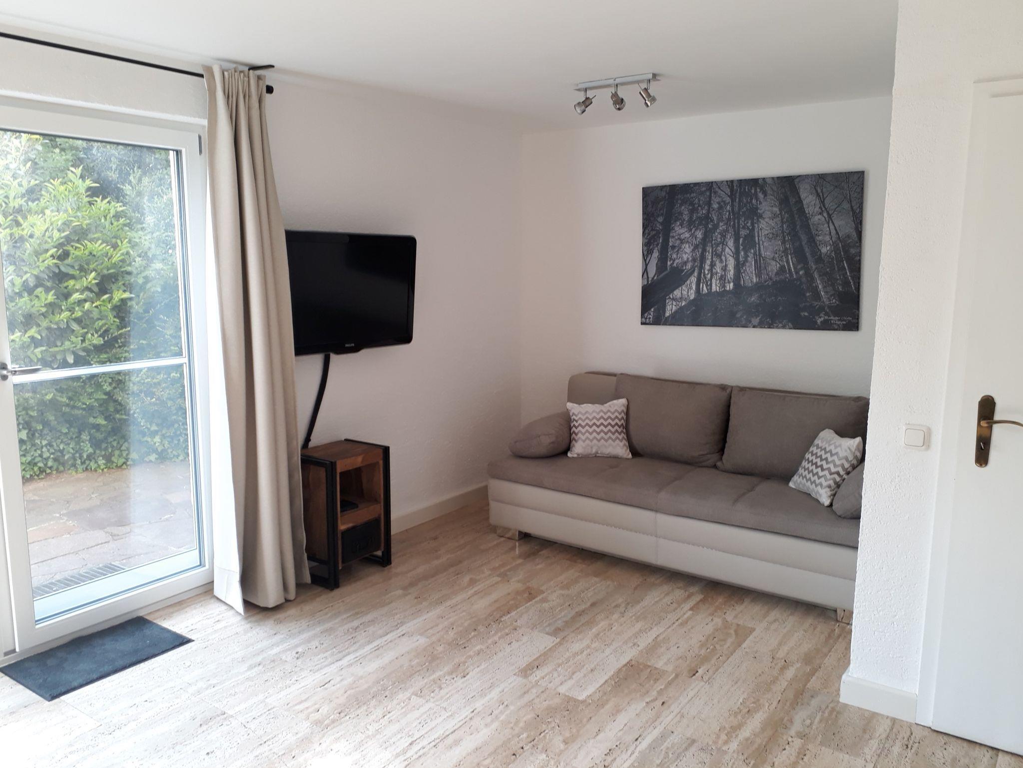 Juni 2019 neu eingerichtete Ferienwohnung 60qm mit moderner Ausstattung, separater Eingang über Außentreppe, gemütliche sonnige Terrasse mit Tisch/Stühlen, Großzügiges und helles Schlafzimmer, Wohnzimmer mit Esstisch, TV und Ausziehcouch, Küche ausgestattet mit Geschirrspüler, Backofen, Kaffeemaschine und 4 Platten Herd, Bad mit Badewanne/Dusche/WC, Handtücher und Bettwäsche inkl., Besonderheiten: W-LAN, elektrische Rolladen, Insektenschutz Tür/Fenster, Nichtraucherwohnung, Zustellbett für Kinder bis 3 Jahren kann gestellt werden.