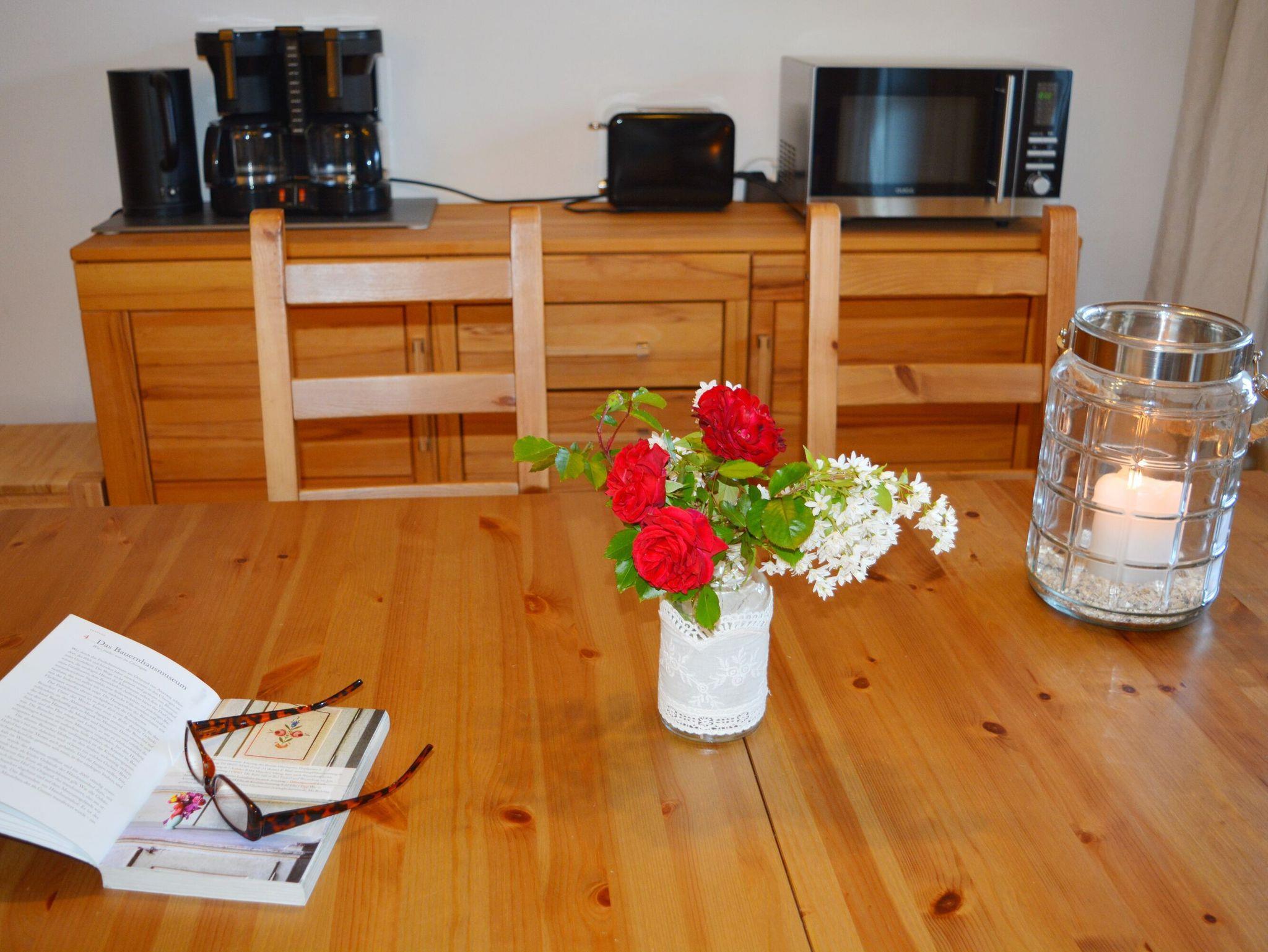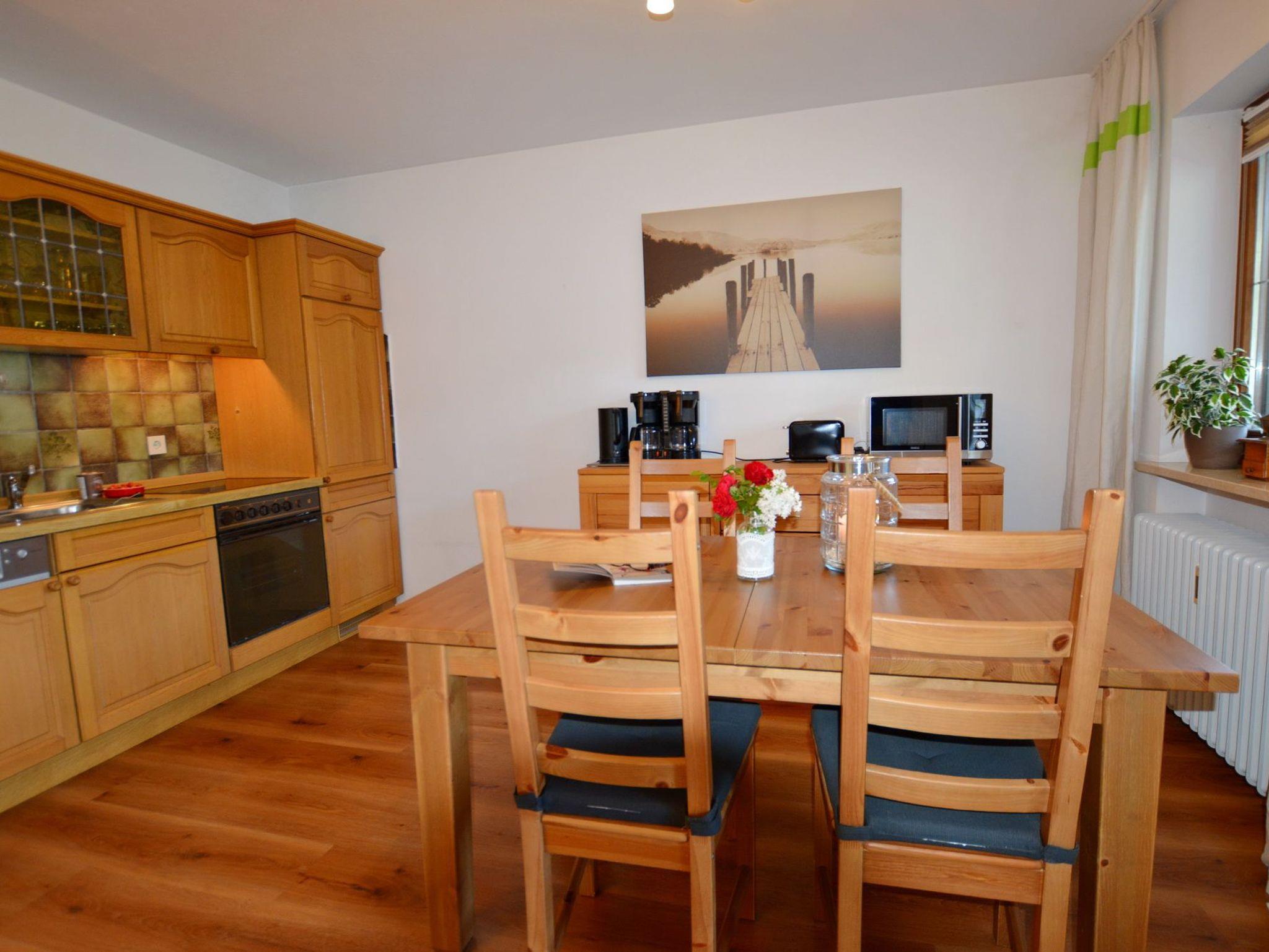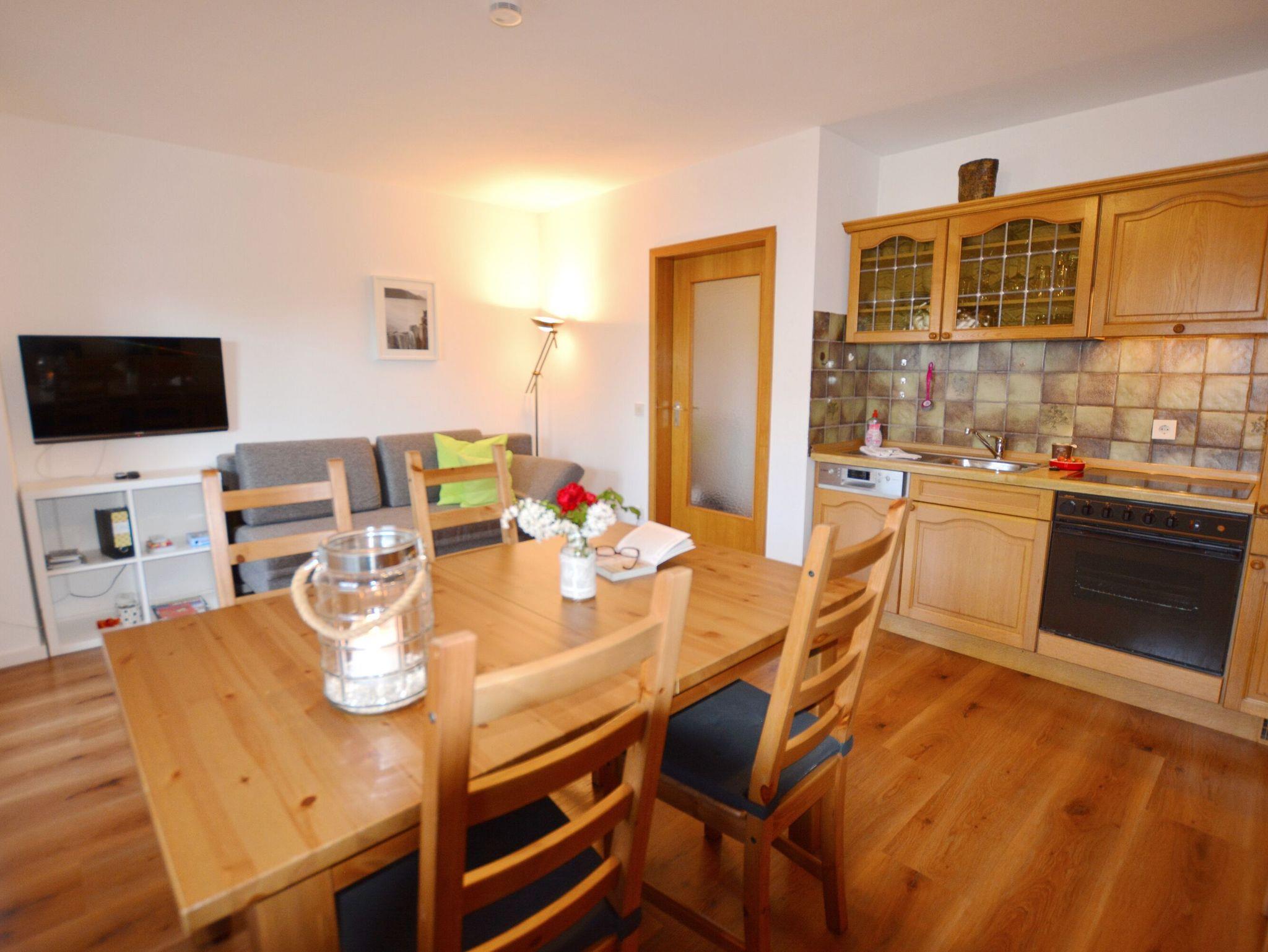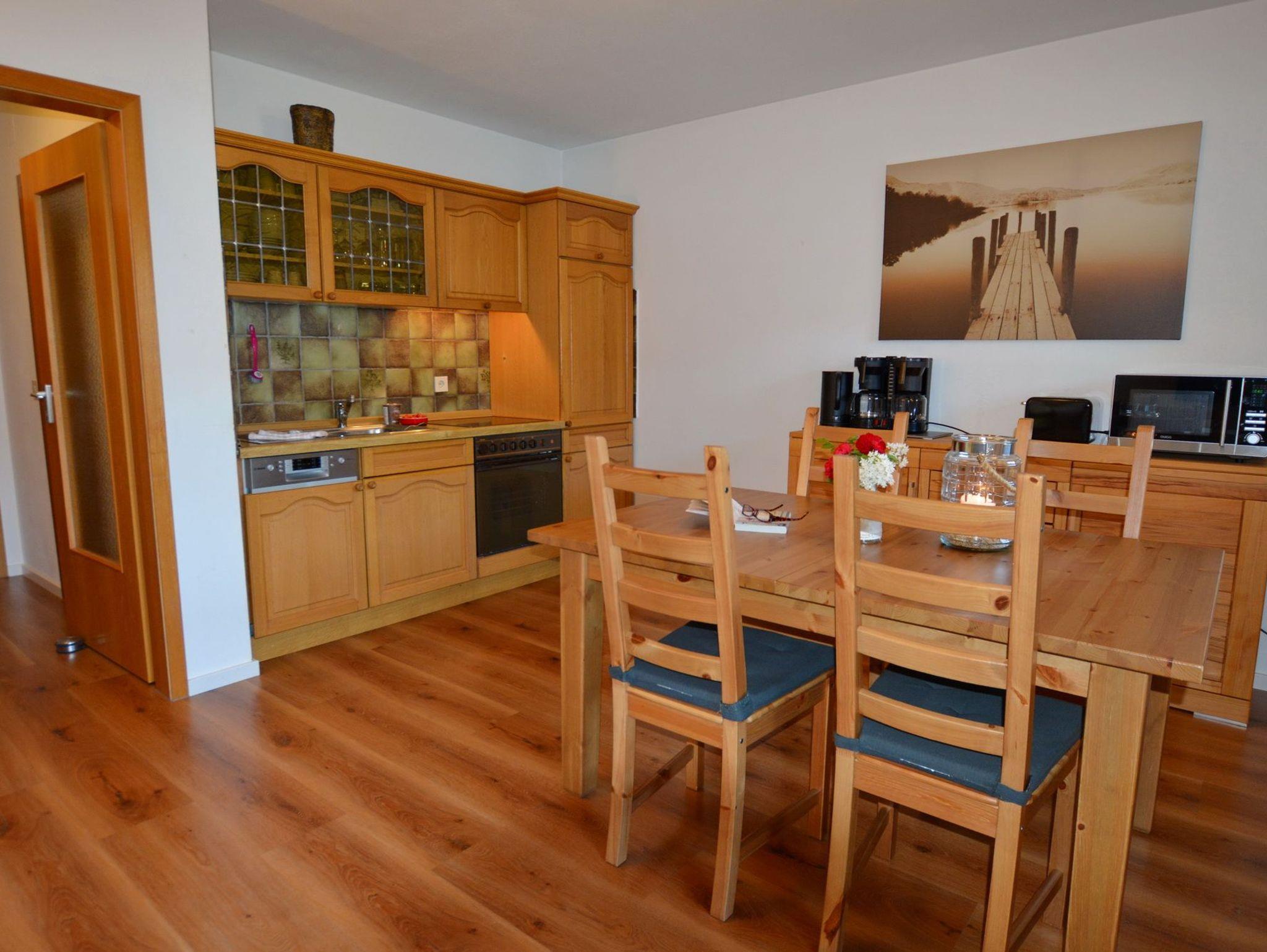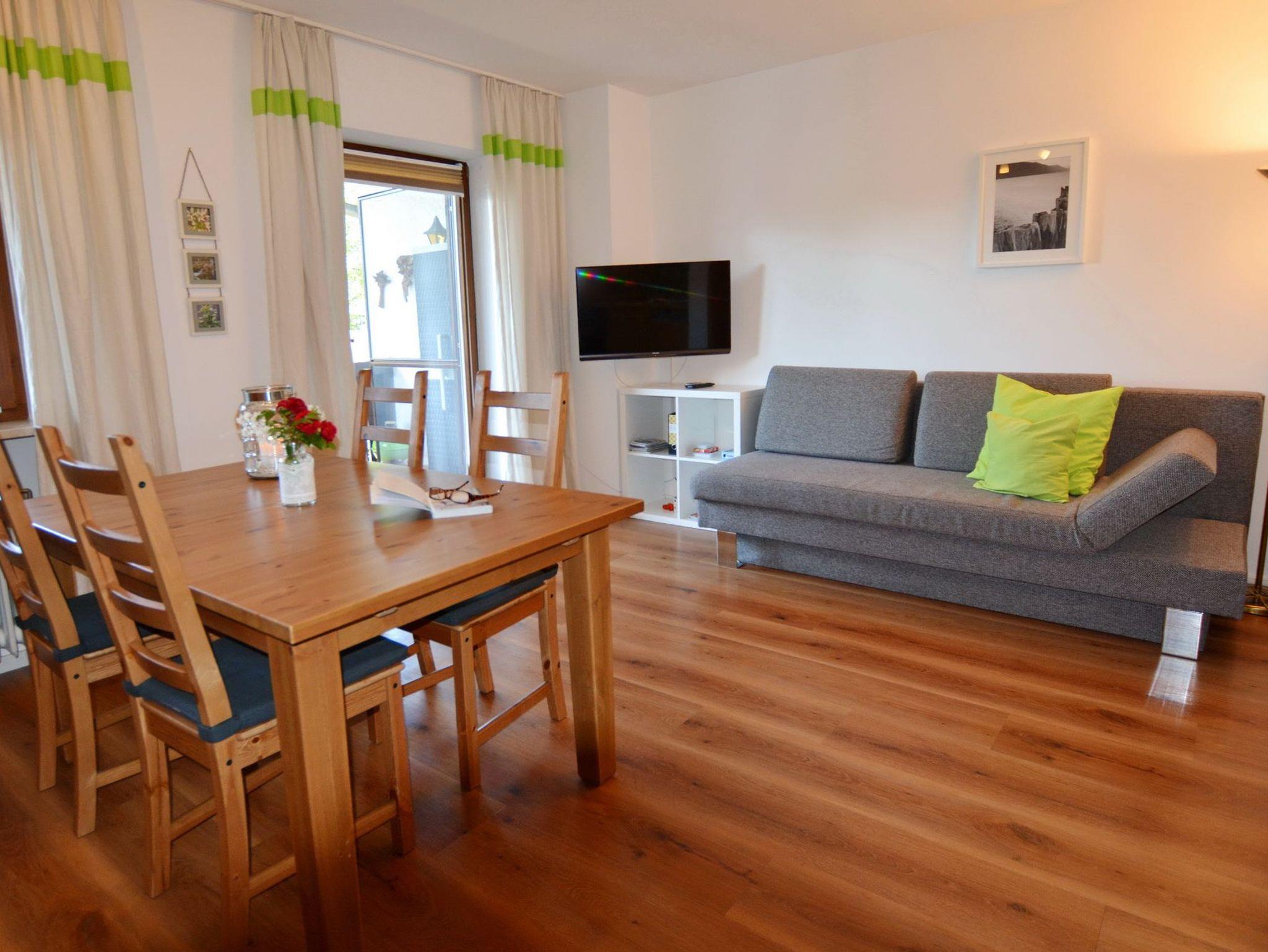 Die gemütliche 2-Zimmer-Wohnung für bis zu 3 Personen befindet sich im 1. Stock und verfügt über einen großen Süd-Ostbalkon. Schöne Stunden sind dort vorprogrammiert. Der geschmackvoll eingerichtete Wohnbereich bietet Ihnen eine offene Küche, ein Essbereich sowie ein Sofa für gemütliche Stunden. Neben dem Schlafzimmer mit Doppelbett (Boxspringbett) steht Ihnen im Wohnbereich das Schlafsofa bei Bedarf zur Verfügung. Das Badezimmer mit Dusche rundet dieses Apartment ab. Der pflegeleichte Boden in Holzoptik (Ausnahme Badezimmer) verleiht der ganzen Wohnung einen gemütlichen Charakter.