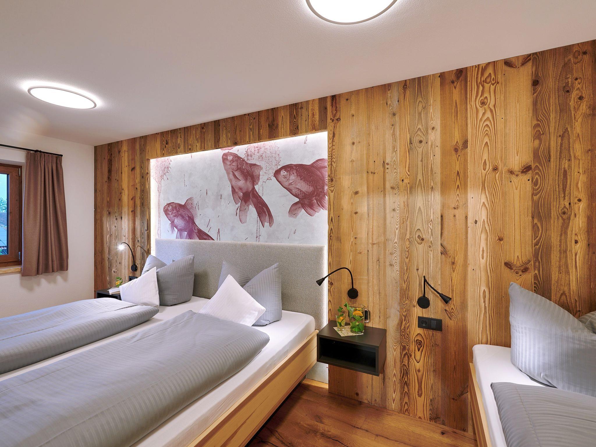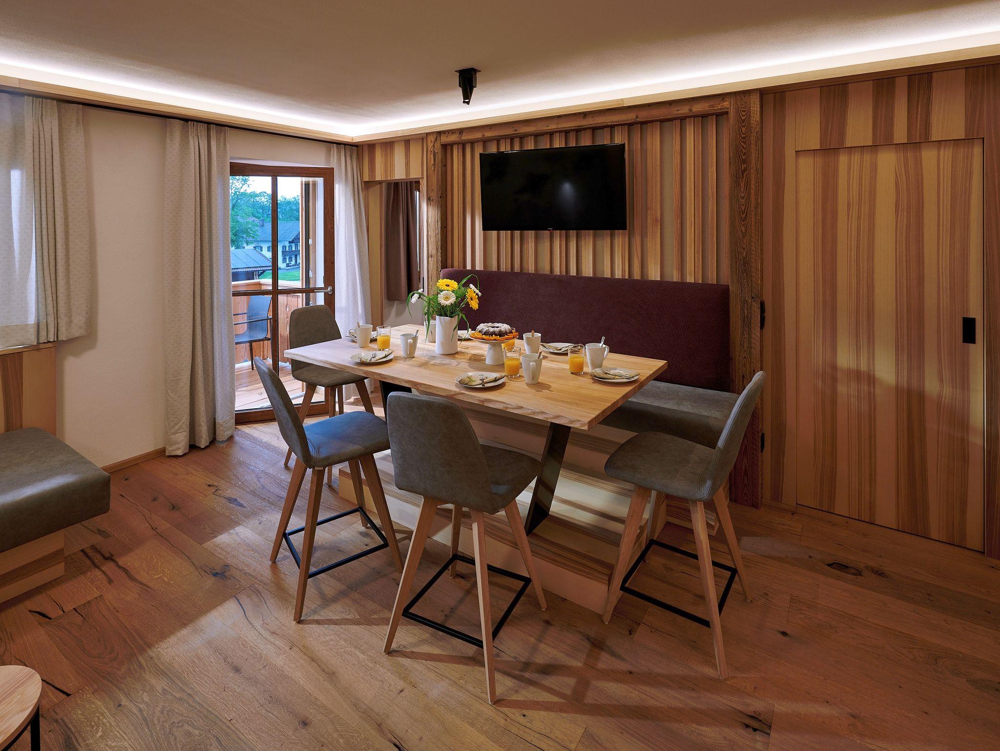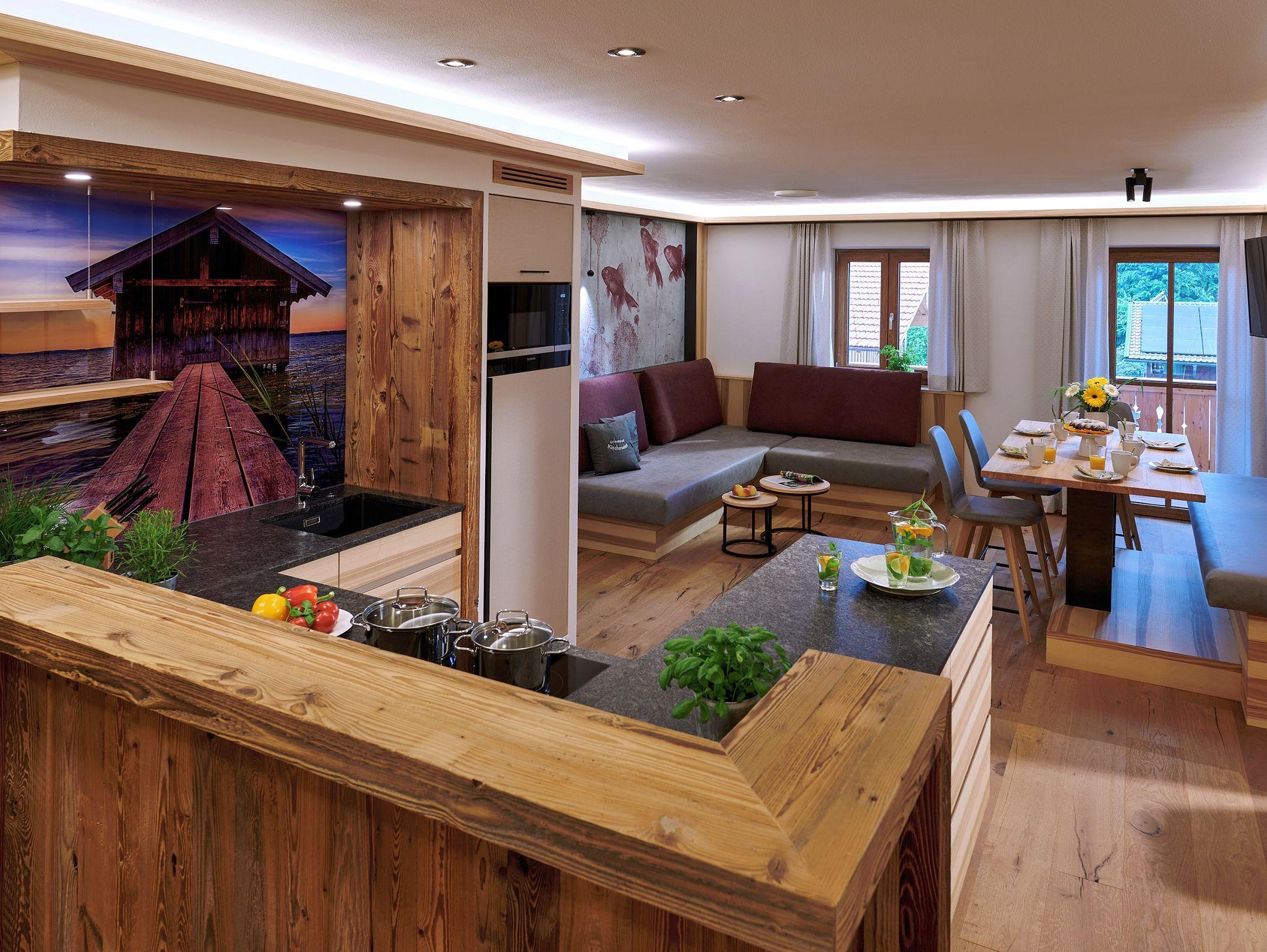 Die luxuriöse 5-Sterne-Ferienwohnung Bootshütte umfängt dich mit ihrem harmonischen Ambiente. Hier fühlst du dich sofort wie zu Hause. Die luxuriöse, bis ins kleinste Detail durchdachte Einrichtung mit viel Echtholz, harmonisch abgestimmten Stoffen und Farben und edlen Lichtelementen sorgt für echtes Wohlgefühl. Darüber hinaus bietet die Wohnung ausreichend Platz auch für große Familien mit bis zu 5 Personen. Vom großen West-Balkon aus kannst du den Blick ins Grüne und auf den Chiemsee schweifen lassen und neue Kraft tanken.