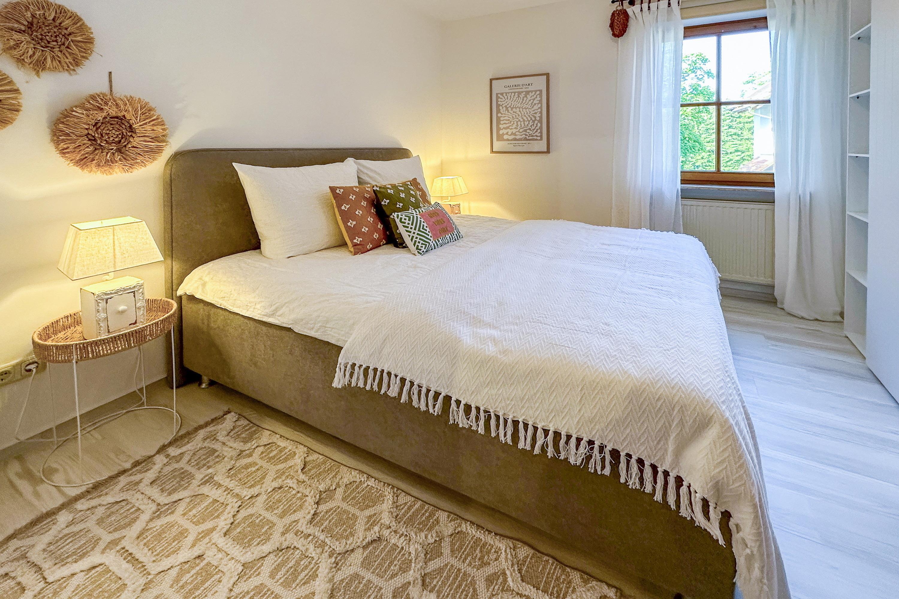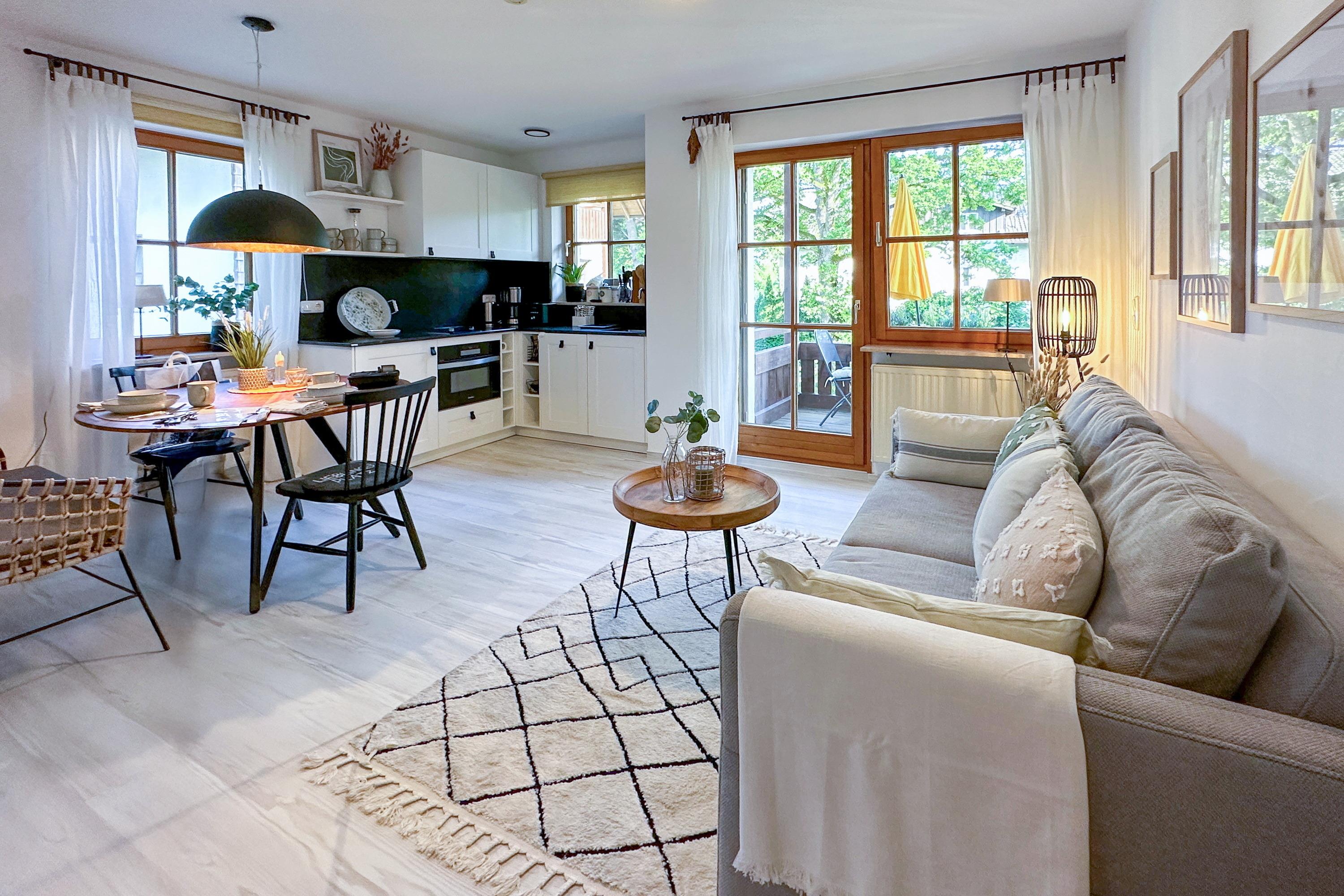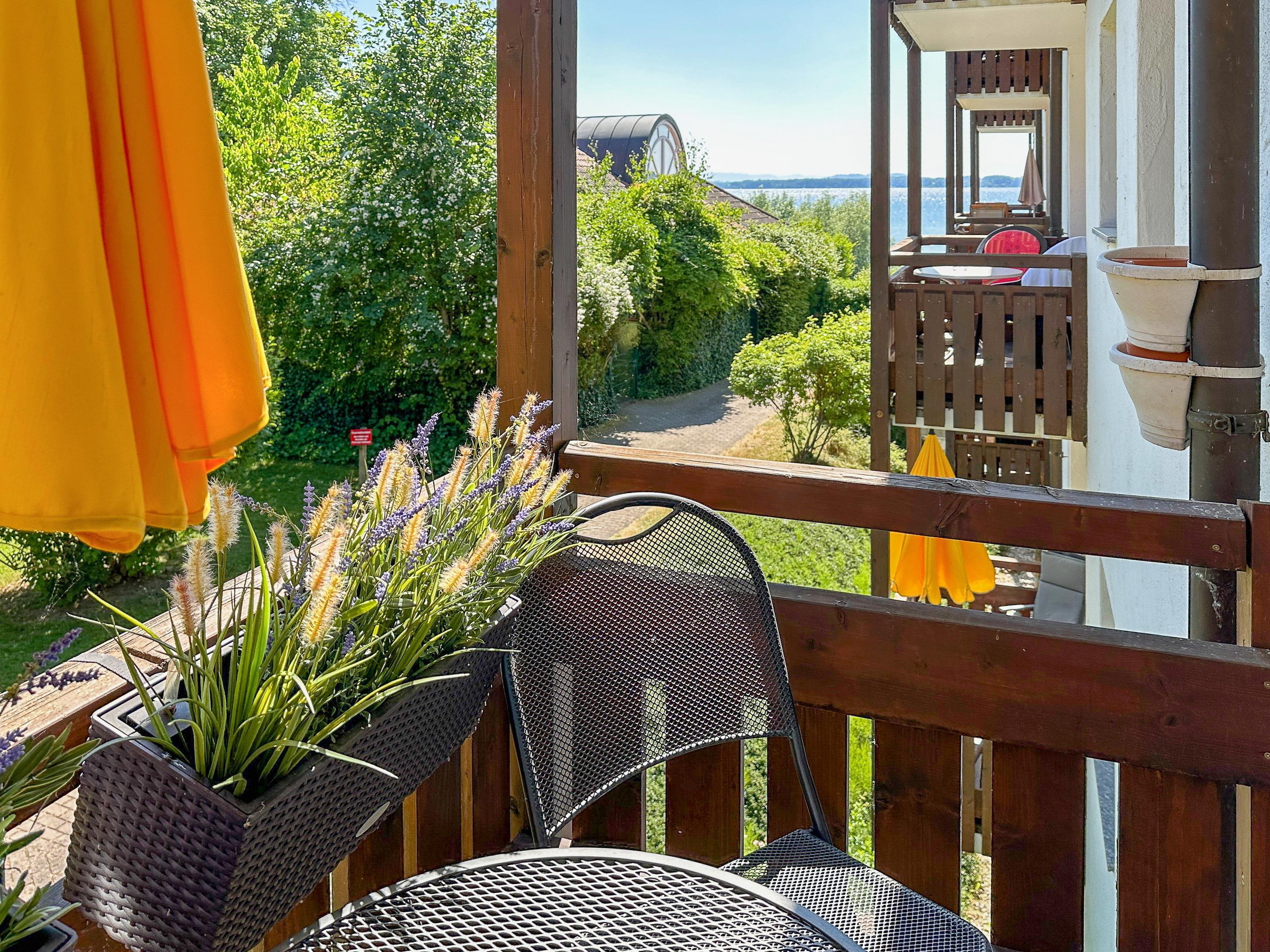 Die Ferienwohnung „Chiemsee Flair“ liegt im 1. Obergeschoss der Ferienresidenz Chiemseestrand in Chieming und bietet auf 36 m² Platz für bis zu 4 Personen. Die Wohnung verfügt über ein separates Schlafzimmer, einen Wohn- und Essbereich mit offener Küche sowie ein Schlafsofa.