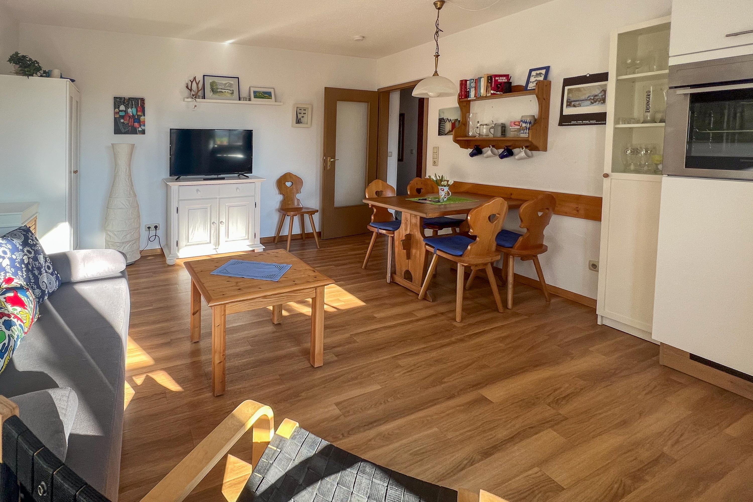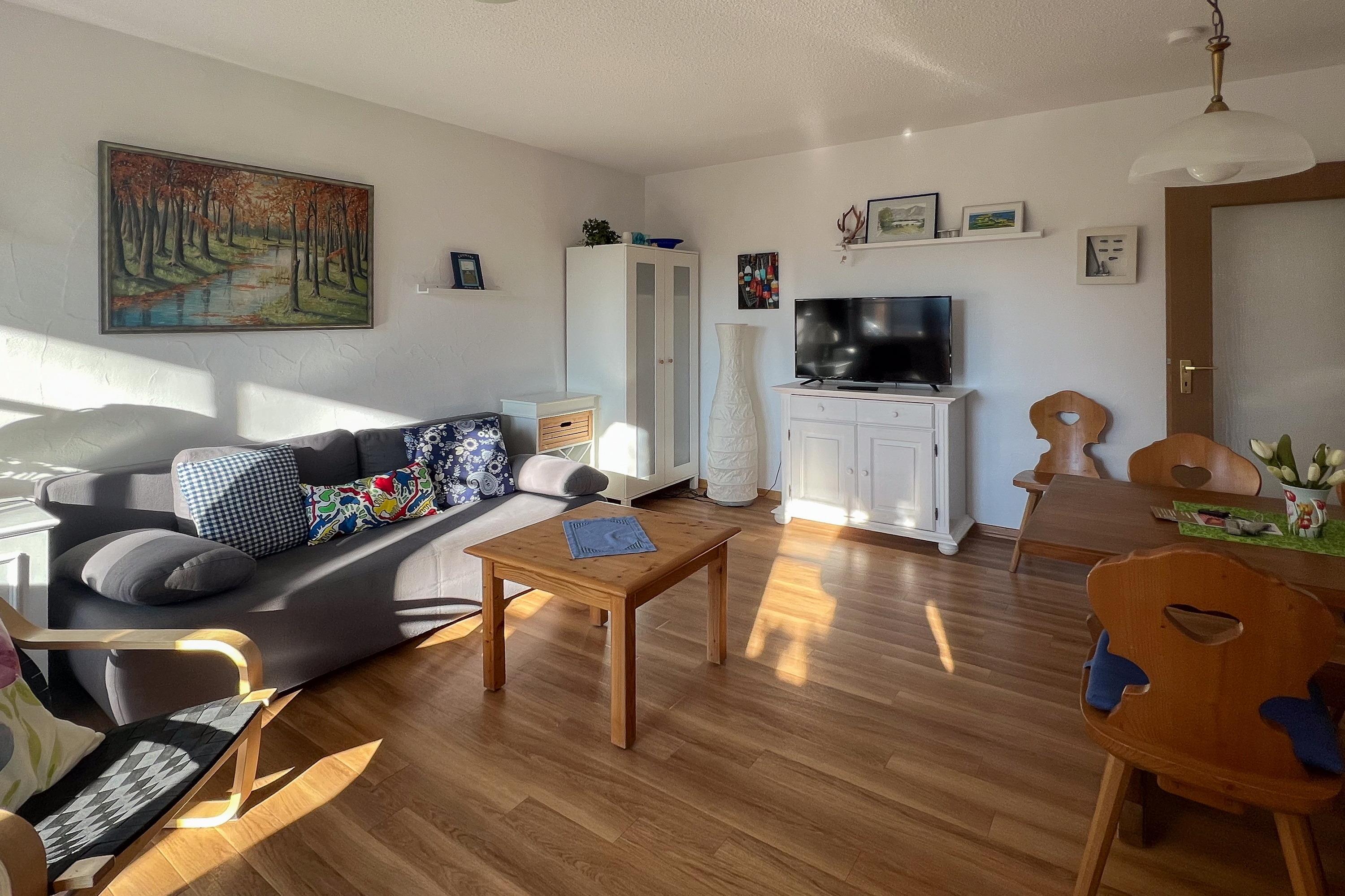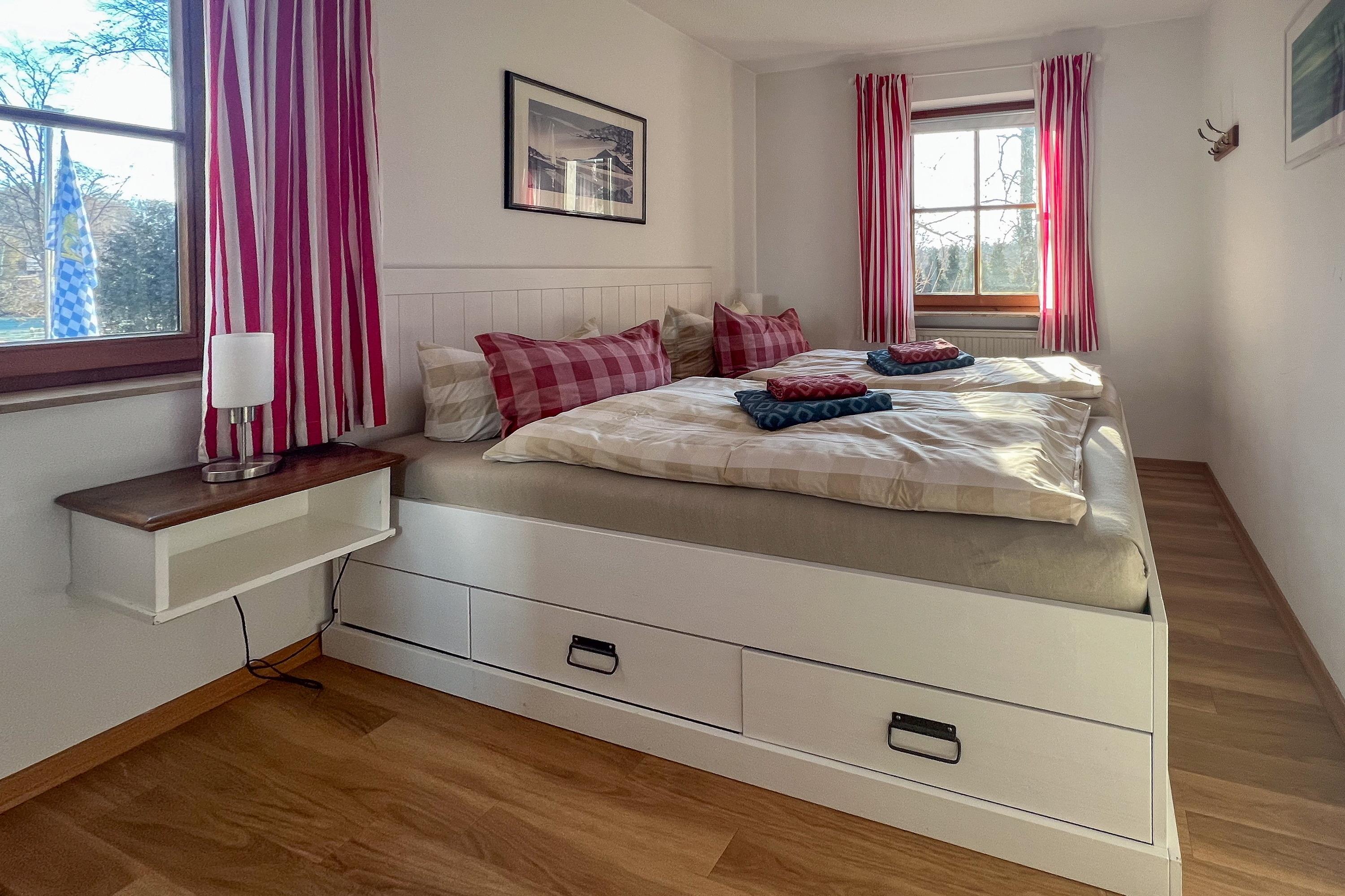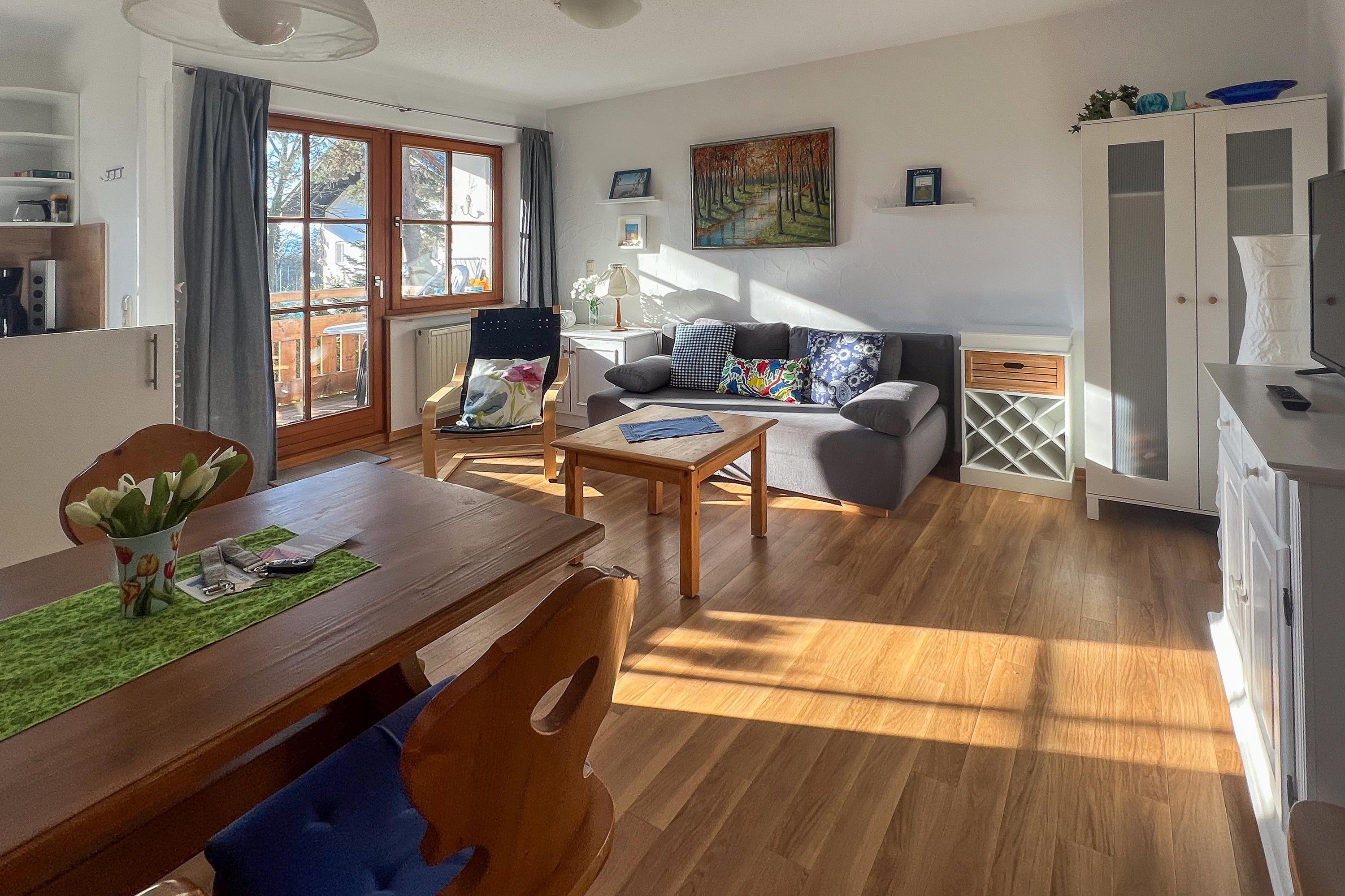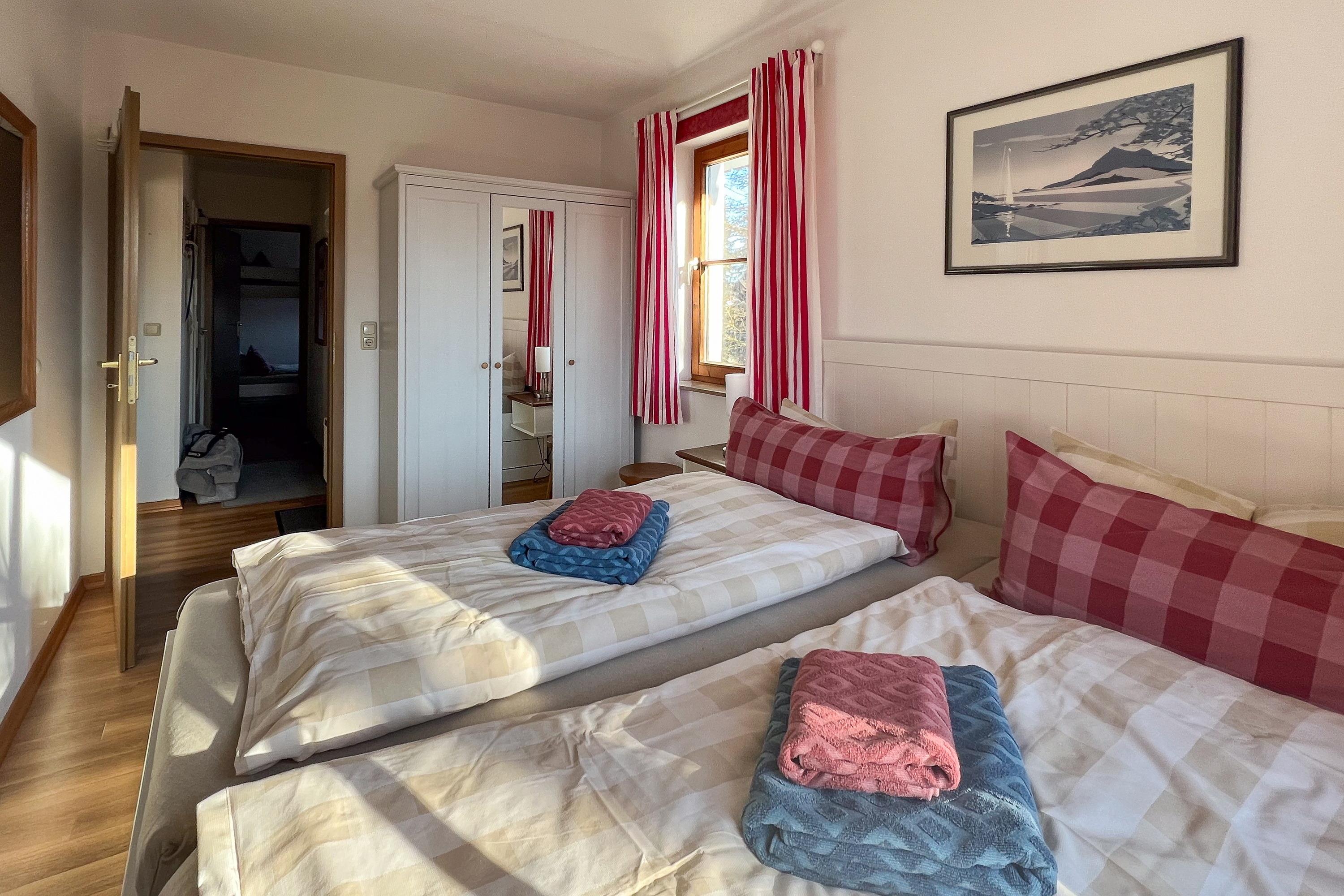 Die Ferienwohnung „Chiemseefreude“ verfügt über zwei separate Schlafzimmer, einen Wohn- und Essbereich mit offener Küche sowie ein zusätzliches Schlafsofa. Insgesamt bietet die Wohnung Platz für bis zu 4 Personen.