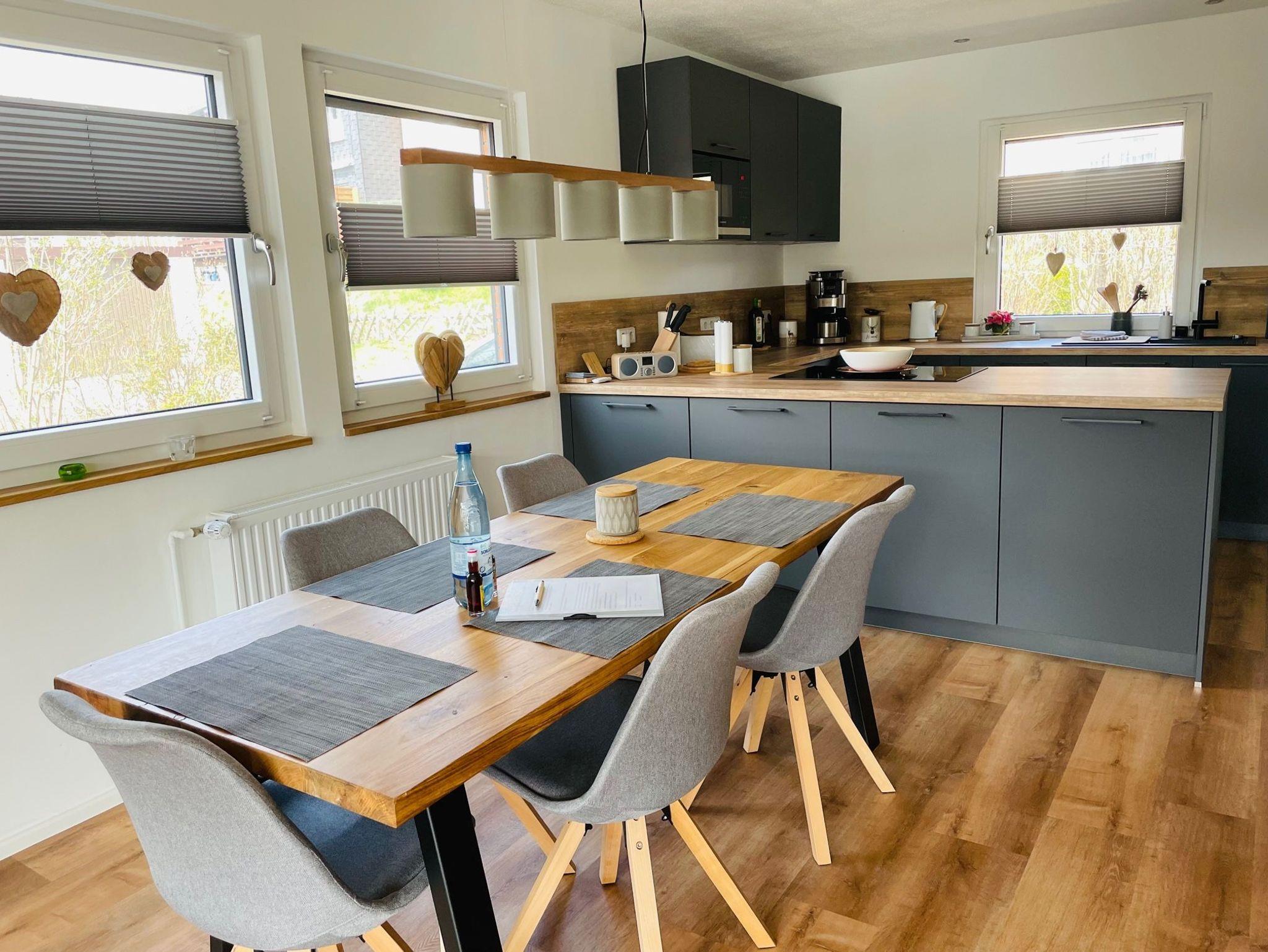 In der offenen Küche mit großem Esstisch steht Ihnen eine hochwertige Küche mit Induktionsfeld, Backofen, Geschirrspüler, Kühlgefrierkomination, Toaster, Kaffeemaschine usw. zur Verfügung. Ausgestattet ist die Küche zudem mit diversen Gewürzen, Filtertüten, Spül-Tabs, Geschirrhandtücher etc.
