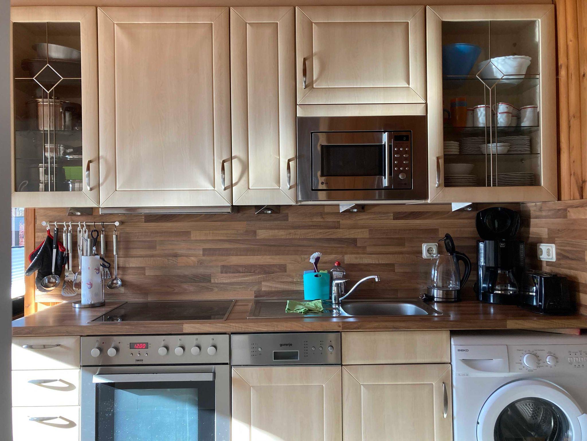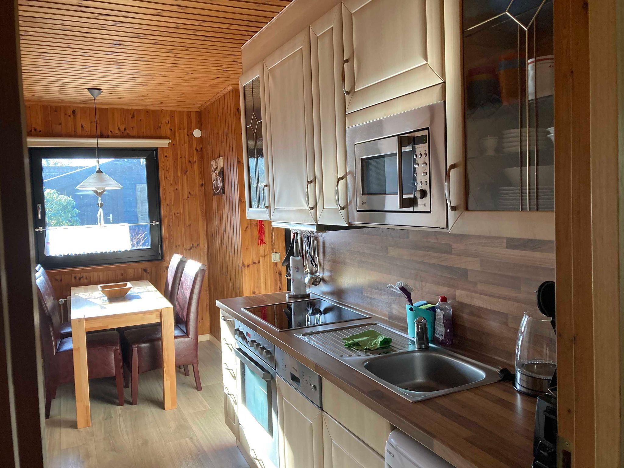 In diesem Ferienhaus in Clausthal-Zellerfeld im Oberharz befinden sich ein Wohnzimmer mit Kaminofen, eine Küche (4-Plattenherd, Backofen, Wasserkocher, Geschirrspülmaschine, Mikrowelle) mit Essbereich, zwei Schlafzimmer mit zwei Einzelbetten, ein Bad mit Dusche und eine Sauna.