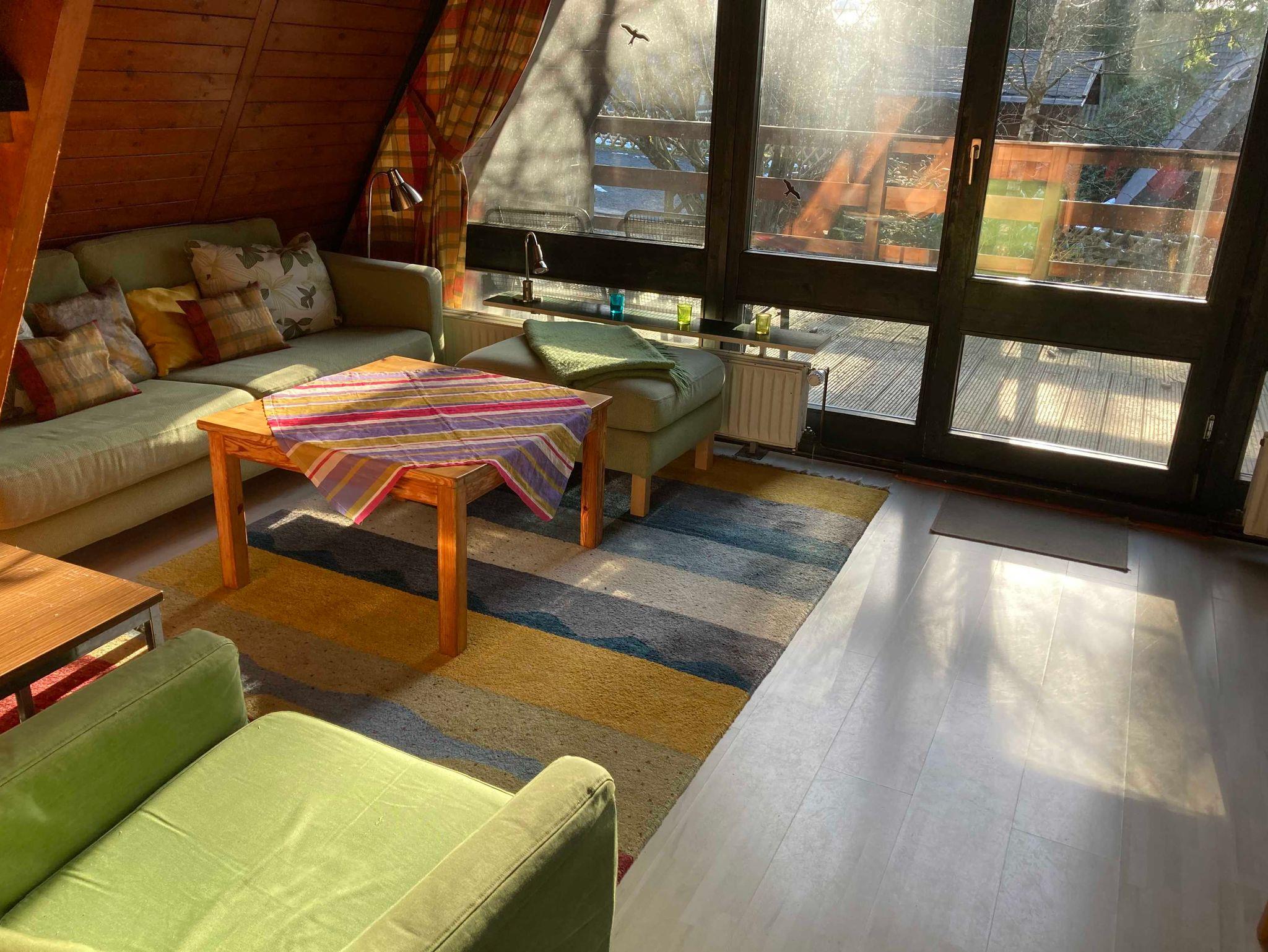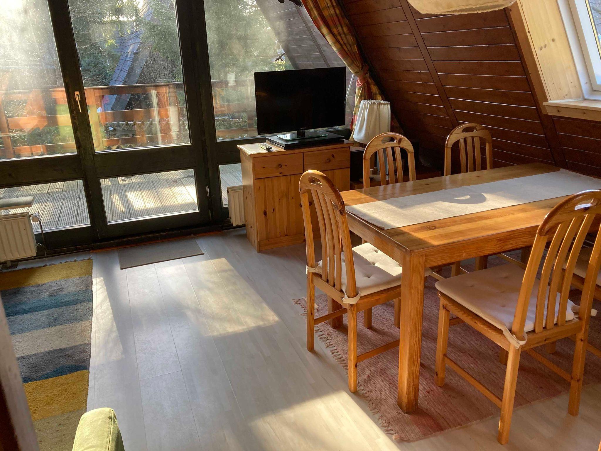 3 Schlafzimmer (1 DZ, 1 DZ mit 2 Einzelbetten, 1 EZ), Küche mit Durchreiche zum Wohnzimmer, Wohnzimmer mit Essecke, Terrasse, Bad mit WC und Badewanne oder Dusche, Diele mit Kleiderschrank, Kabel- oder Sat- TV und Radio. Das Nurdachhaus strahlt eine gediegene Atmosphäre aus. Wohn- und Schlafräume erstrecken sich über zwei Etagen. Die Konstruktion hat sich bewährt. Ihre besonderen Merkmale sind schräge Wände, optimale Raumausnutzung und ein anheimelndes Raumklima. Zwischen Wohnbereich und Küche befindet sich eine Durchreiche, so kommt das Essen zu den Mahlzeiten direkt vom Herd auf den Tisch. Über eine platzsparende Treppe erreichen Sie die obere Etage.