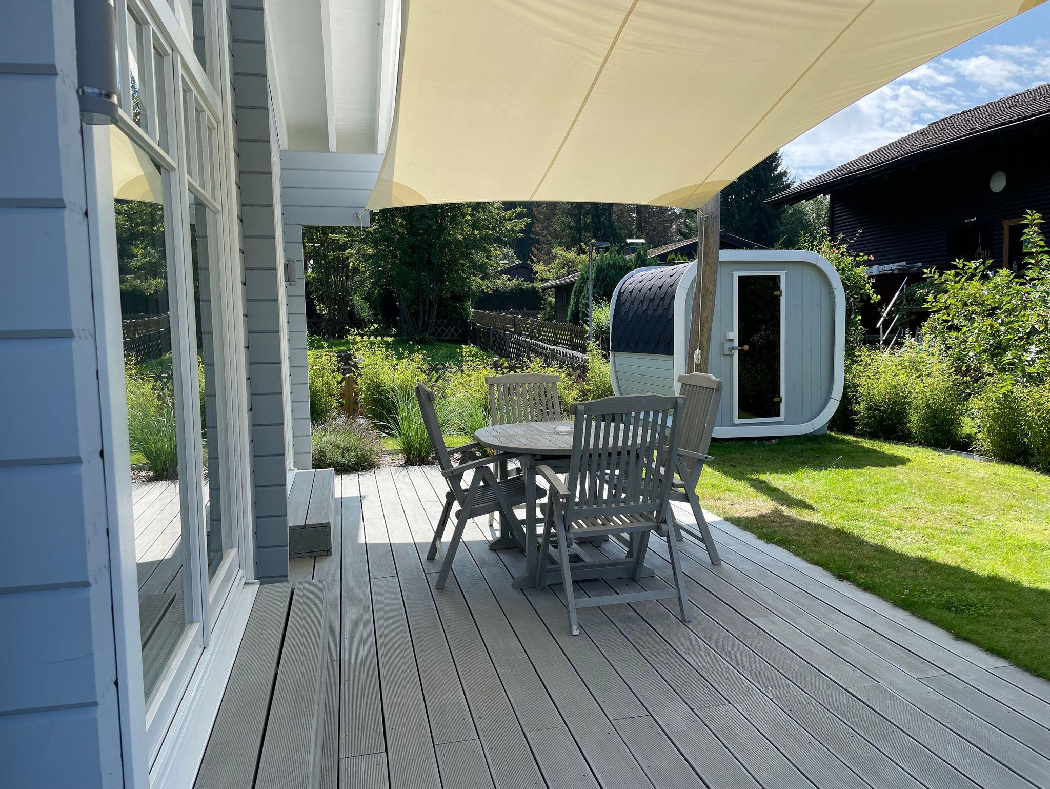 Ihnen steht während Ihres Urlaubs ein eigener Garten samt ca. 20m2 großer Holzterrasse zur Verfügung.