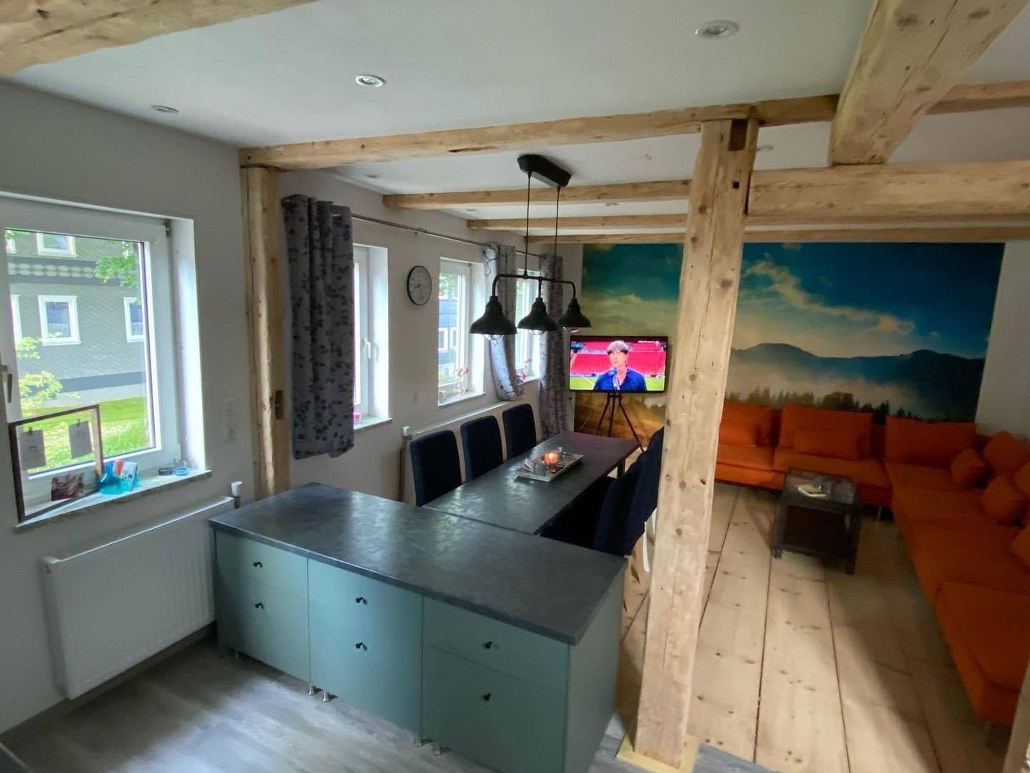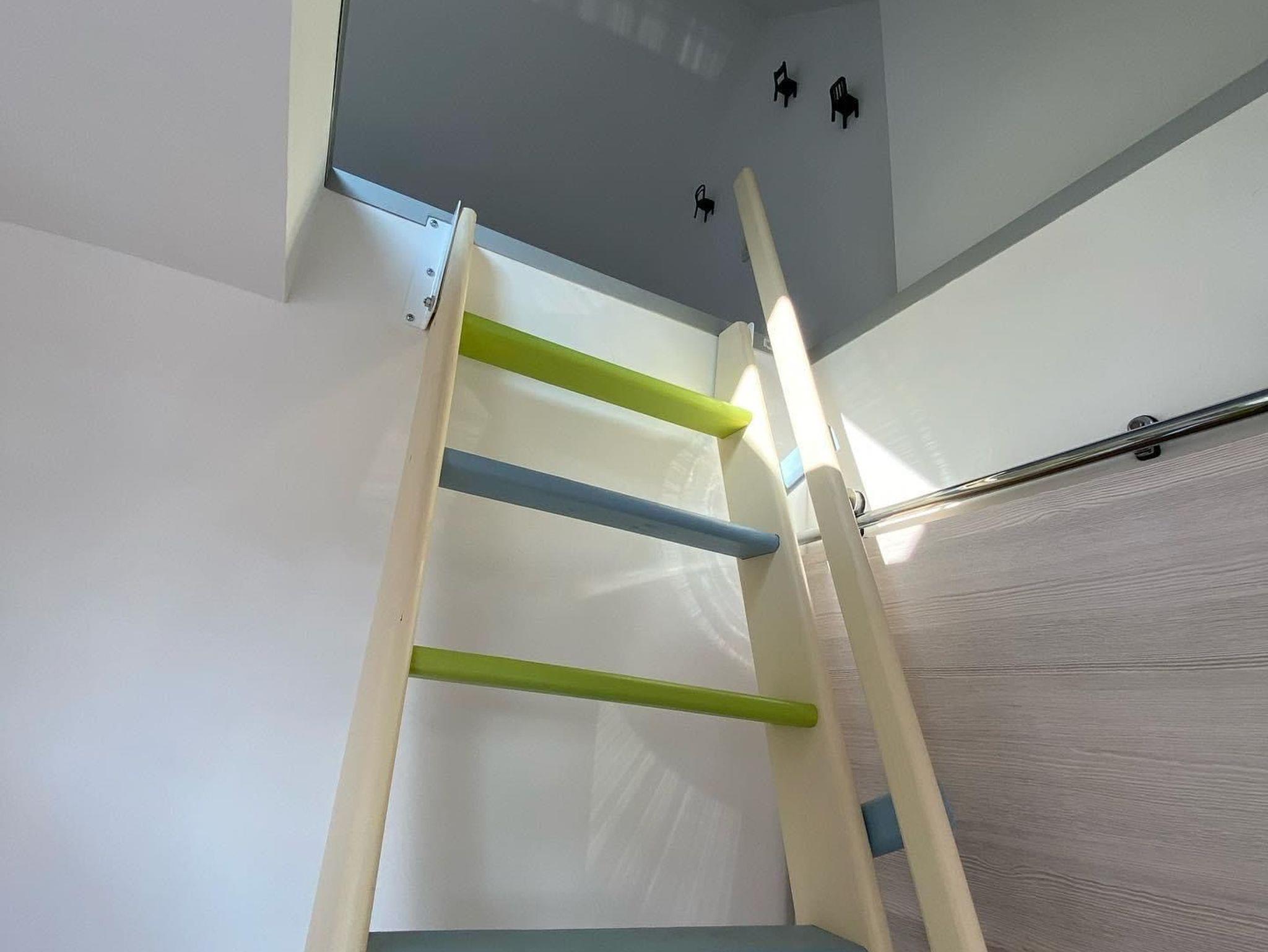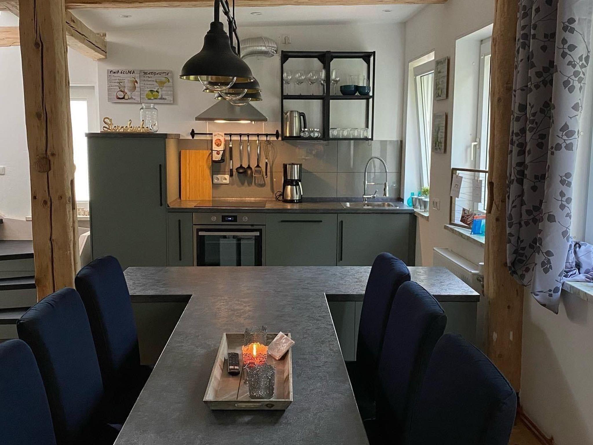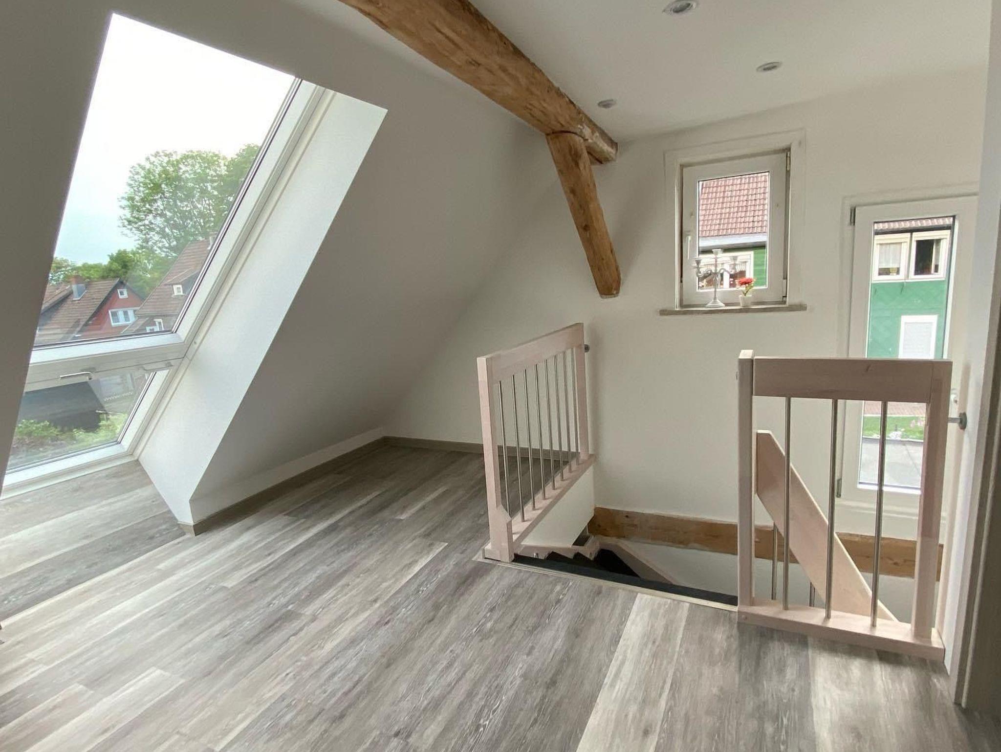 Die 110 qm Wohnung liegt im 1.OG und erstreckt sich über 3 Etagen. In 2 SZ und auf dem Schlafboden finden insgesamt 4 Erwachsene und 2 Kinder Platz. Die Küche ist mit Backofen, Kühlschrank und Geschirrspüler ausgestattet und der große Wohn-Essbereich lädt zum Verweilen ein. Bei schönem Wetter kann man die Abendsonne auf dem Balkon genießen.