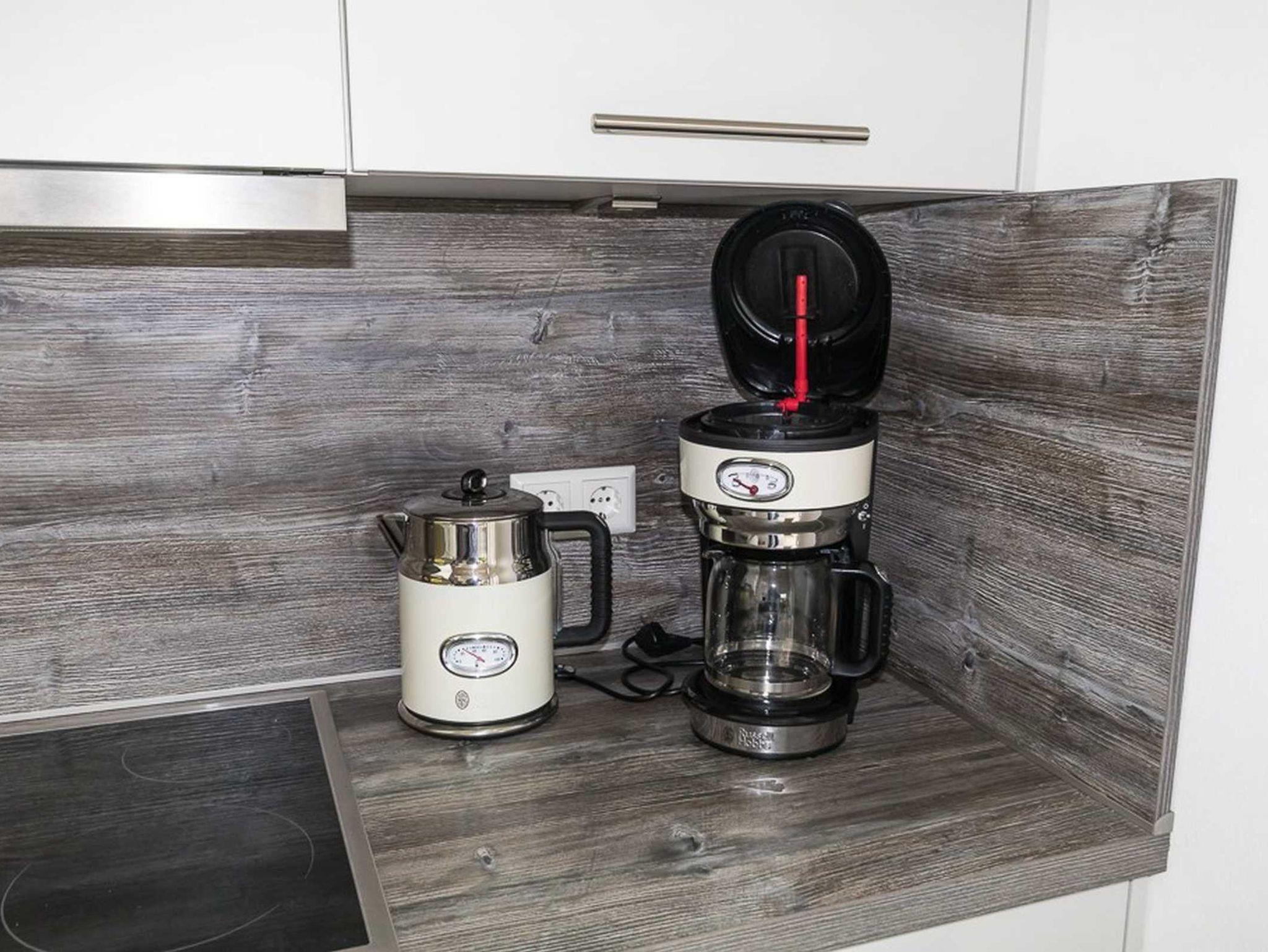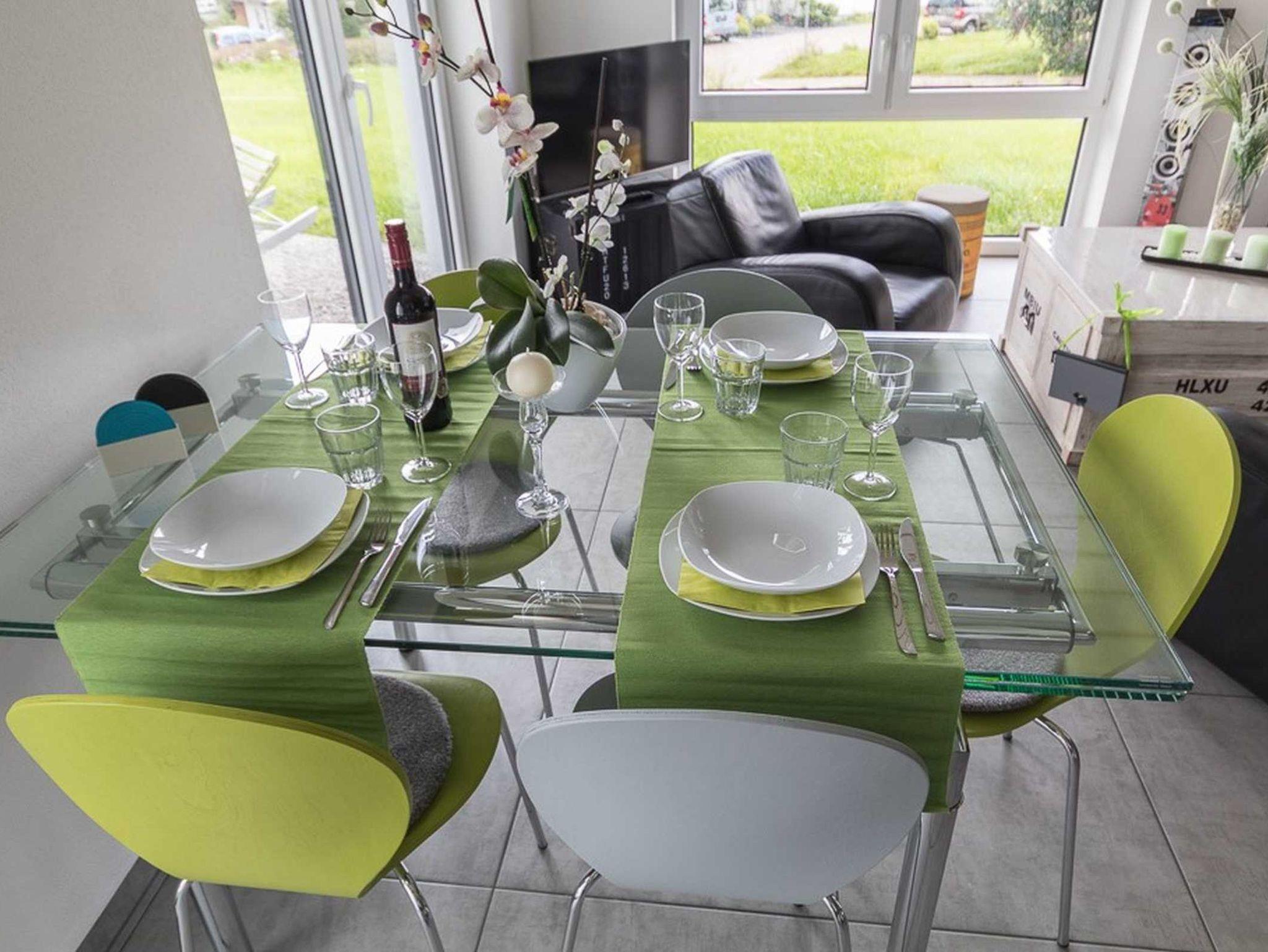 Die helle offene Küche, die mit Backofen, Mikrowelle, Spülmaschine und einer Kühl- und Gefrierkombination ausgestattet ist, geht direkt in den mit Kamin und Entertainment ausgestatteten Wohn- und Essbereich über. Vom Essbereich aus gelangt man auf die angrenzende Außenterrasse.