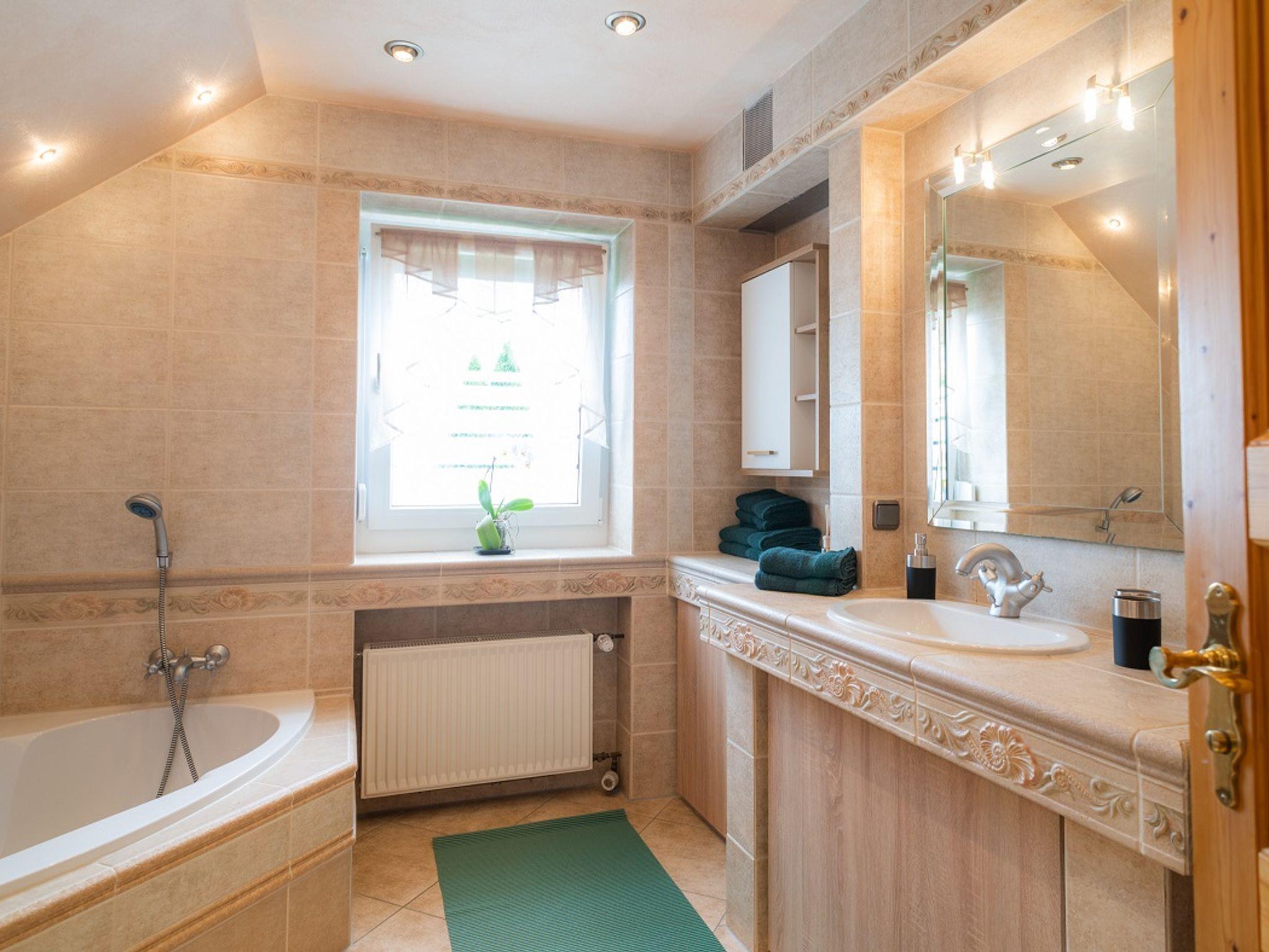 Die Ferienwohnung im 1.OG, erreichbar über eine Außentreppe, ist hell und freundlich eingerichtet. Das Schlafzimmer verfügt über ein Doppel- und ein Einzelbett. Das große Ecksofa kann zusätzlich als Schlafmöglichkeit ausgezogen werden. Das Bad ist mit einer großen Eckbadewanne mit Sitzecke, WC und einem großzügigen Waschplatz ausgestattet. Die nagelneue Küche mit E-Herd, Cerankochfeld, Kühlschrank, Mikrowelle, Kaffeekapselmaschine usw. gut bestückt. In der Küche befindet sich ein Esstisch mit Eckbank und 2 Stühlen, der ausreichend Platz bietet. Die Fenster im Wohnzimmer, Schlafzimmer und Bad haben ein Außenrollo. Das Schlafzimmer und Bad zusätzlich noch ein Insektenschutzgitter. Für die Kleinen gibt es einen Kinderhochstuhl und Spielsachen für verschiedene Altersgruppen sowie auf Anfrage ein Babybett und Wickeltisch.