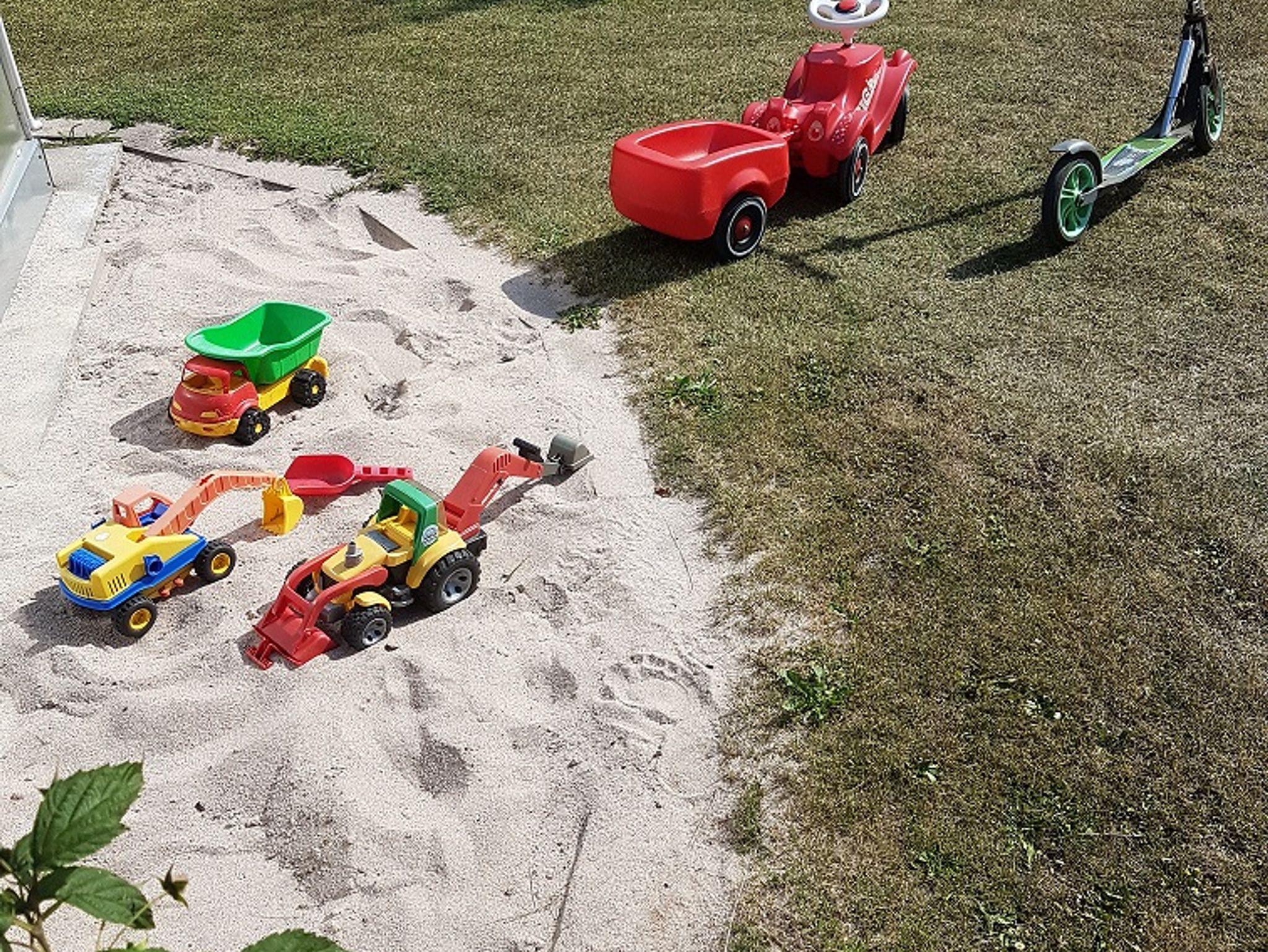 Die Ferienwohnung im 1. OG, erreichbar über eine Außentreppe, ist hell und freundlich eingerichtet. Das Schlafzimmer verfügt über 1 Doppelbett und 1 Einzelbett. Das große Ecksofa kann zusätzlich als Schlafmöglichkeit ausgezogen werden. Das Bad ist mit einer großen Eckbadewanne mit Sitzecke, WC und einem großzügigen Waschplatz ausgestattet. Die nagelneue Küche mit E-Herd und Cerankochfeld ist gut bestückt. In der Küche befindet sich ein Esstisch mit Eckbank und 2 Stühlen, der ausreichend Platz bietet. Die Fenster im Wohnzimmer, Schlafzimmer und Bad haben ein Außenrollo. Das Schlafzimmer und das Bad zusätzlich noch ein Insektenschutzgitter. Für die ganz Kleinen gibt es einen Hochstuhl und auf Anfrage ein Babybett und einen Wickeltisch. Für die etwas Größeren Gesellschaftsspiele und LEGO-DUPLO-Bausteine.