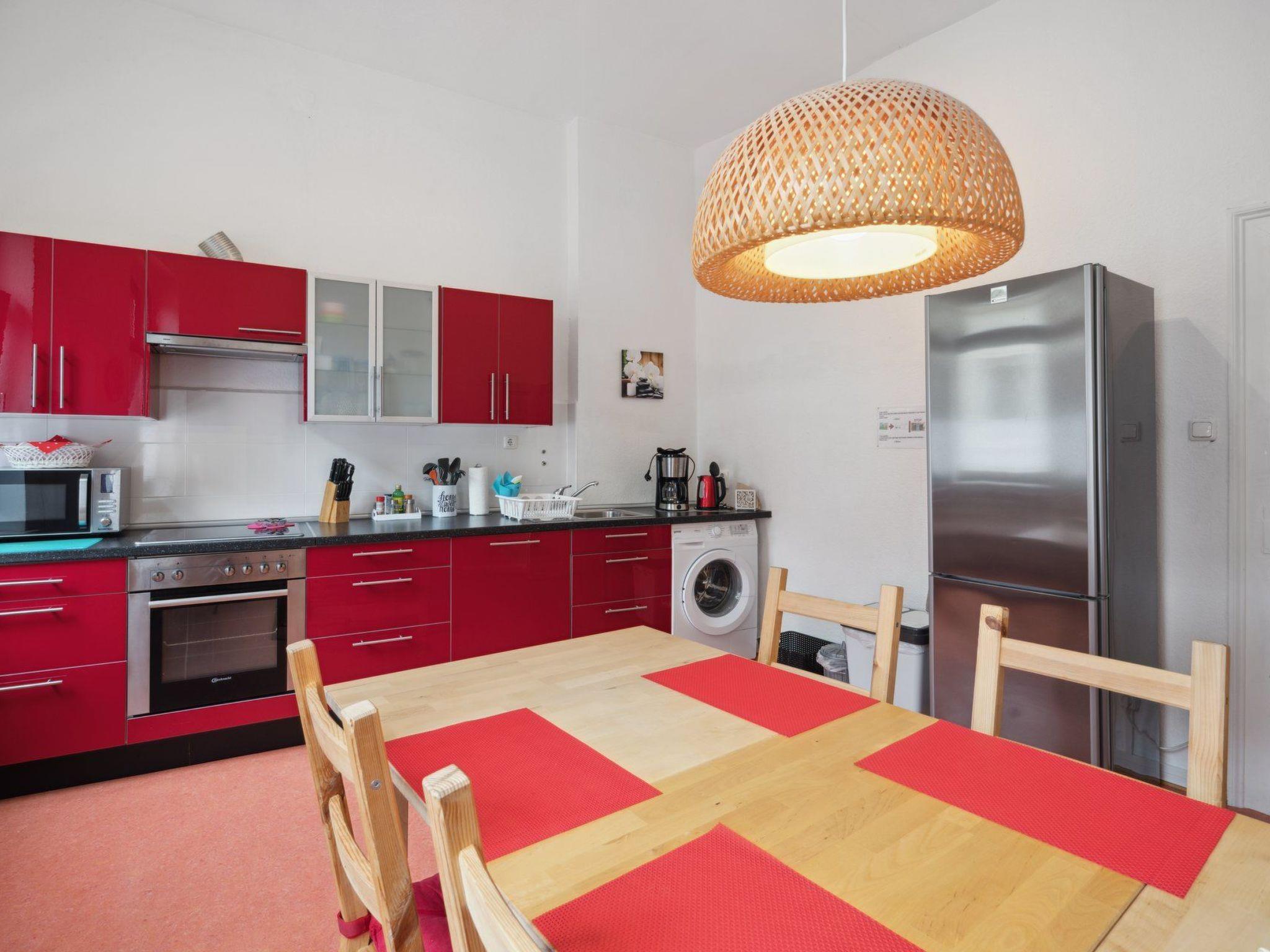 The modern high-gloss kitchen leaves nothing to be desired: Dishwasher, washing machine and extensive equipment ensure that you can feel completely at home.