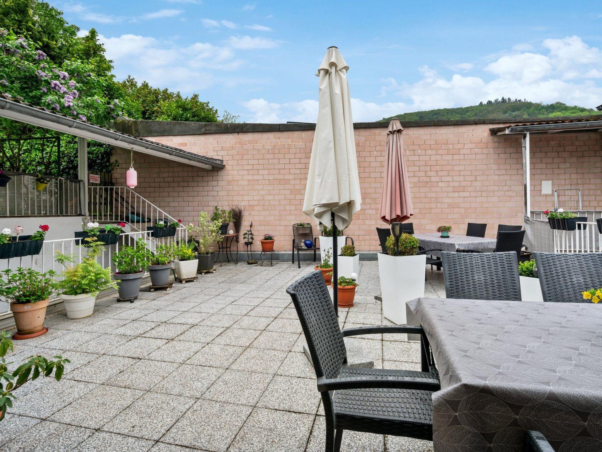 Our Mediterranean-style holiday flat is a place to arrive, take a deep breath and enjoy. The lovingly designed roof terrace, lushly planted and full of charm, invites you to spend balmy summer evenings with a glass of Moselle Riesling. It is shared with the guests of our second holiday flat - but each flat has its own separate seating area to ensure privacy and cosiness.