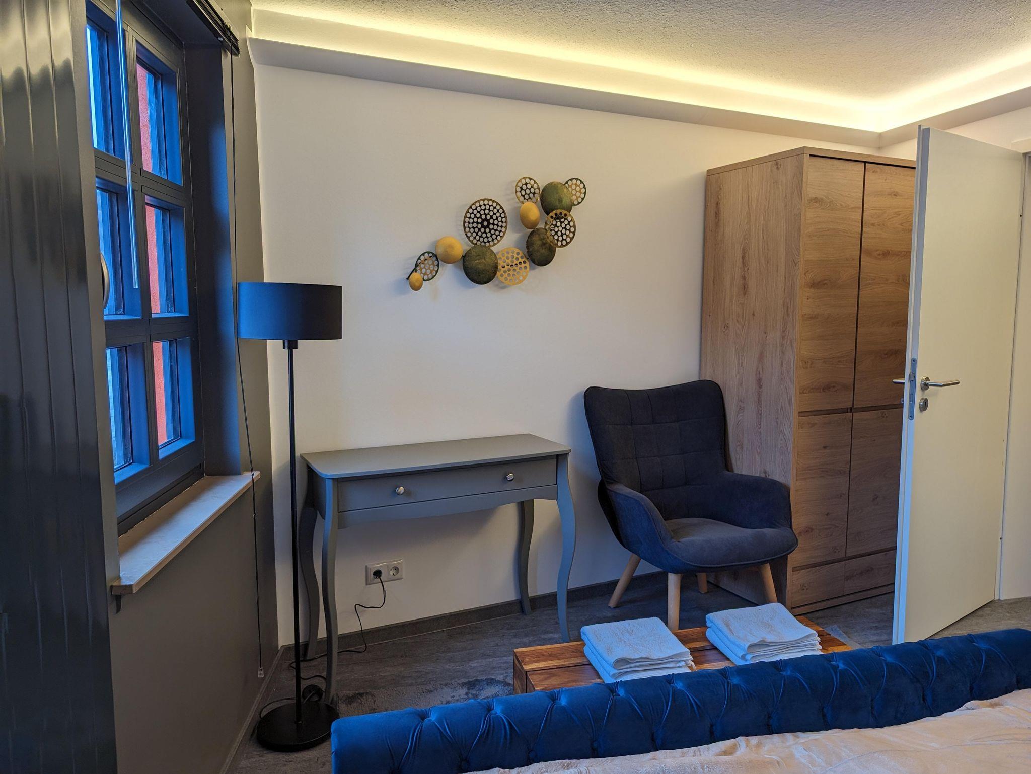 In den 3 oberen Etagen befindet sich eine Ferienwohnung mit 2 Räumen. Diese sind zwar klein aber liebevoll eingerichtet mit allem was das Urlauberherz begehrt. Schlaf- und Wohnzimmer / Küchenzeile / modernes Bad / WLAN / Smart-TV / Musikanlage