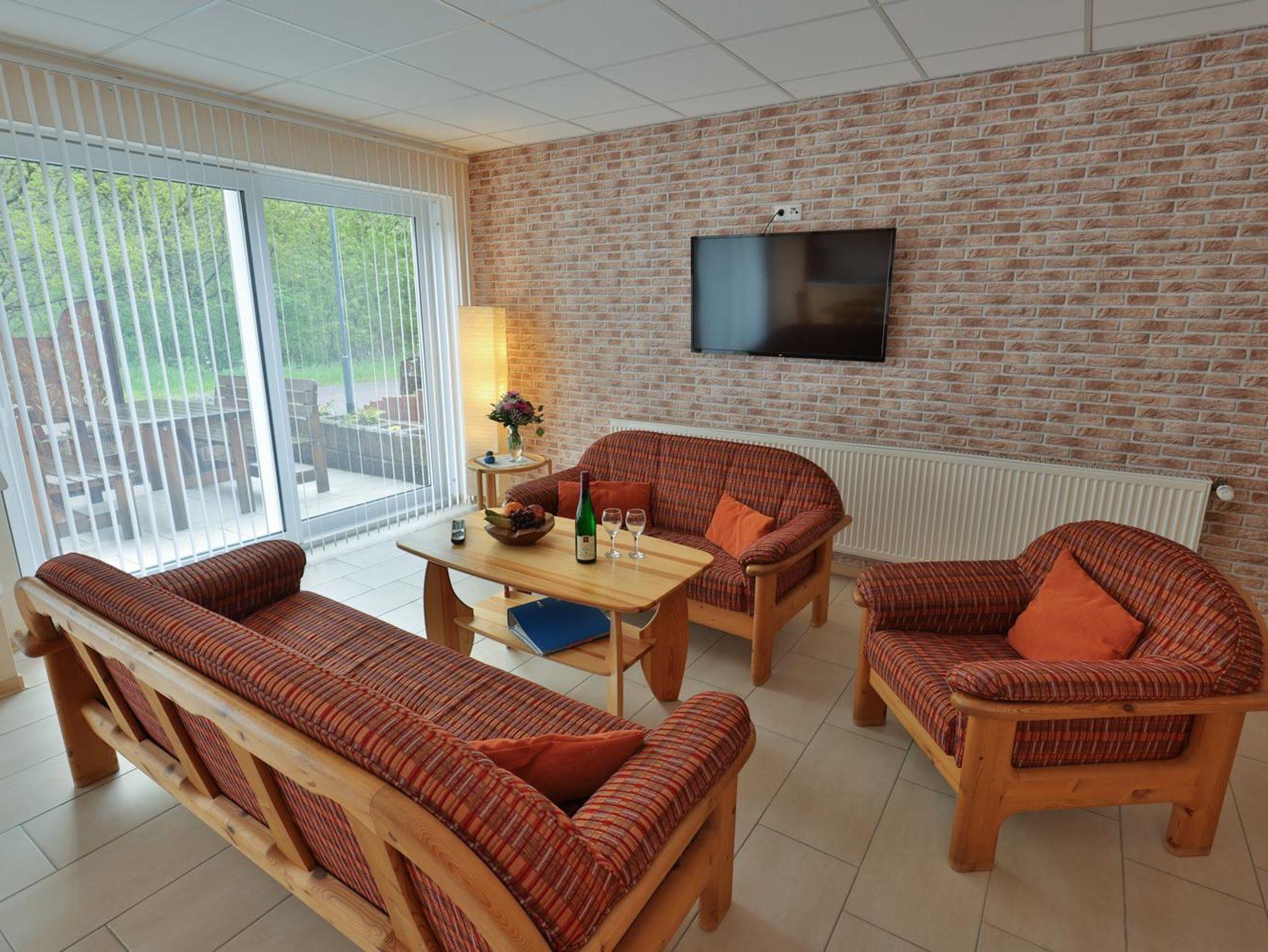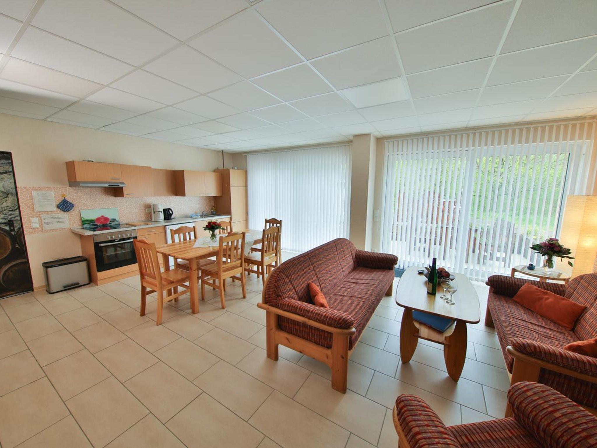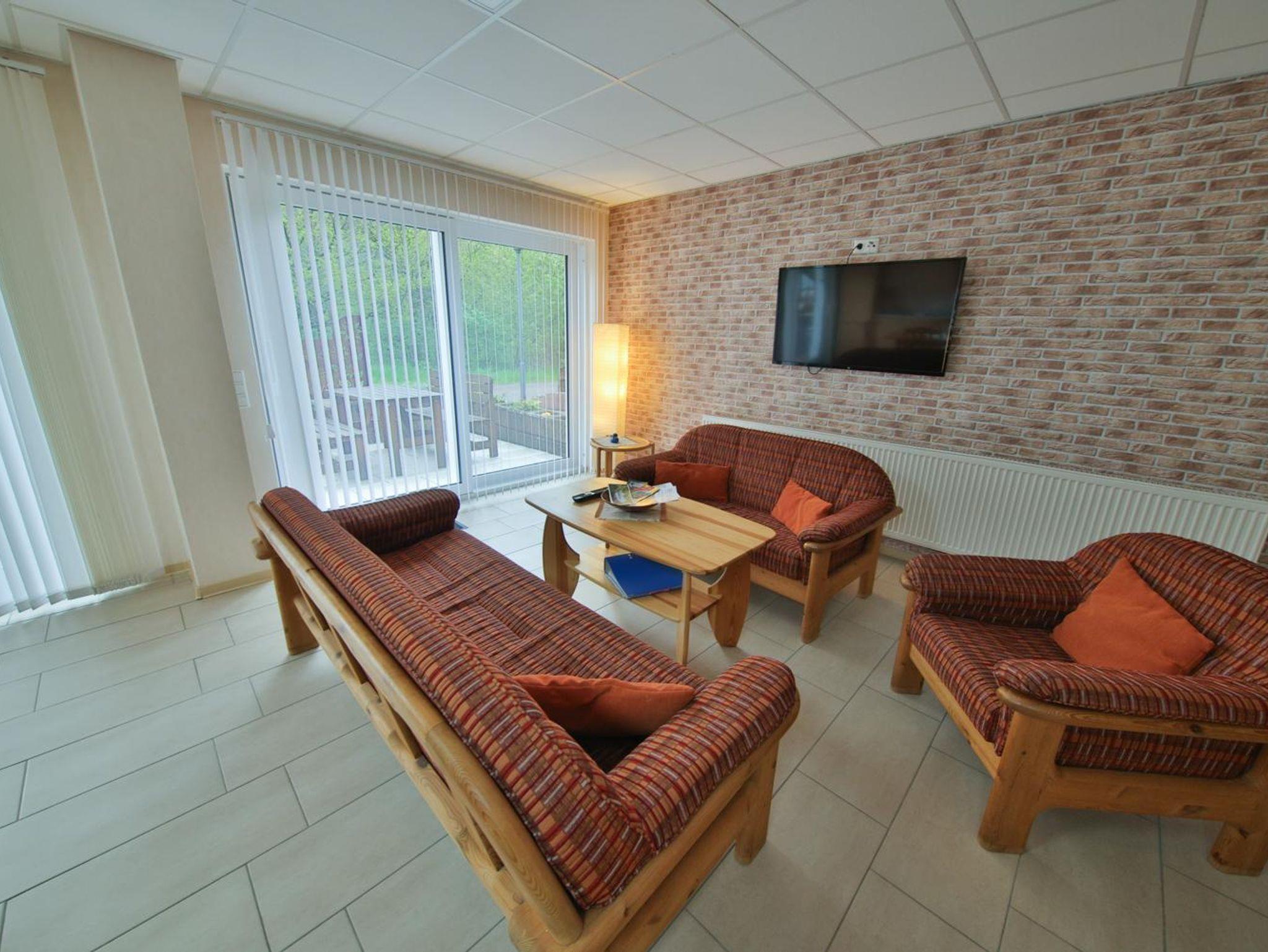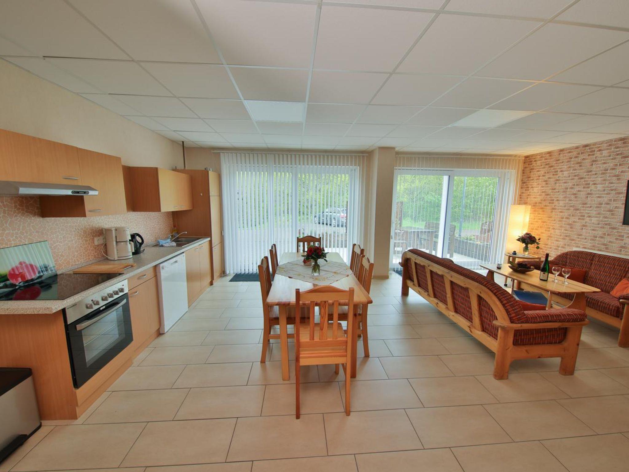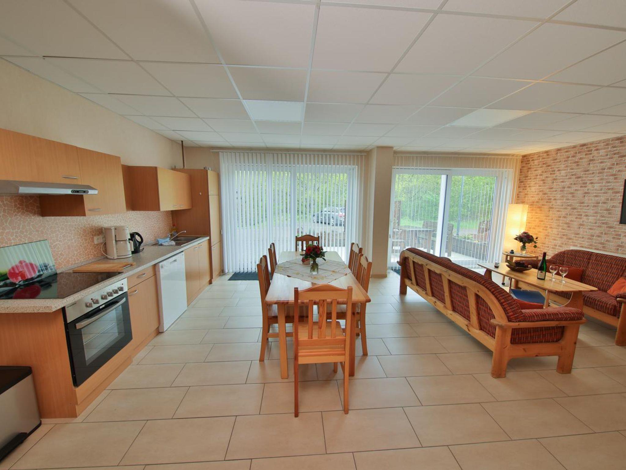 Größe der Wohnung ca. 108 qm 1 x Schlafzimmer (Doppelbett) 1 x Schlafzimmer (Hochbett mit 2 Betten) 1 x Schlafzimmer (2 Einzelbetten) 1 x Badezimmer mit Dusche und Badewanne pro Person 1 Handtuch und 1 Duschtuch Separate Toilette Küchenzeile mit 4 Ceran-Kochfeldern, Backofen, Spülmaschine, Mikrowelle, Wasserkocher, Eierkocher, Toaster, Kaffeemaschine und Esstisch Wohnzimmer mit großer Couchgarnitur, Stereoanlage und SAT/TV sonnige Terrasse mit Sitzgarnitur Die Ferienwohnung ist barrierefrei zu betreten