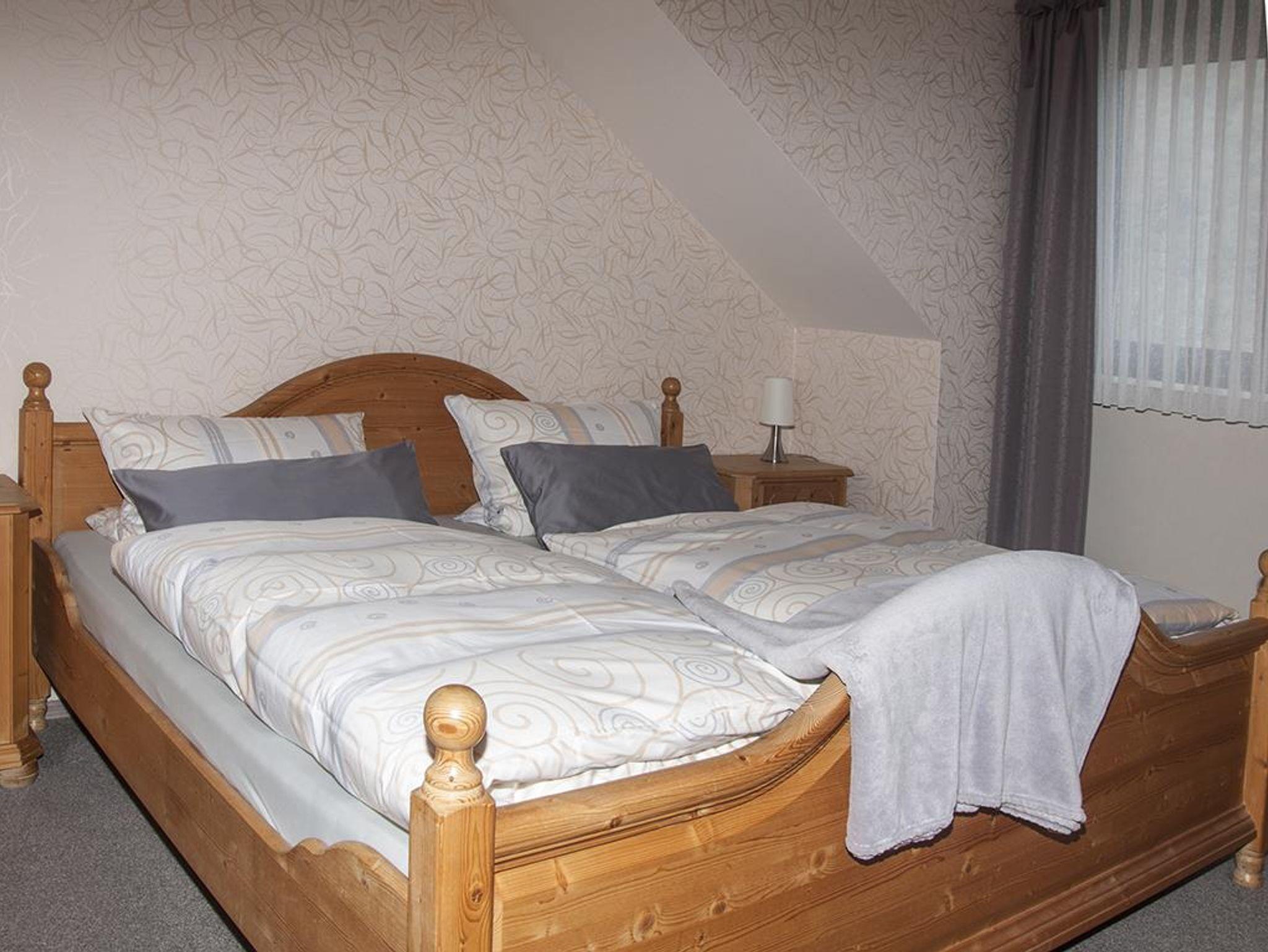 2 komfortable Ferienwohnungen (ca. 50qm) für 2-6 Pers. mit Farb-Kabel-TV, komplett eingerichteter Küche, gemütlichem Wohnraum und seperatem Schlafzimmer. Wäsche und Handtücher inklusive Brötchenservice Nähe Freizeitzentrum