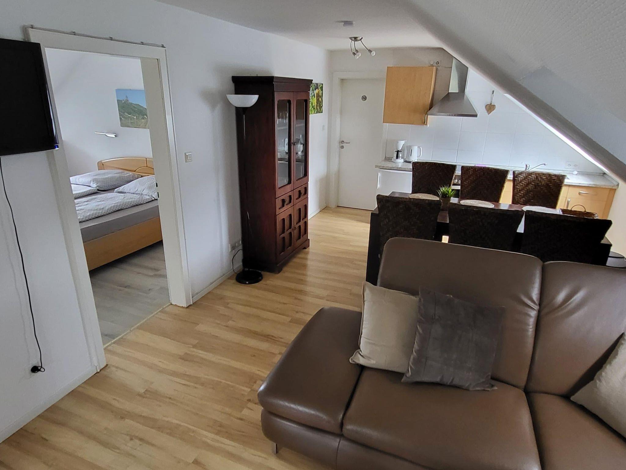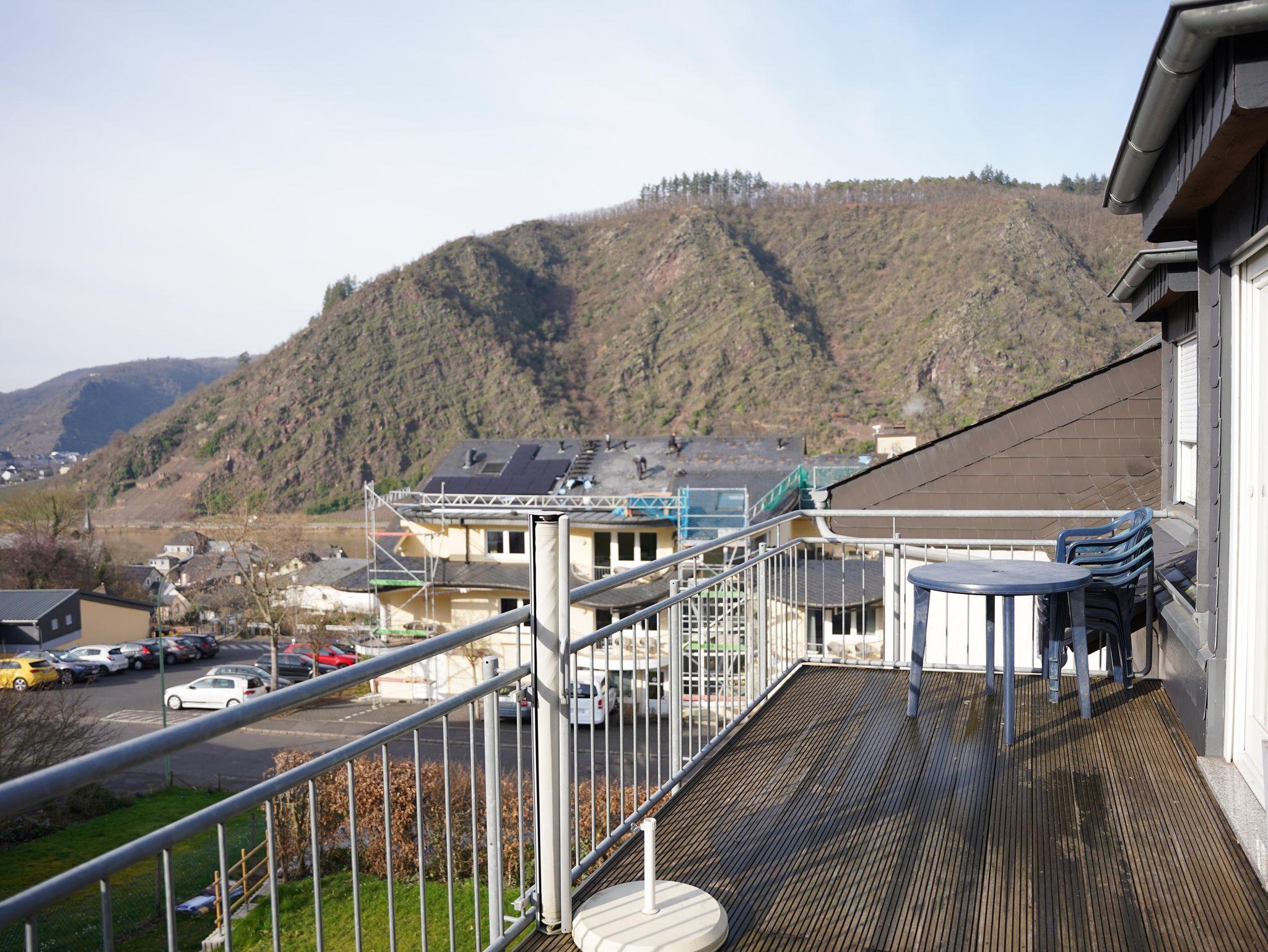 12 komfortable ***Ferienwohnungen, Wohn-Essraum mit komplett ausgestatteten Küchenzeilen (mit Spülmaschine), 1 , 2 oder 3 separate Schlafzimmer. Ruhige, idyllische Lage mit herrlichem Panoramablick auf Cochem und die Mosellandschaft, aber trotzdem stadtnah und optimaler Ausgangspunkt für Wanderungen im nahe gelegenen Wald. Freizeitraum mit Tischkicker, Billard und Tischtennis sowie eine Sauna.