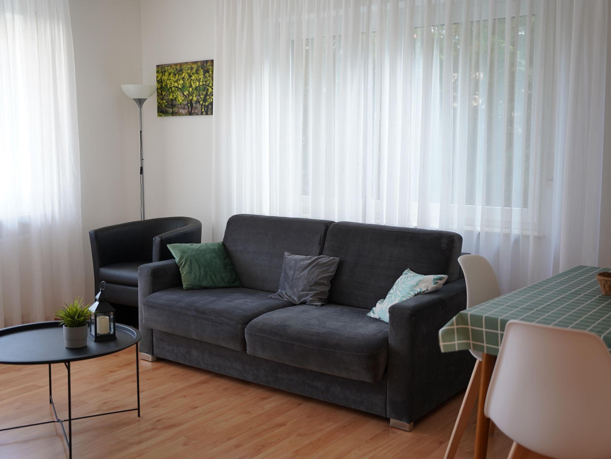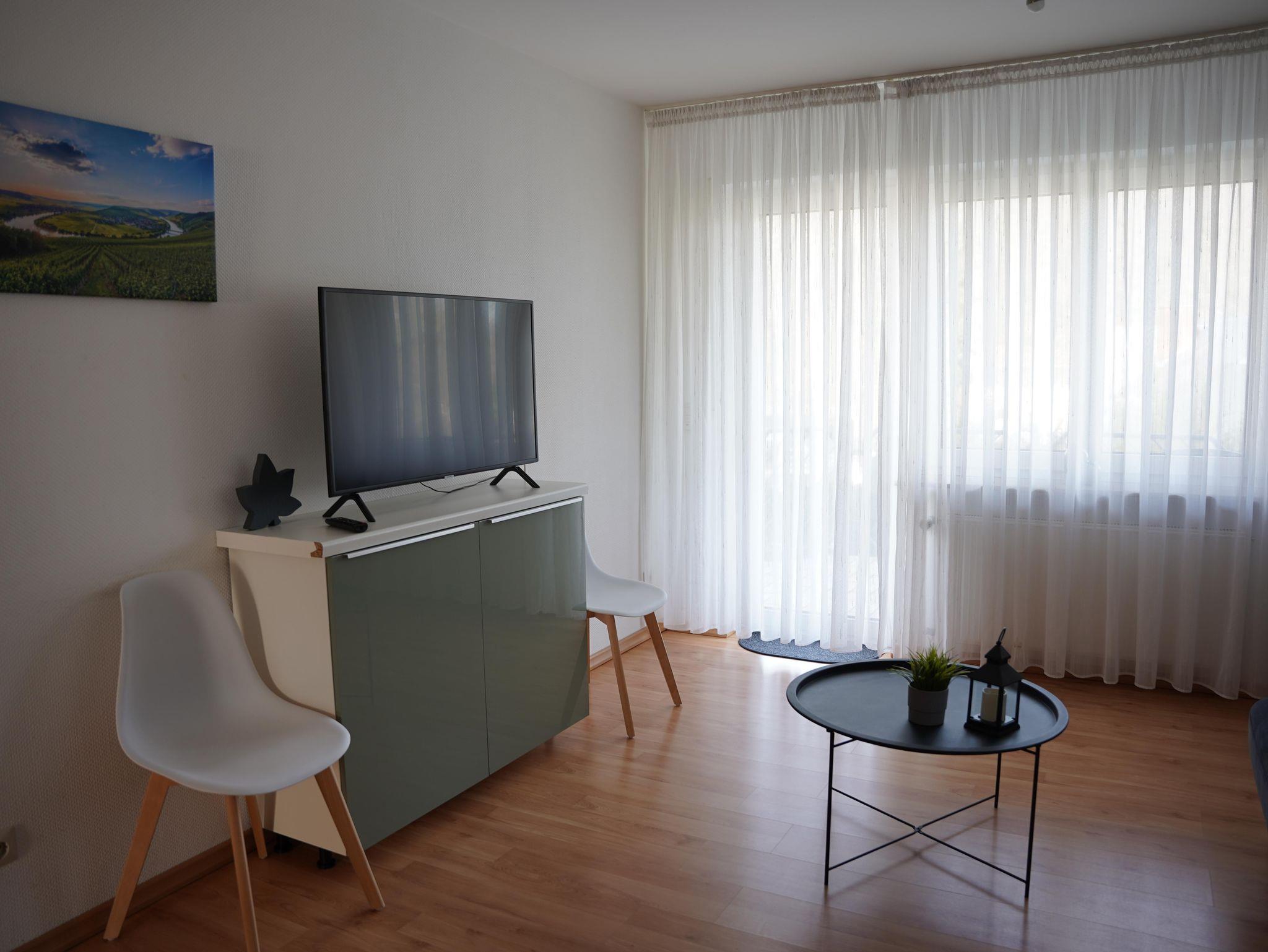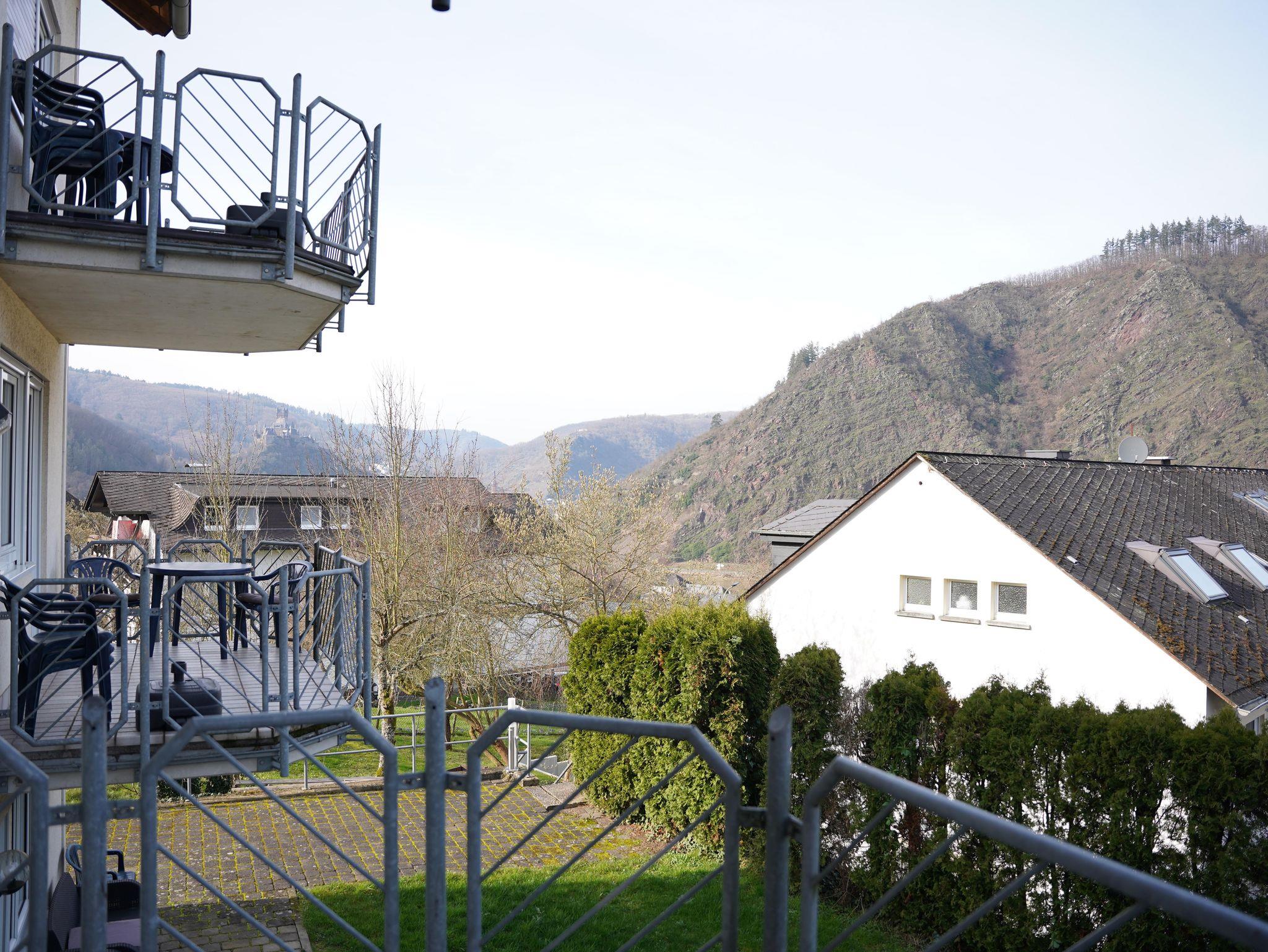 12 komfortable ***Ferienwohnungen, Wohn-Essraum mit komplett ausgestatteten Küchenzeilen (mit Spülmaschine), 1 , 2 oder 3 separate Schlafzimmer. Ruhige, idyllische Lage mit herrlichem Panoramablick auf Cochem und die Mosellandschaft, aber trotzdem stadtnah und optimaler Ausgangspunkt für Wanderungen im nahe gelegenen Wald. Freizeitraum mit Tischkicker, Billard und Tischtennis sowie eine Sauna.