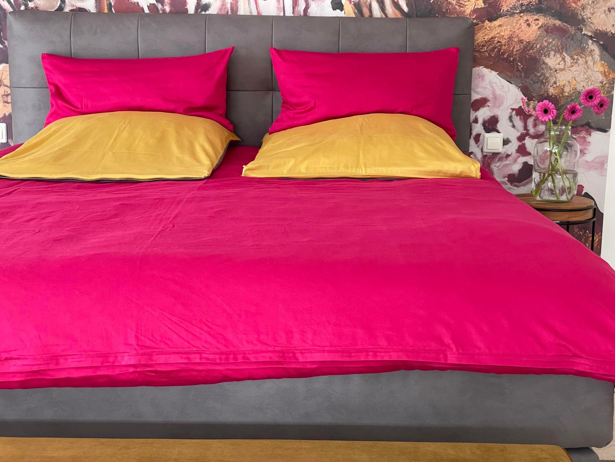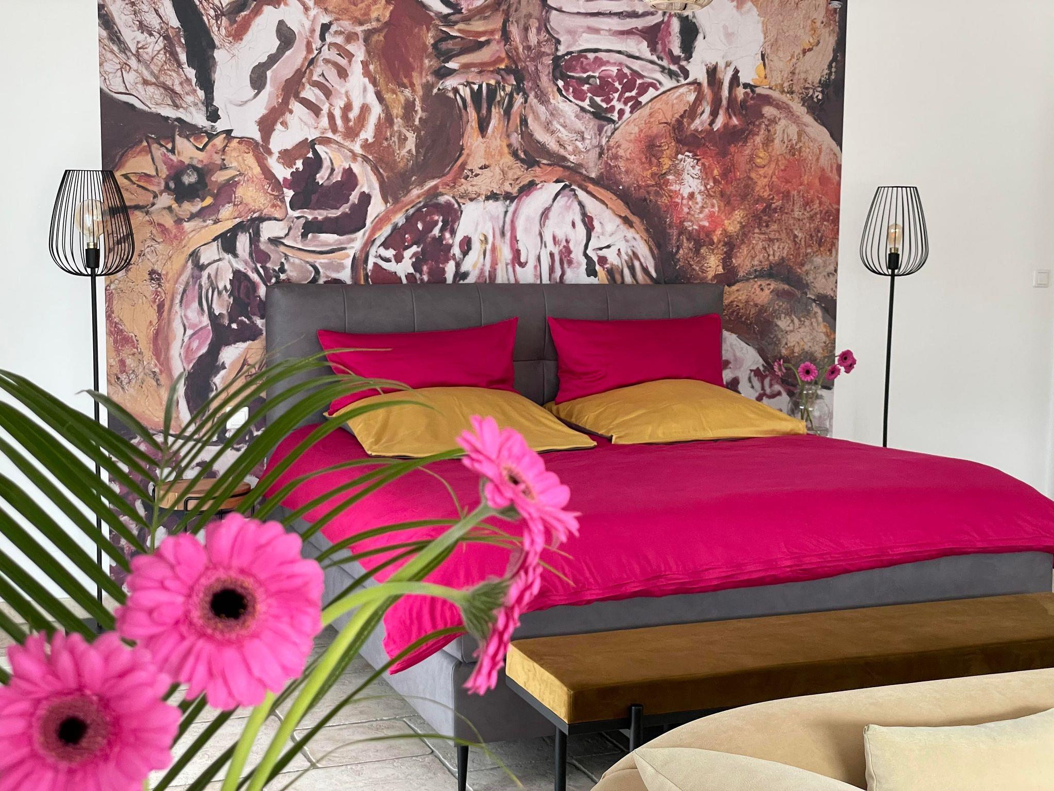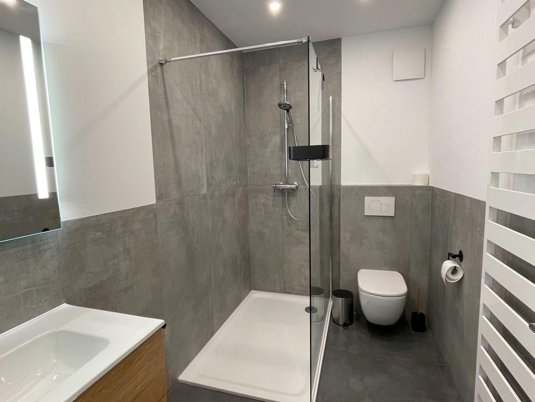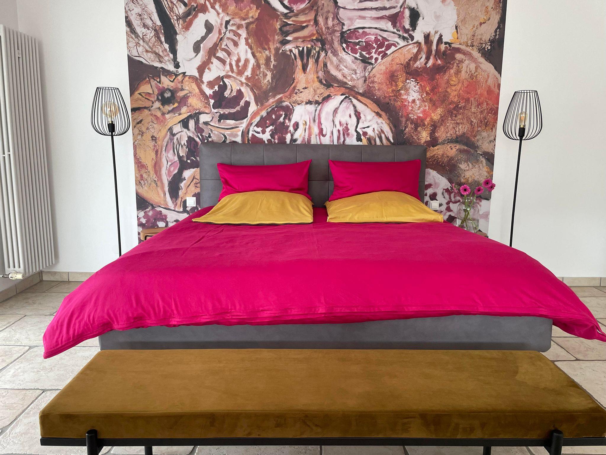 Die neu eingerichtete 70 qm Ferienwohnung besteht aus einem großen Wohn-/Schlafraum mit gemütlichem Kamin, einer voll ausgestatteten Küche und Badezimmer mit Dusche/WC. Direkt vor der Ferienwohnung befindet sich eine 100 m² große Freiterasse mit Gartenmöbeln zur alleinigen Nutzung.