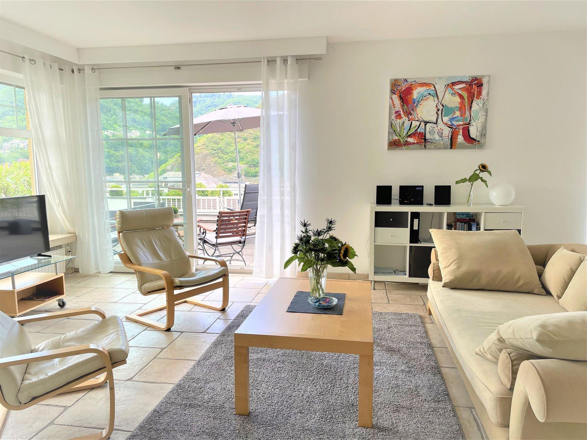 Unser Haus liegt auf der Sonnenseite in ruhiger, zentraler Lage mit großer Sonnenterasse und herrlichem Blick auf Burg, Stadt und Mosel, nur wenige Schritte von der historischen Altstadt entfernt. Alle Sehenswürdigkeiten sind schnell und bequem fußläufig zu erreichen. In direkter Umgebung finden Sie eine große Auswahl an Freizeitangeboten. Das Freizeitzentrum, ein Einkaufscenter mit Lebensmitteldiscounter, viele Restaurants und Cafés sind nur wenige Minuten von der Ferienwohnung entfernt.