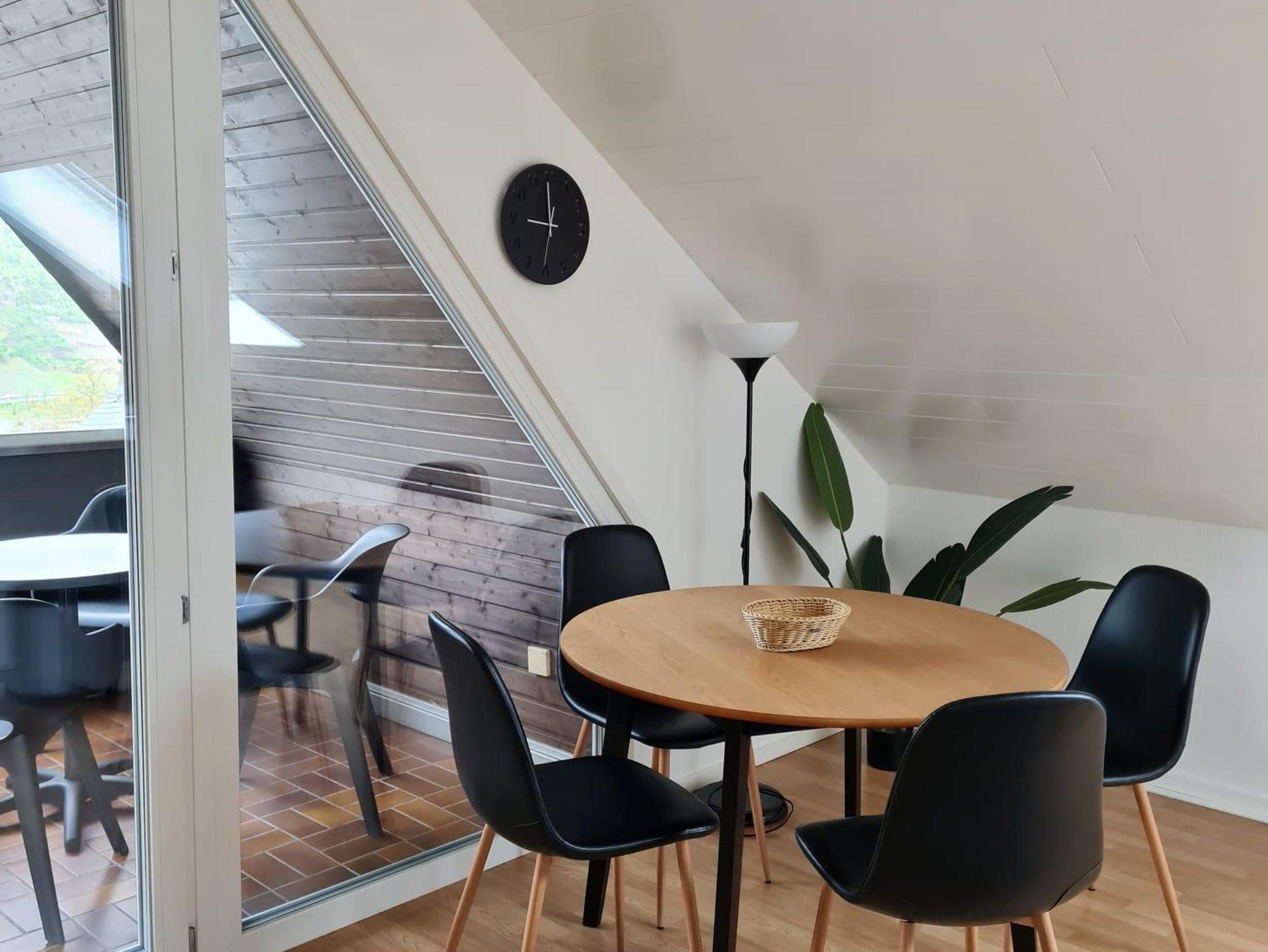 12 komfortable ***Ferienwohnungen, Wohn-Essraum mit komplett ausgestatteten Küchenzeilen (mit Spülmaschine), 1 , 2 oder 3 separate Schlafzimmer. Ruhige, idyllische Lage mit herrlichem Panoramablick auf Cochem und die Mosellandschaft, aber trotzdem stadtnah und optimaler Ausgangspunkt für Wanderungen im nahe gelegenen Wald. Freizeitraum mit Tischkicker, Billard und Tischtennis sowie eine Sauna.