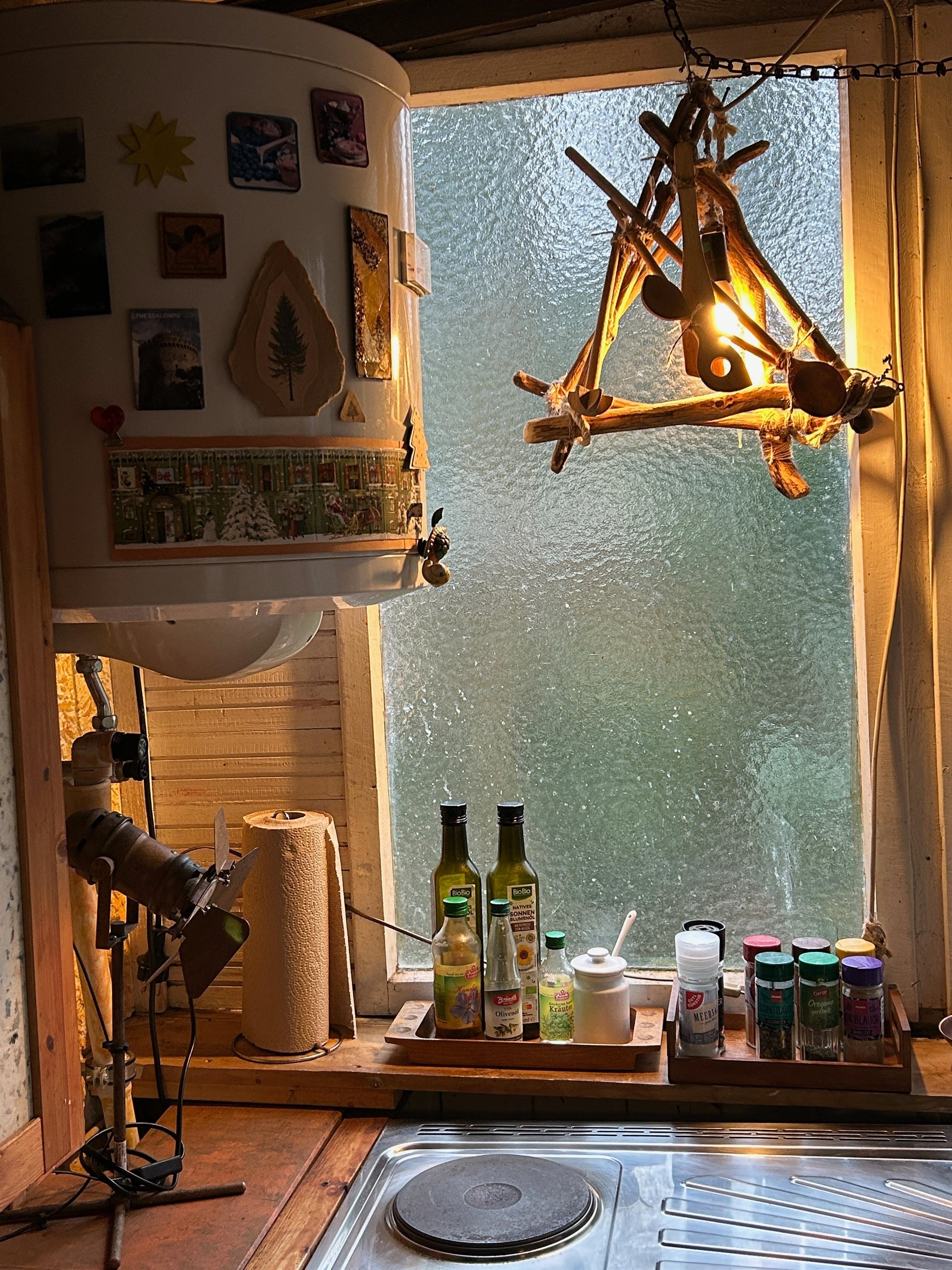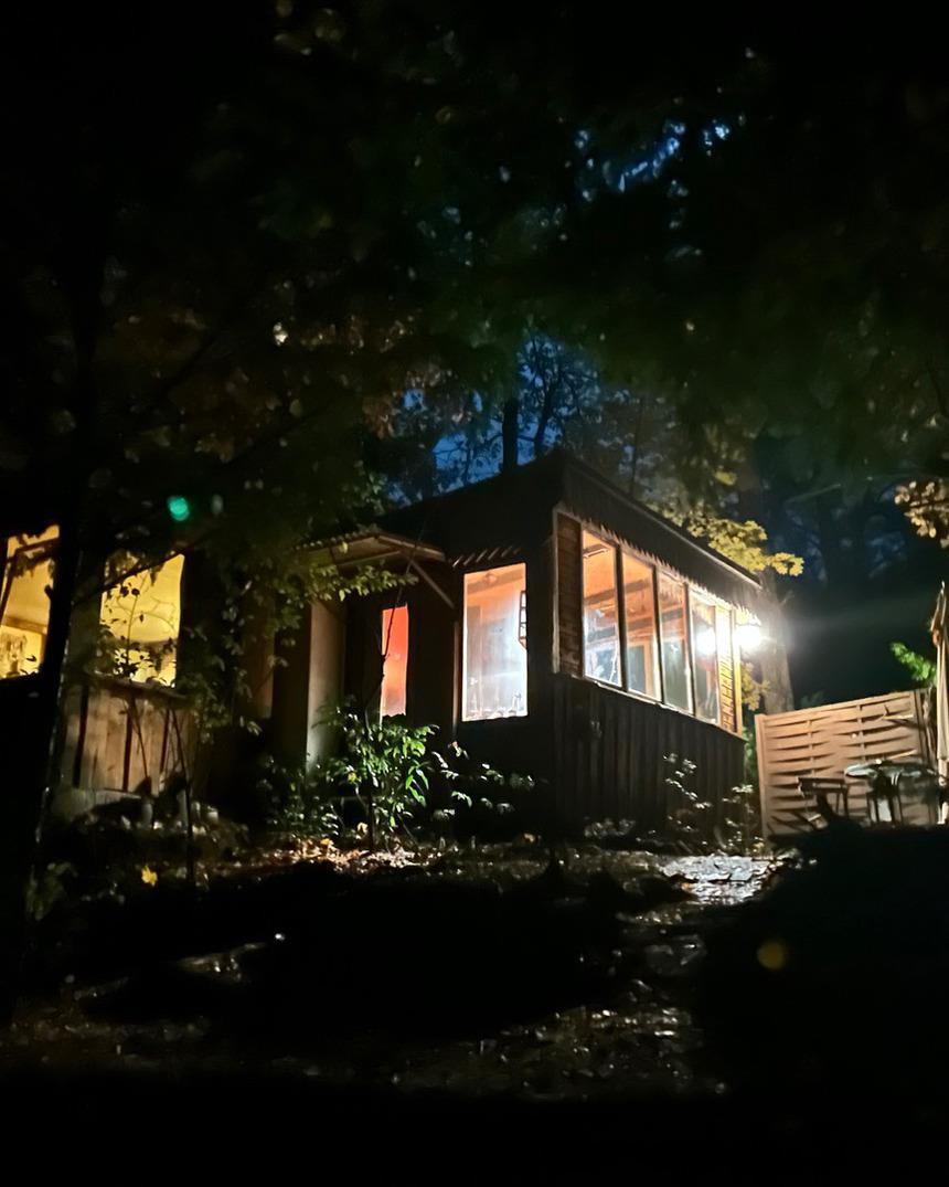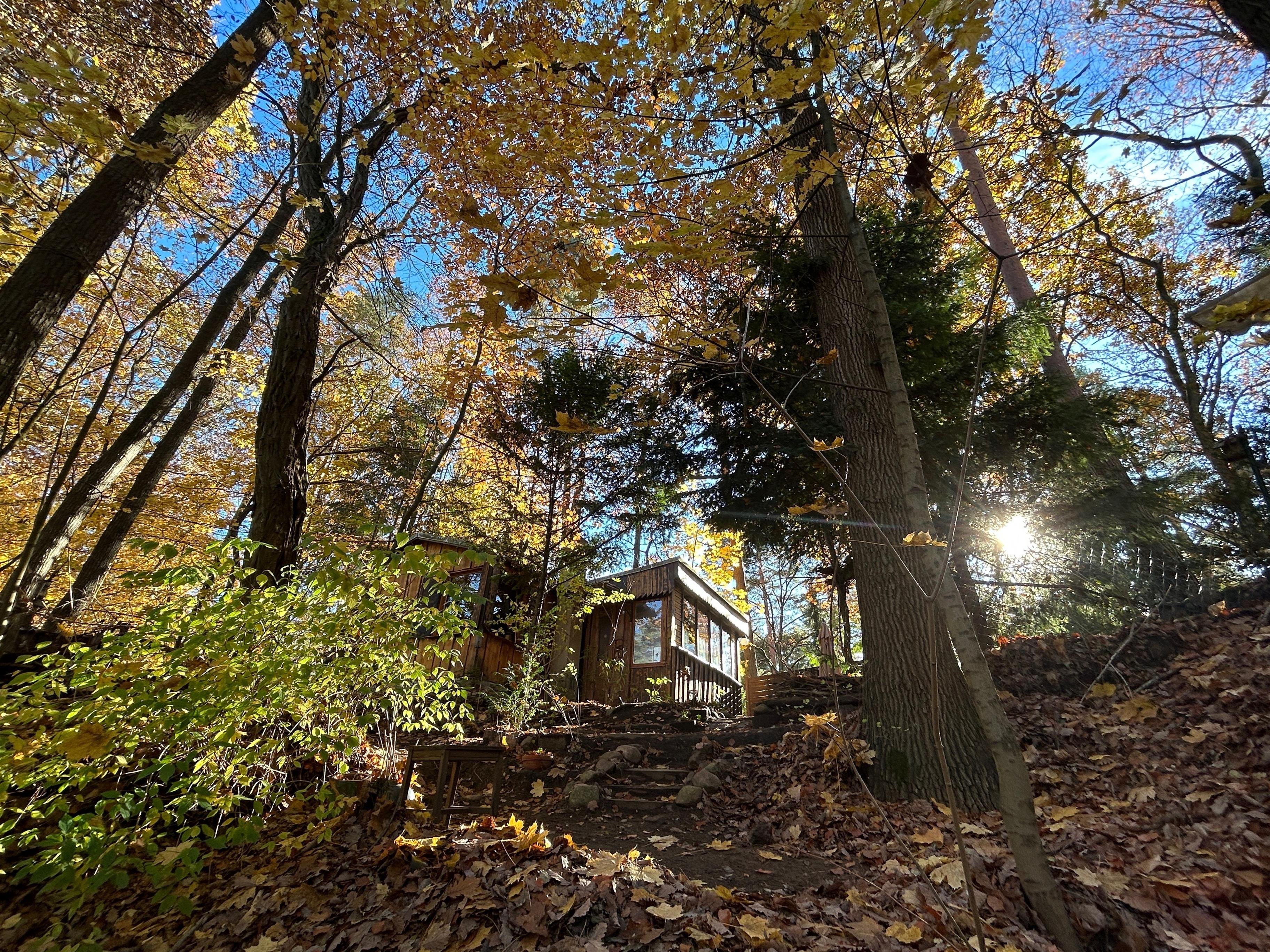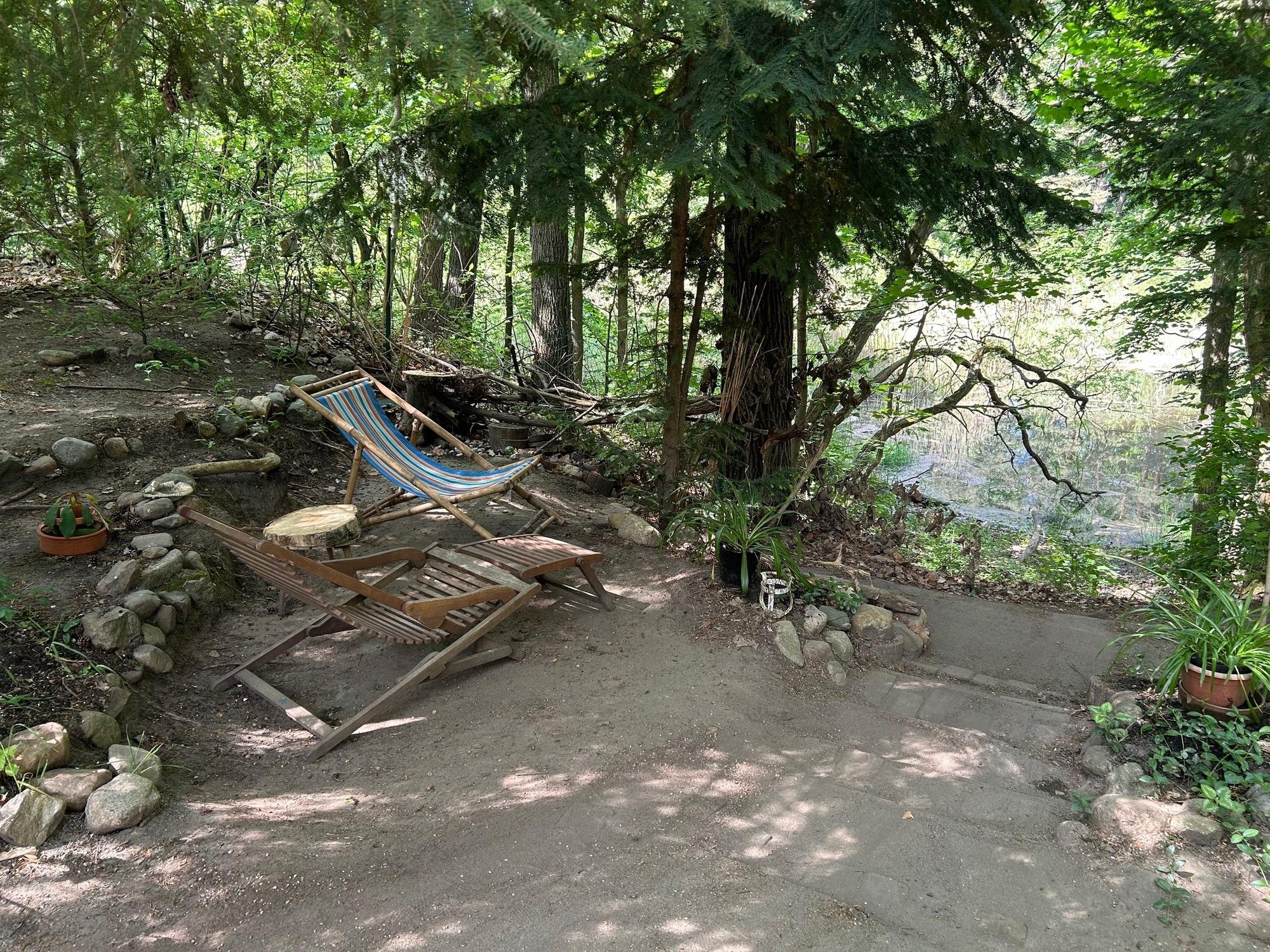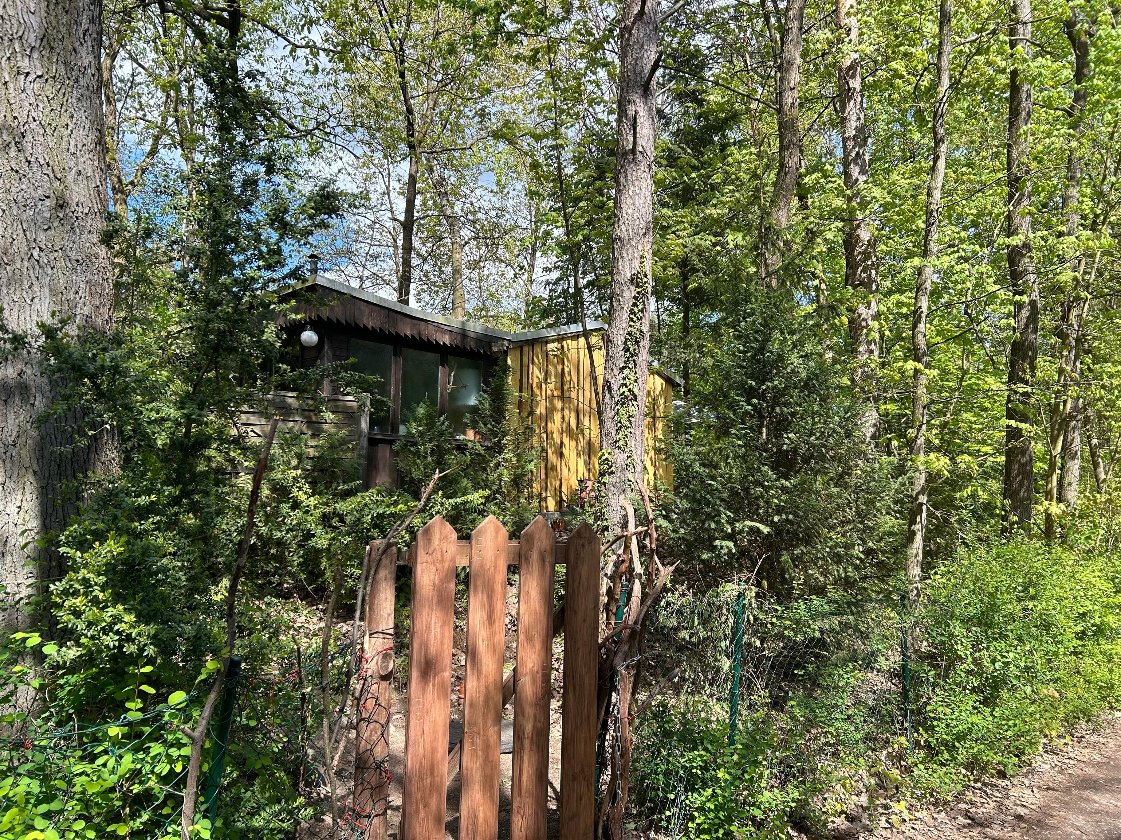 Das Grundstück befindet sich im Wald - direkt an einem kleinen See. Der Bungalow bietet ein geschmackvoll eingerichtetes Wohnzimmer mit Kamin und ein kleines Zimmer zum Schlafen.