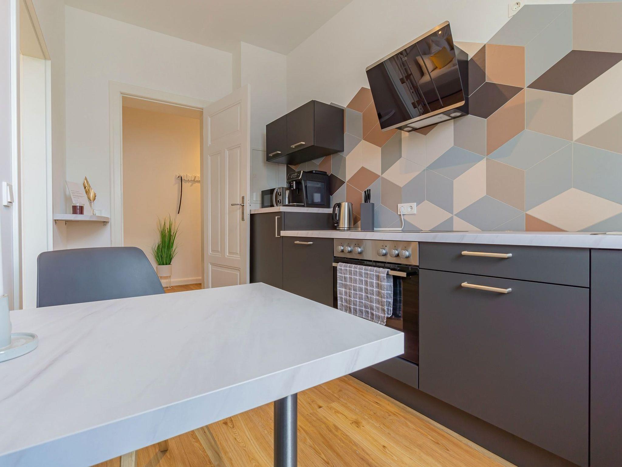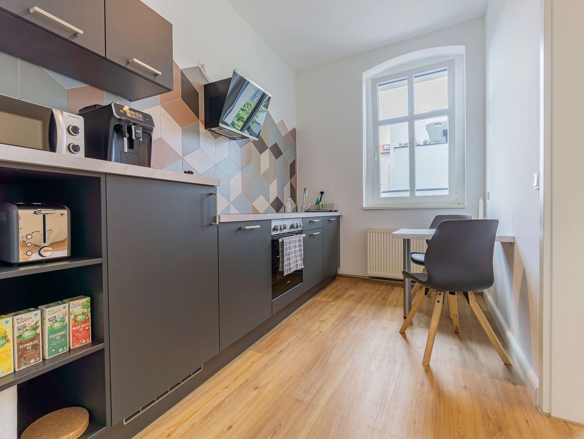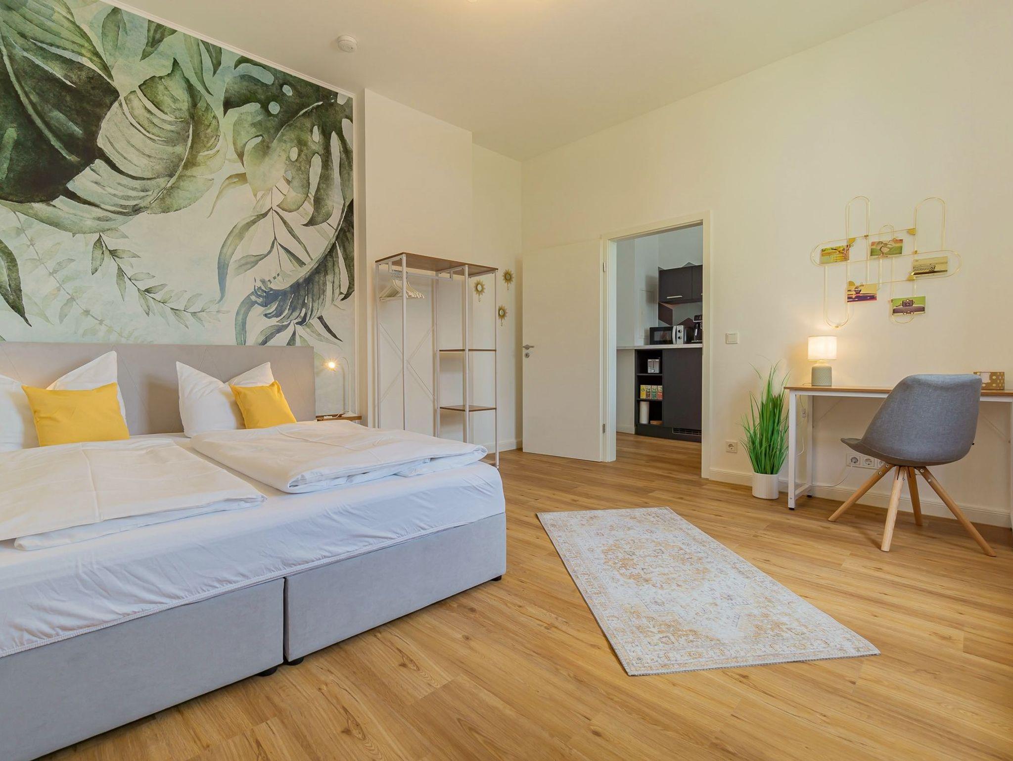 Das Apartment wurde sorgfältig eingerichtet und ausgestattet, um Ihnen ein angenehmes Zuhause auf Zeit zu bieten. Mit einer Größe von 40m² bietet das Apartment genügend Platz für bis zu 2 Personen. Hier finden Sie eine voll ausgestattete Küche mit Kaffeevollautomat und einer Auswahl an Tees, damit Sie entspannt in den Tag starten und einen Schreibtisch, an dem Sie bequem arbeiten oder lernen können. Außerdem haben Sie Zugang zu Netflix, um sich nach einem anstrengenden Tag zu entspannen.