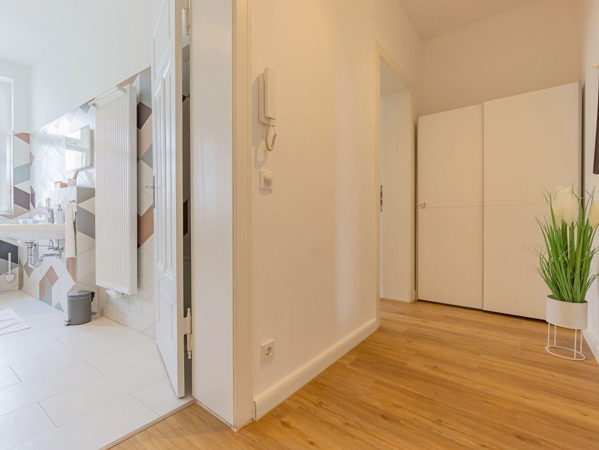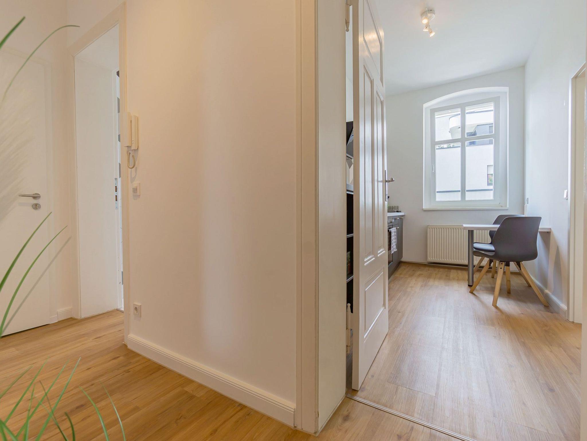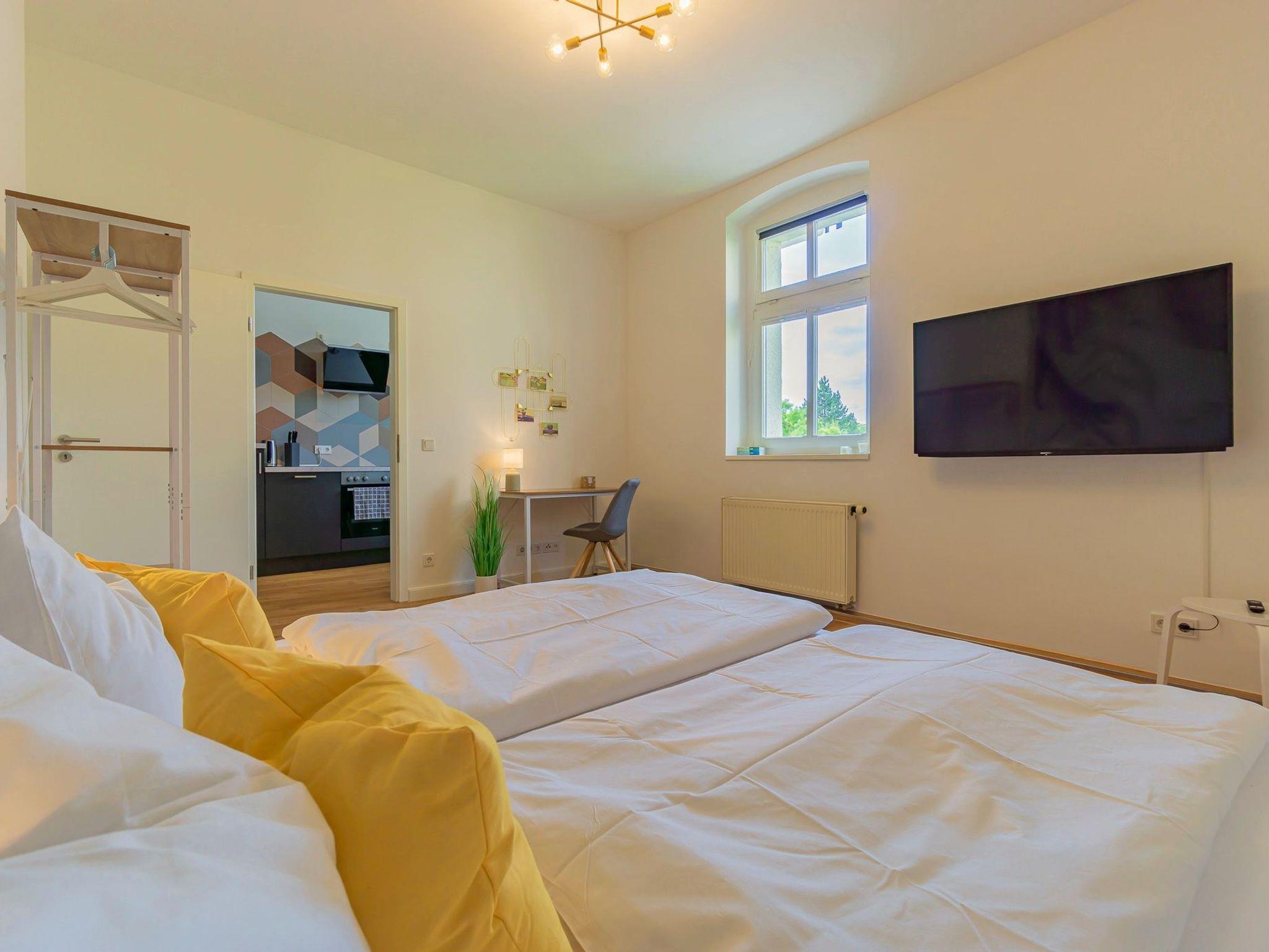 Das Apartment wurde sorgfältig eingerichtet und ausgestattet, um Ihnen ein angenehmes Zuhause auf Zeit zu bieten. Mit einer Größe von 40m² bietet das Apartment genügend Platz für bis zu 2 Personen. Hier finden Sie eine voll ausgestattete Küche mit Kaffeevollautomat und einer Auswahl an Tees, damit Sie entspannt in den Tag starten und einen Schreibtisch, an dem Sie bequem arbeiten oder lernen können. Außerdem haben Sie Zugang zu Netflix, um sich nach einem anstrengenden Tag zu entspannen.