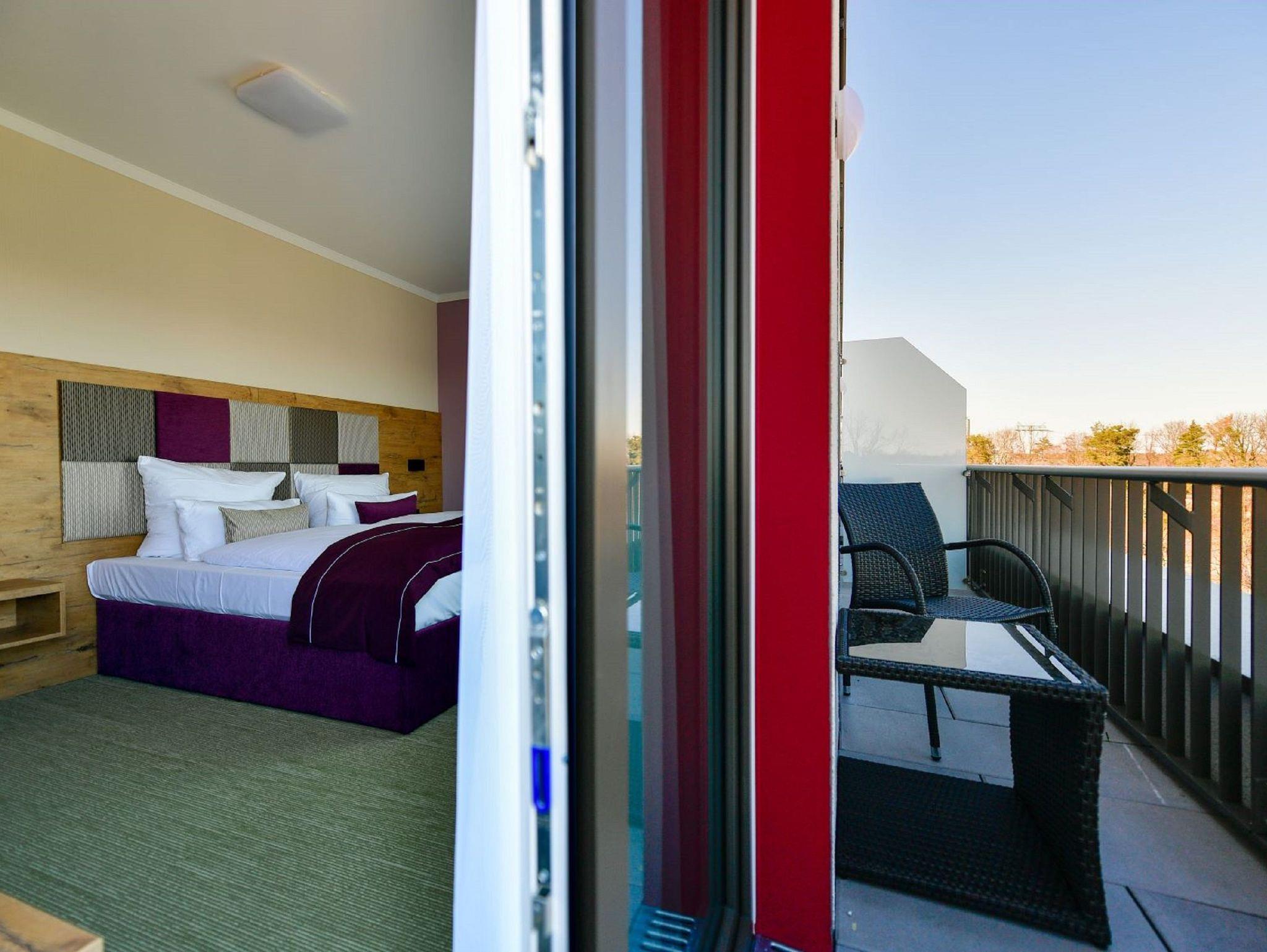 Boxspringbetten mit neuen Matratzen von 30 oder 45 cm Höhe. Jedes Zimmer verfügt über eine zusätzliche Sitzecke und bietet mit 32 qm ausreichend Platz. Alle Zimmer verfügen über eine Klimatisierung und Fußbodenheizung außerdem bietet dieses Zimmer einen Balkon.