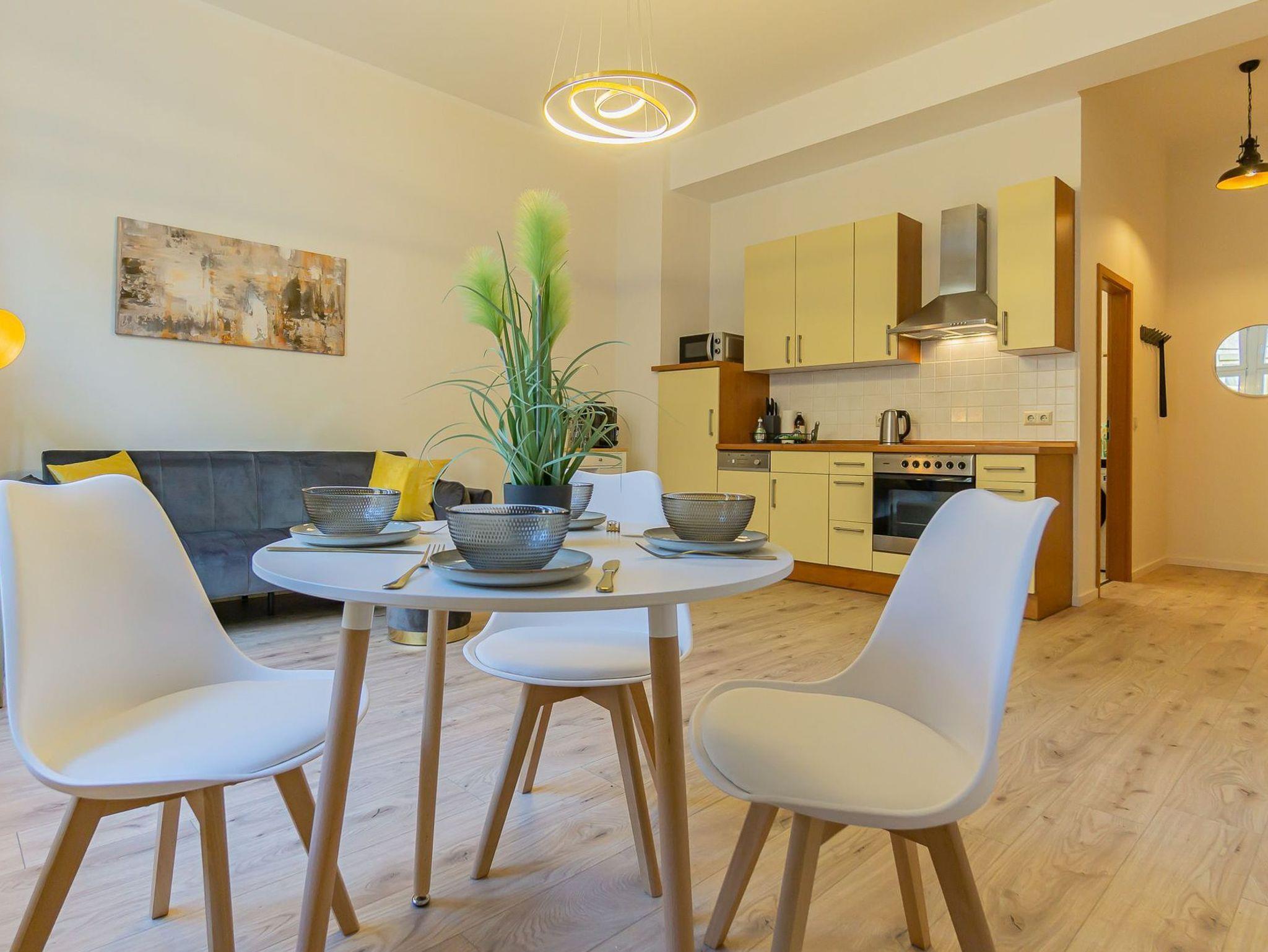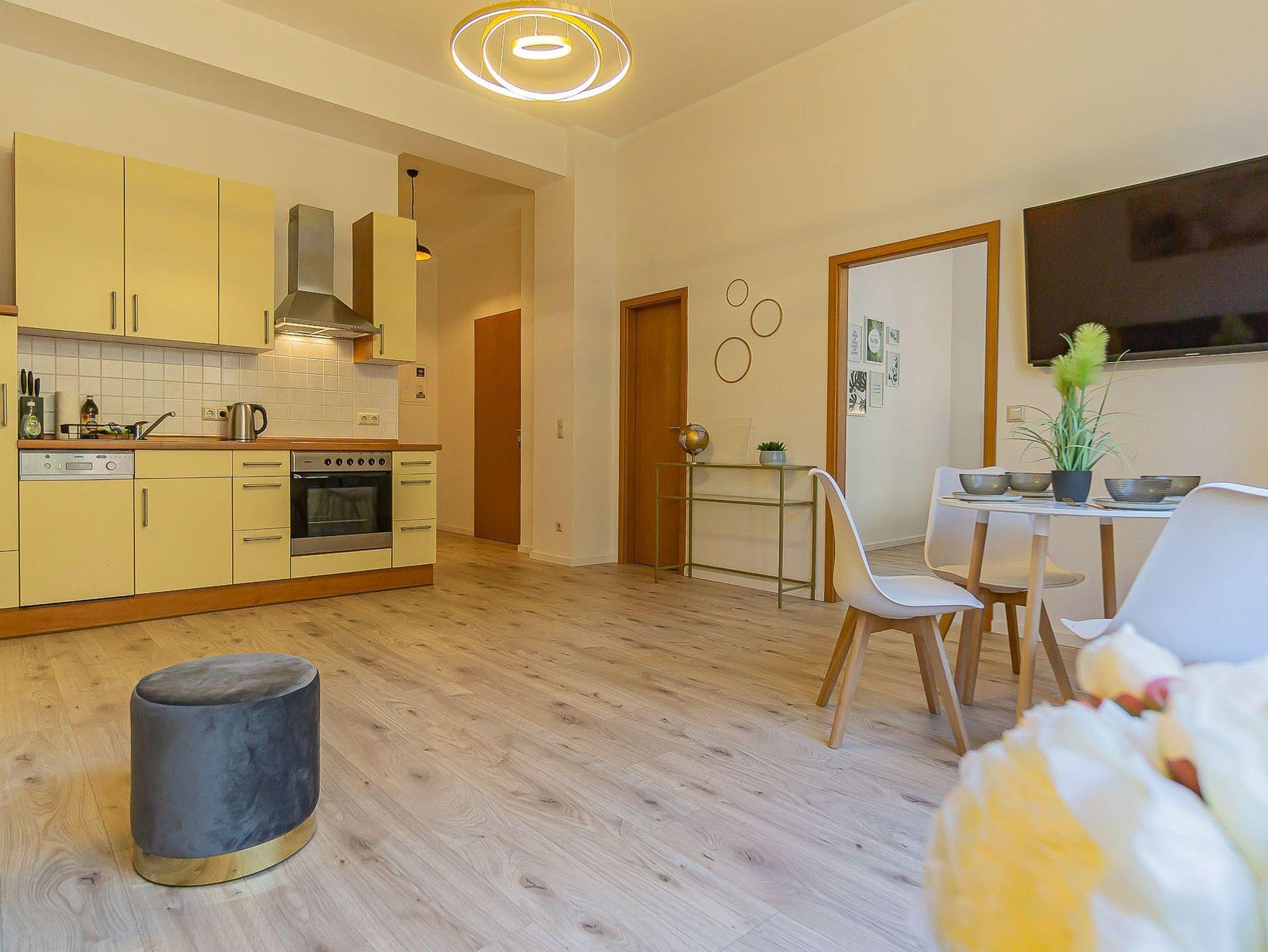 Dieses stilvolle Altbau-Apartment im 1. OG befindet sich direkt am Altmarkt und ist somit der perfekten Ausgangspunkt für Unternehmungen in Cottbus.