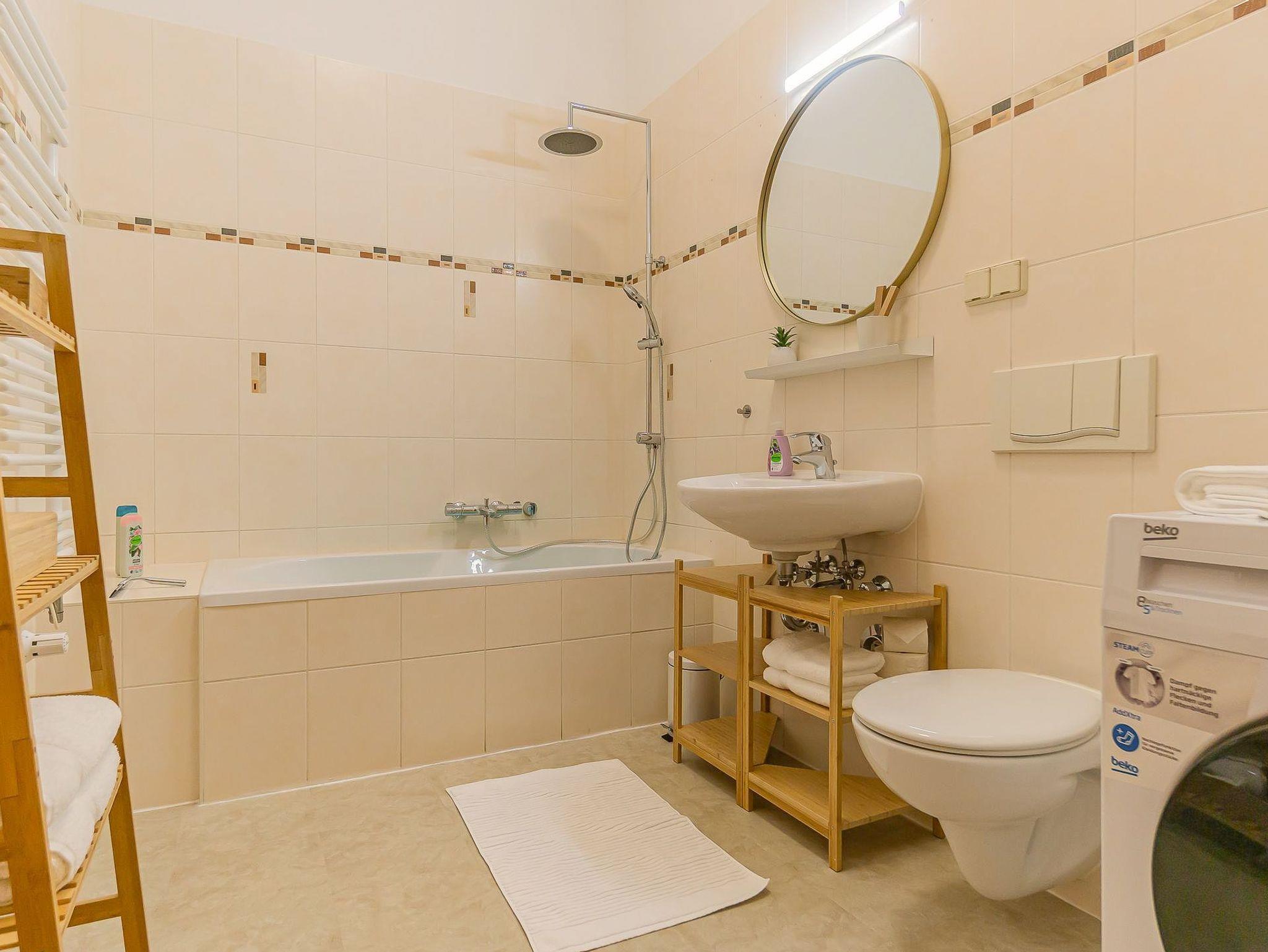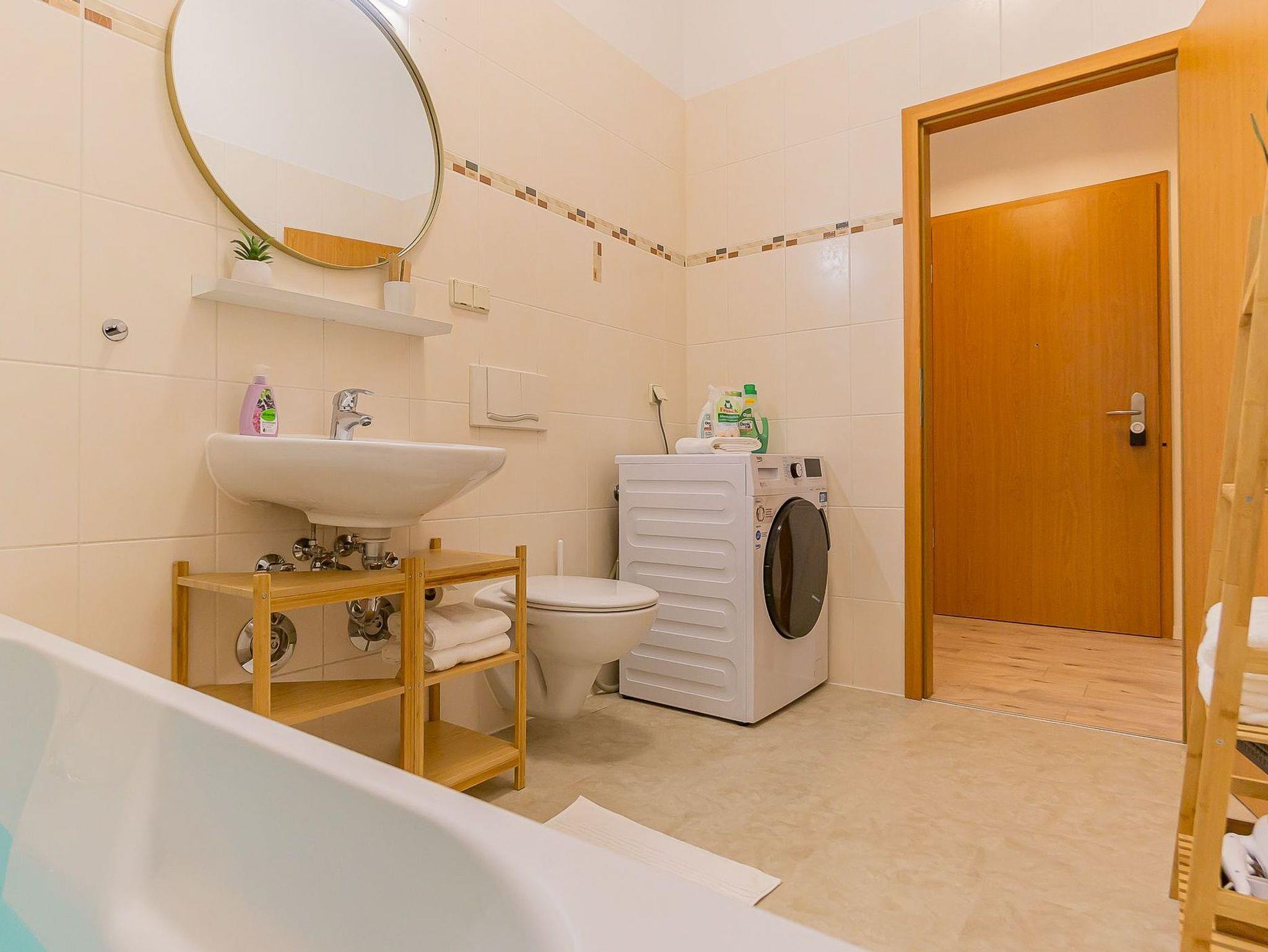 - Bad mit Badewanne und Waschmaschine + Trockner