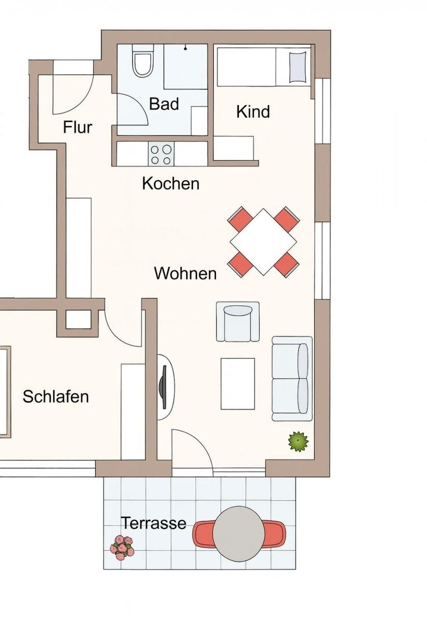 3-Zimmer-Wohnung (ca. 50 qm) mit zwei Schlafzimmern