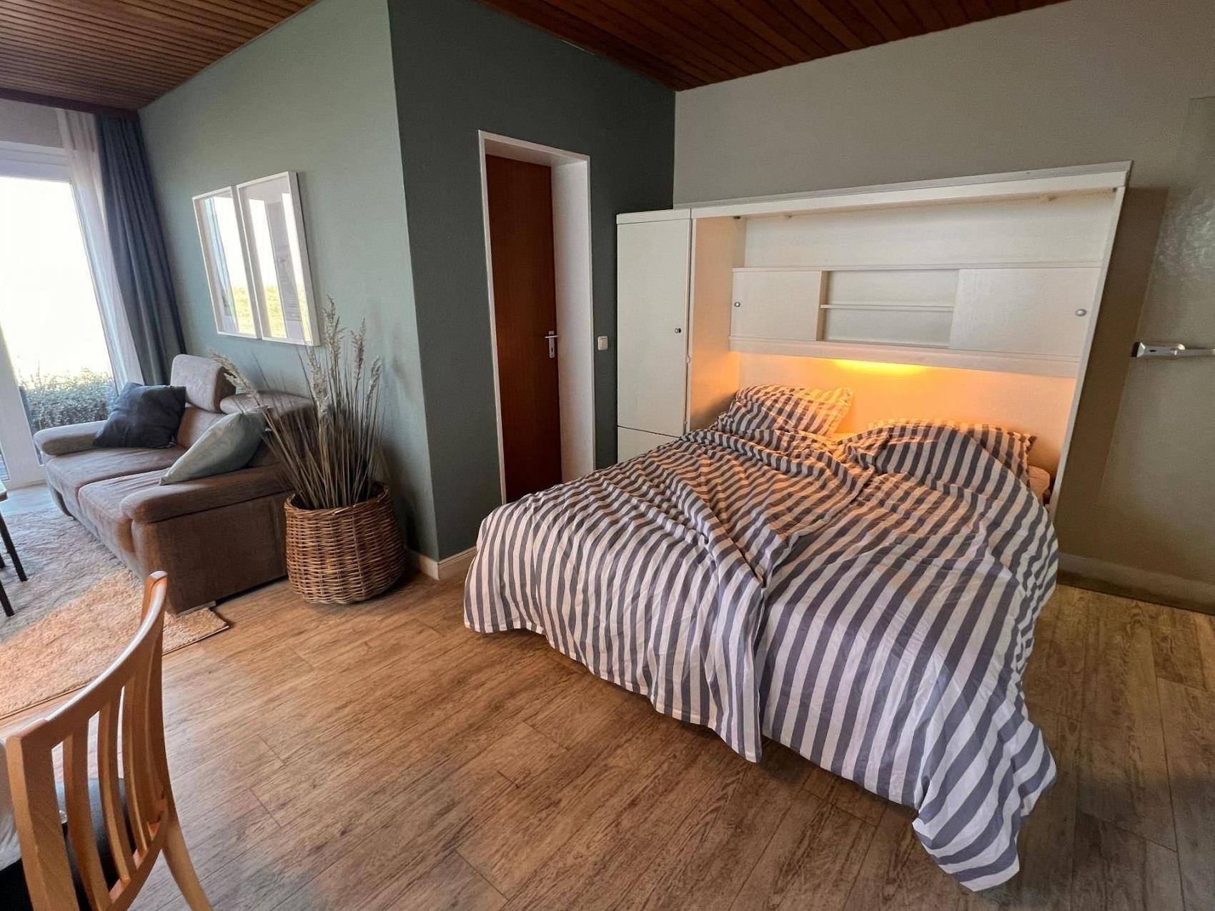 Die Wohnung verfügt über separate Schlafzimmer sowie zusätzliche Schlafmöglichkeiten im Wohnbereich, sodass ausreichend Platz für alle Gäste vorhanden ist. Die Küche ermöglicht eine flexible Selbstversorgung perfekt für gemeinsame Mahlzeiten im Urlaub.