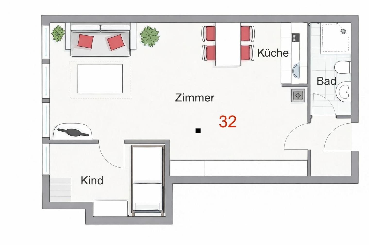 2-Zimmer-Wohnung (ca. 40 qm) mit einem Schlafzimmer