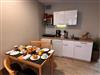 Die Unterkunft verfügt über ein gemütliches Schlafzimmer mit Etagenbett und ein helles Wohnzimmer mit zwei bequemen Zweisitzer-Sofas, Flat-TV und einer voll ausgestatteten Küchenzeile inklusive Spülmaschine, Mikrowelle und Kühlschrank mit Gefrierfach. Ein ausziehbarer Esstisch bietet ausreichend Platz für gemeinsame Mahlzeiten. Zusätzlich sorgt ein Schrankbett (2×90×200 cm) für flexible Schlafmöglichkeiten.