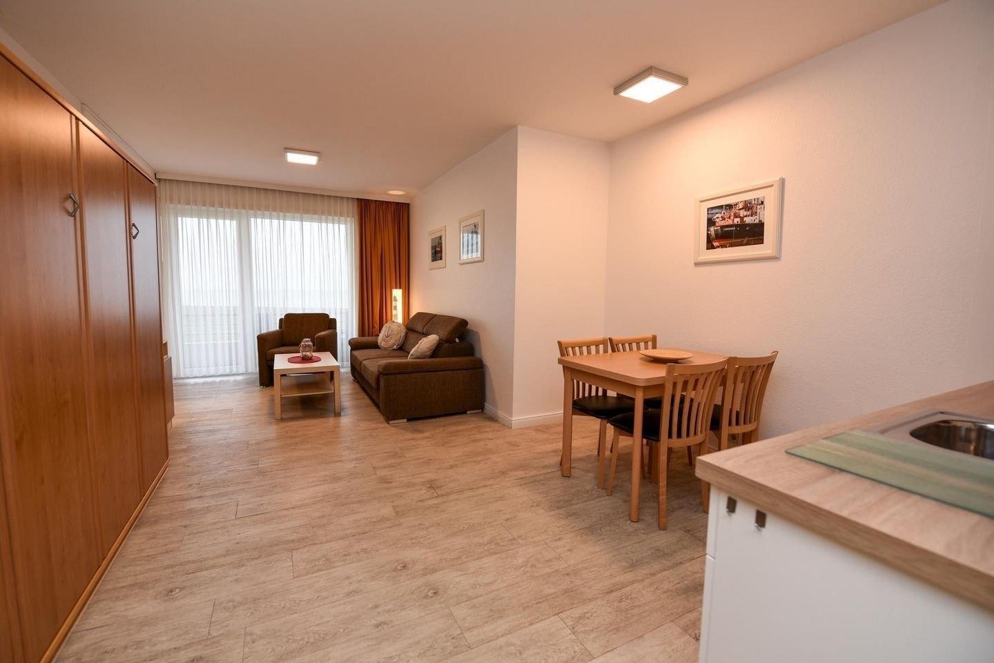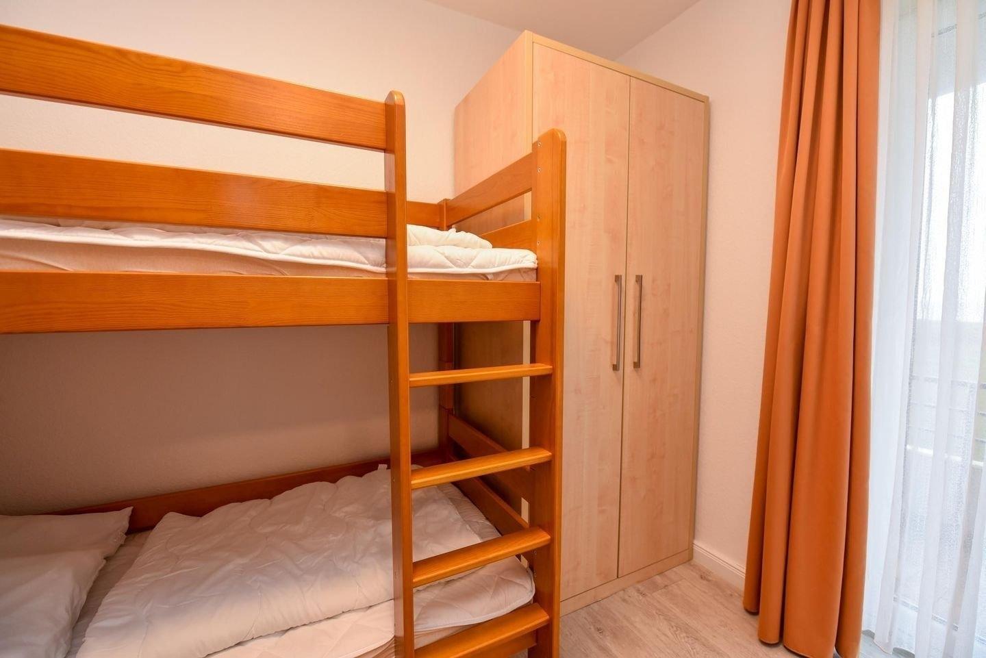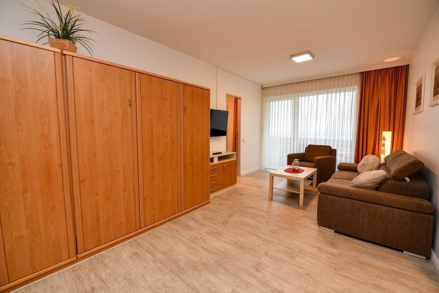 2-Zimmer Appartement im Haus "Nige Wark". Vom Etagenbett im Kinderzimmer, sowie aus der TV und Leseecke haben Sie einen wunderbaren Blick auf das UNESCO-Weltnaturerbe Wattenmeer und die Insel Neuwerk. Im Wohnzimmer befindet sich ein gemütliches Zweisitzer-Sofa, ein Sessel, ein Schrankbett (2x90x200) und ein Flat- TV sowie die integrierte Küchenzeile mit Spülmaschine, Mikrowelle und Kühlschrank mit Gefrierfach. Der ausziehbare Esstisch bietet genügend Platz für alle. Das Badezimmer ist mit einer Dusche und WC ausgestattet. Die ca. 35 qm große Wohnung liegt im 1. OG und verfügt zudem auch über einen Balkon.